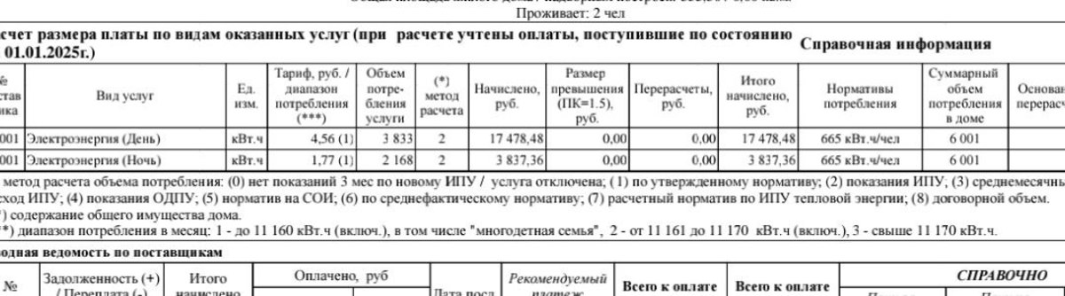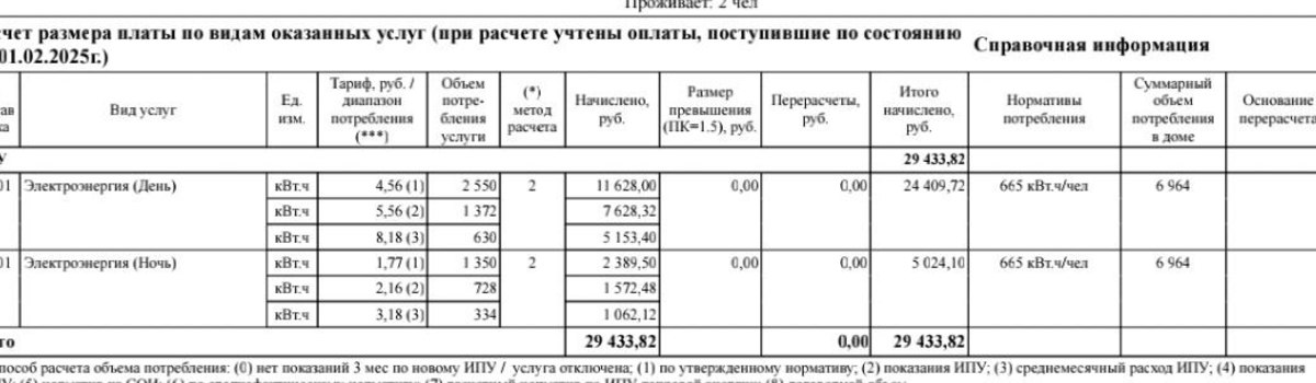 У Александра частный дом и двухтарифный счётчик (день/ночь). В декабре за 6001 кВт ему насчитали 21 315 рублей. В январе за 6664 кВт – 29 433. В новой квитанции уже три диапазона. Первый оплачивается по старому тарифу – 4,56 рубля/день и 1,77 рубля/ночь. Второй диапазон – 5,56 рубля и 2,16 рубля. Третий диапазон уже – 8,18 рубля и 3,18 рубля.