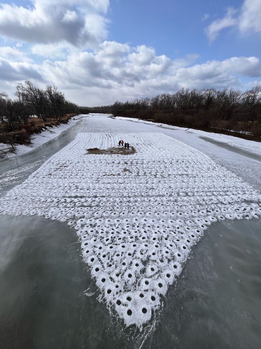 В министерстве Новостям VL.ru уточнили, что такие работы проводятся ежегодно, и для каждой реки количество лунок разное. Лёд ослабляют на тех водоёмах, где есть угроза подтоплений при таянии льда.
