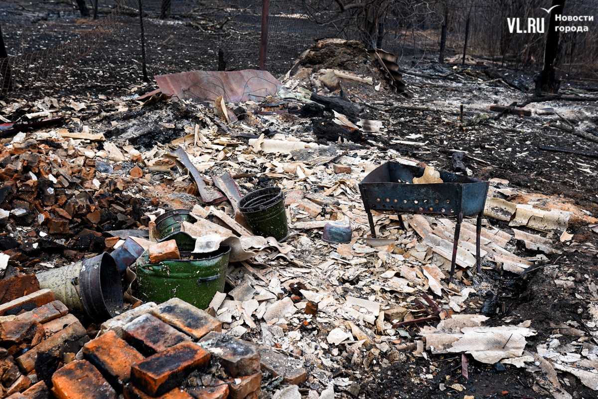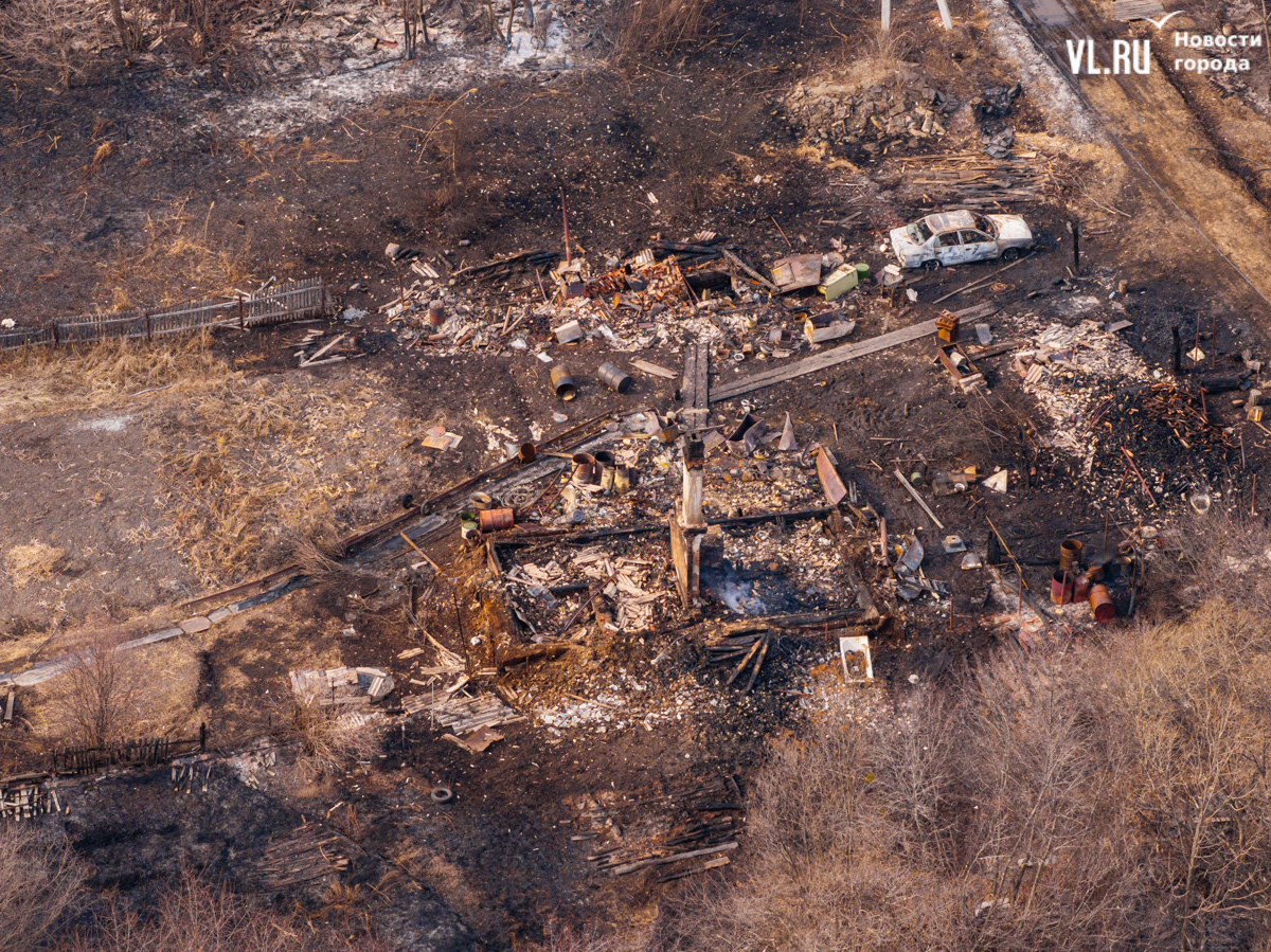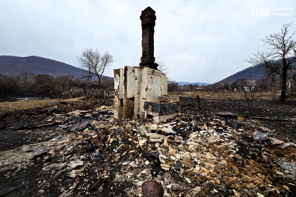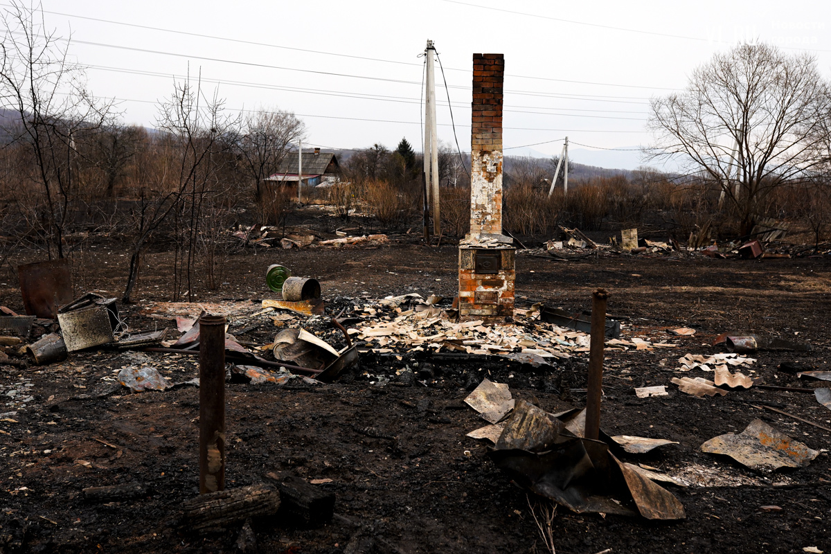 Начался пожар вчера около двух часов дня, примерно в это же время приехали пожарные. Местные жители говорят, что уехали они лишь к одиннадцати вечера, когда большая часть огня было потушена – какие-то участки догорали и ночью. Корреспонденты Новостей VL.ru насчитали шесть кирпичных печей, которые остались от выгоревших домов.
