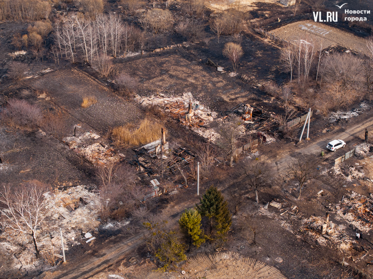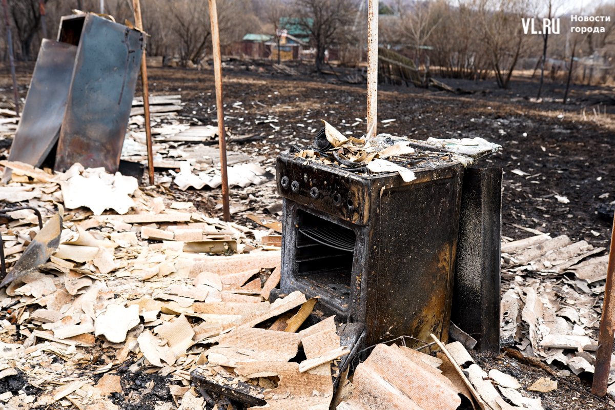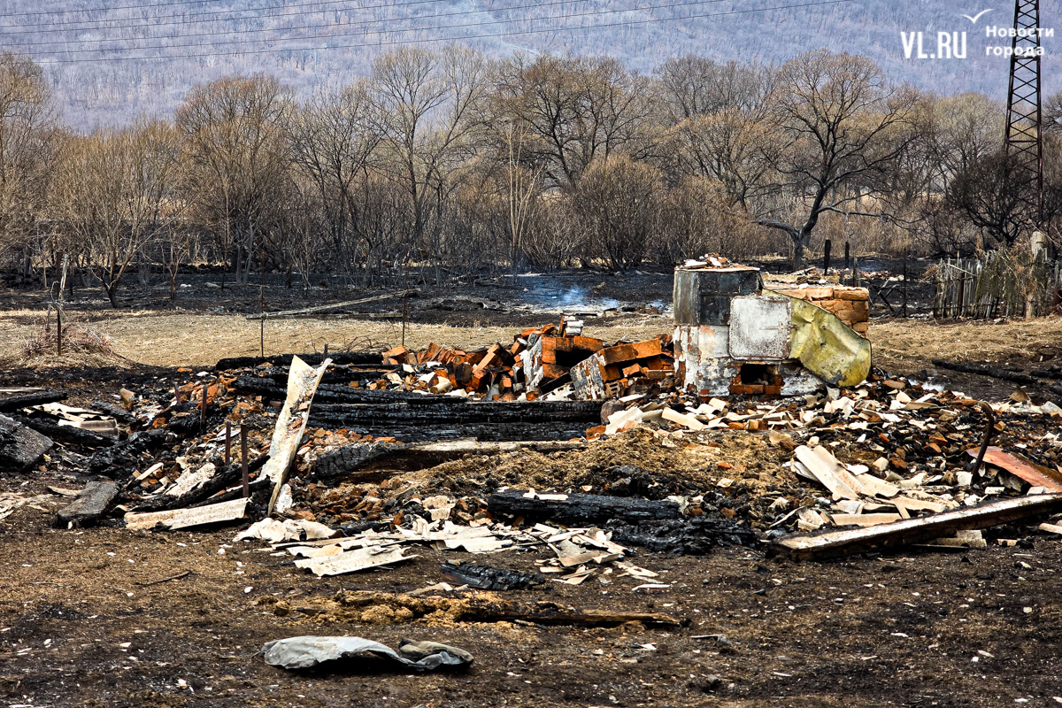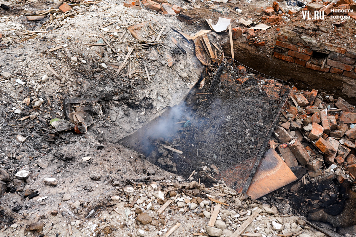 Начался пожар вчера около двух часов дня, примерно в это же время приехали пожарные. Местные жители говорят, что уехали они лишь к одиннадцати вечера, когда большая часть огня было потушена – какие-то участки догорали и ночью. Корреспонденты Новостей VL.ru насчитали шесть кирпичных печей, которые остались от выгоревших домов.