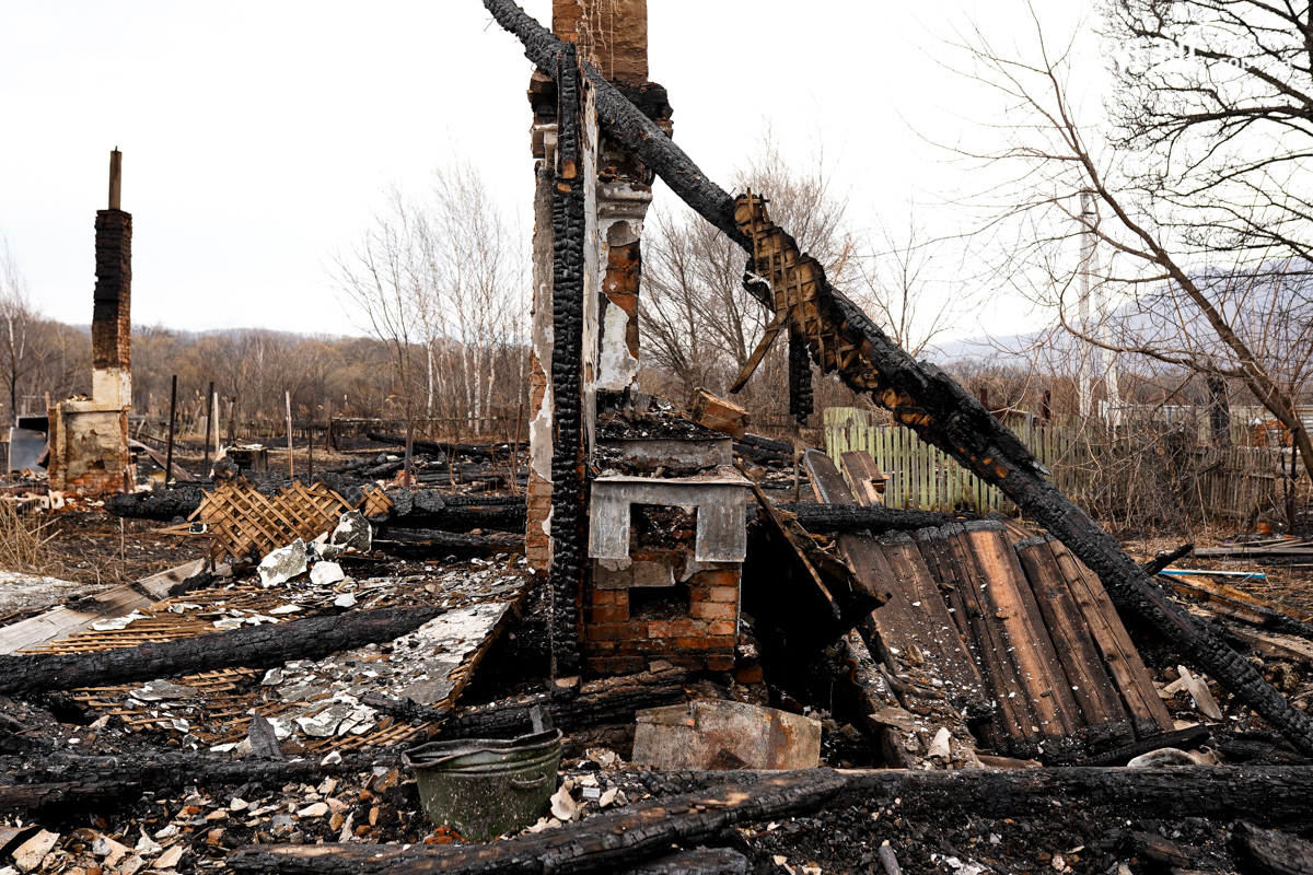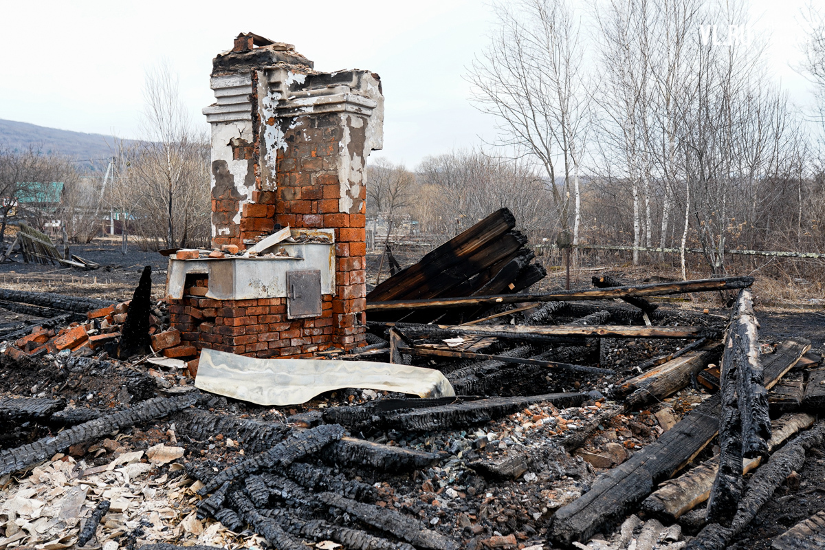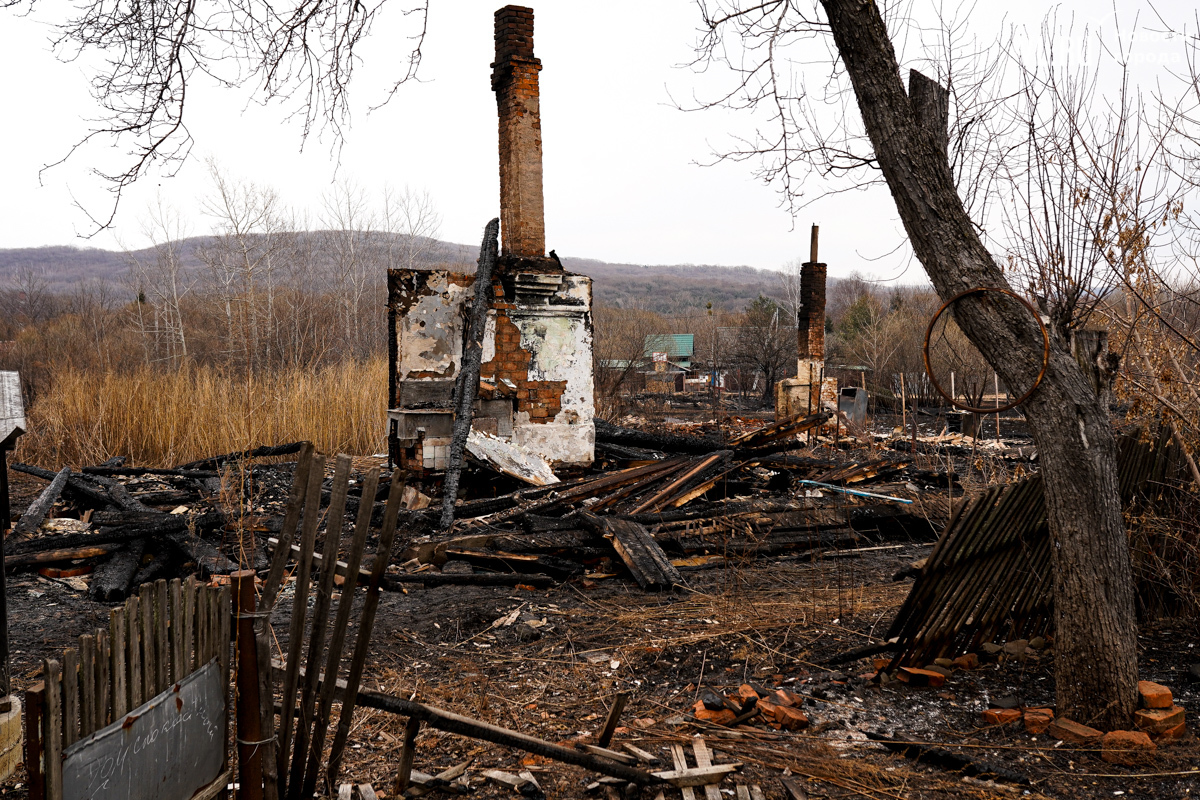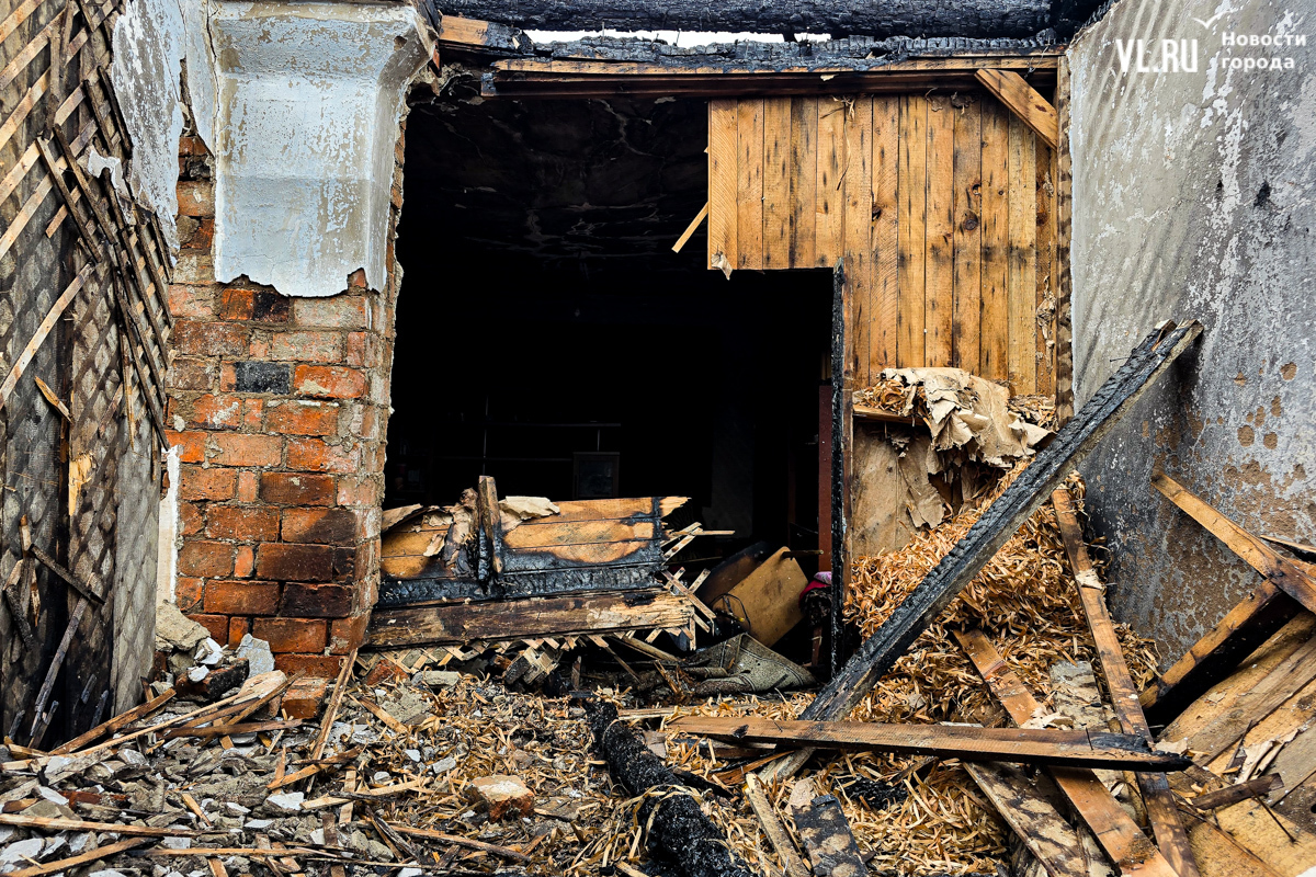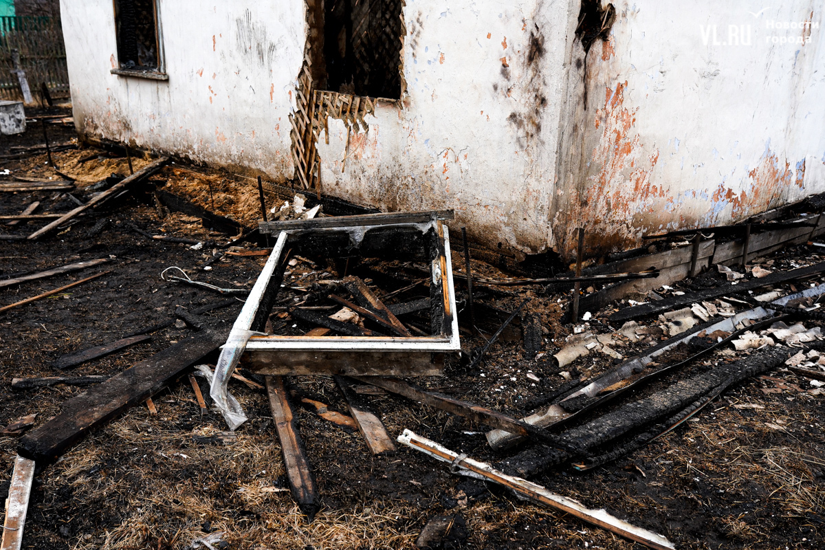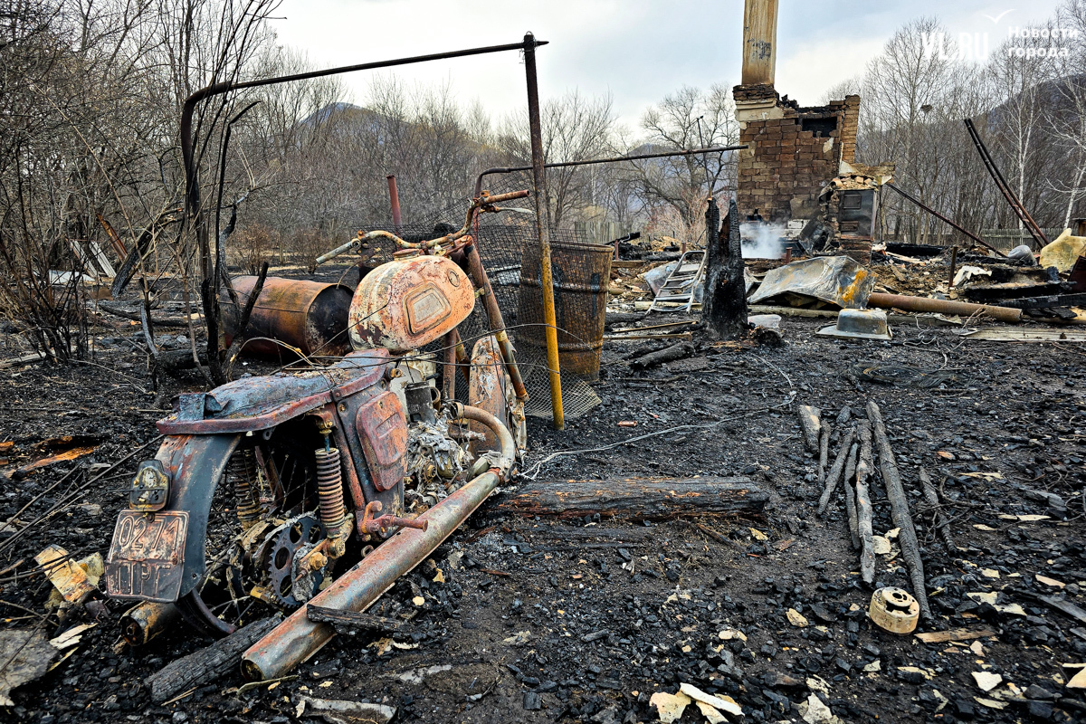 В двух сгоревших домах жили люди. Один дом уничтожен огнём полностью, в нём жили дедушка и бабушка. Он 35 лет отработал в шахте, она – 47 лет на швейной фабрике. Вместе с домом сгорели машина и мотоцикл. Пенсионеров эвакуировали спасатели, сейчас они находятся в больнице. Во втором доме жила их дочь. Соседи рассказывают, что она ухаживала за родителями. После пожара женщину забрали её дети в Находку. У дома сгорела крыша, деревянный потолок обвалился, большая часть комнат завалена обгоревшими досками.