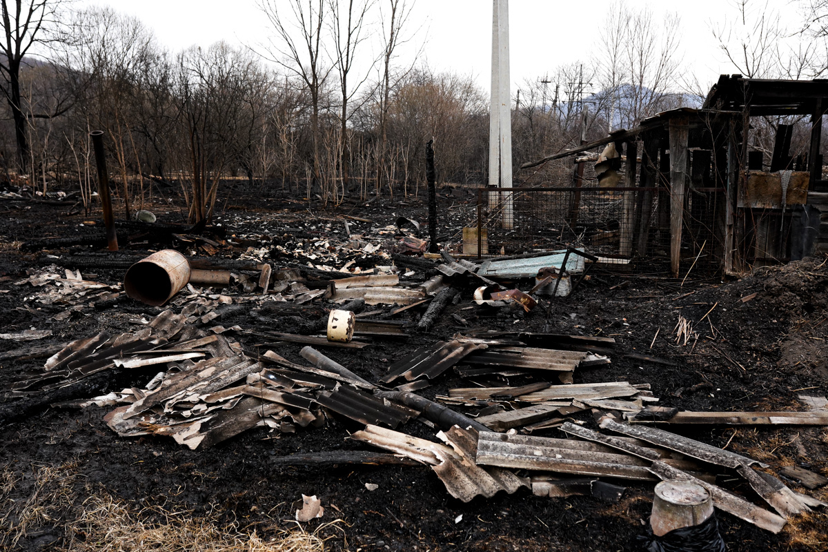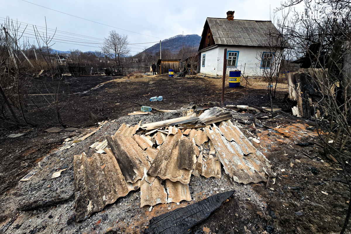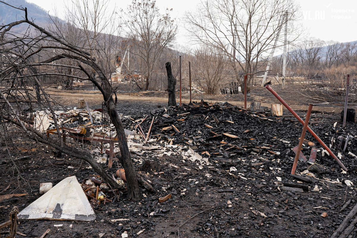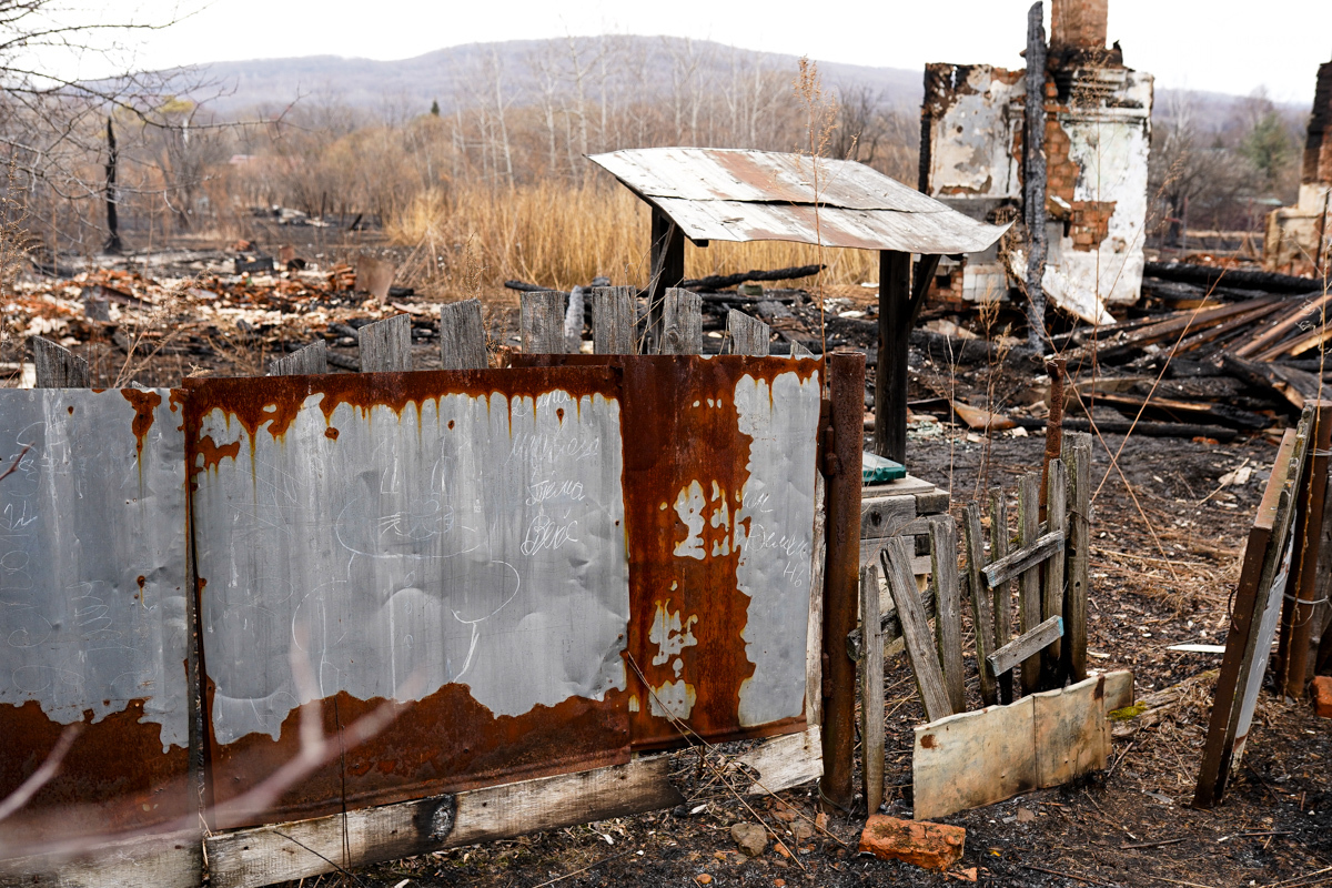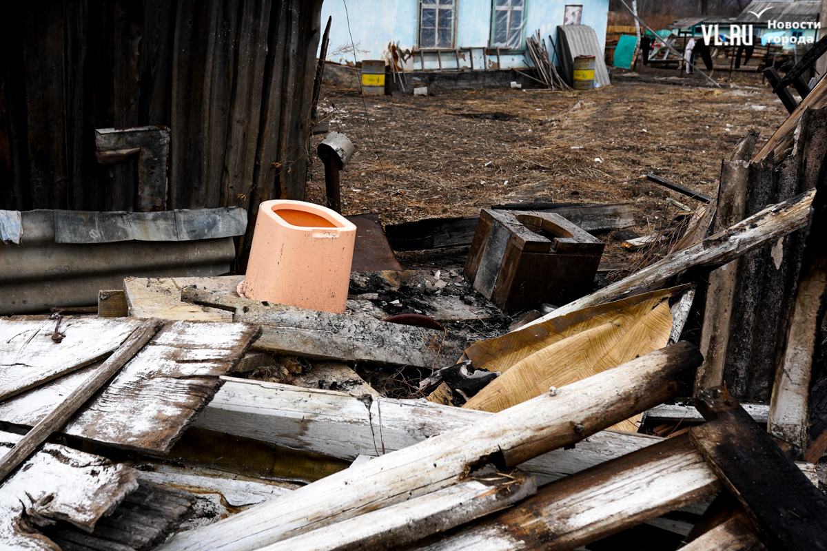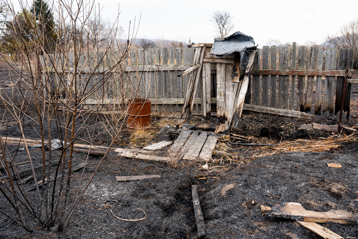 В двух сгоревших домах жили люди. Один дом уничтожен огнём полностью, в нём жили дедушка и бабушка. Он 35 лет отработал в шахте, она – 47 лет на швейной фабрике. Вместе с домом сгорели машина и мотоцикл. Пенсионеров эвакуировали спасатели, сейчас они находятся в больнице. Во втором доме жила их дочь. Соседи рассказывают, что она ухаживала за родителями. После пожара женщину забрали её дети в Находку. У дома сгорела крыша, деревянный потолок обвалился, большая часть комнат завалена обгоревшими досками.