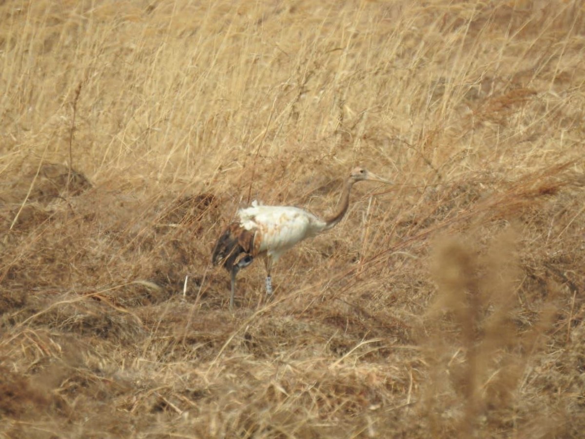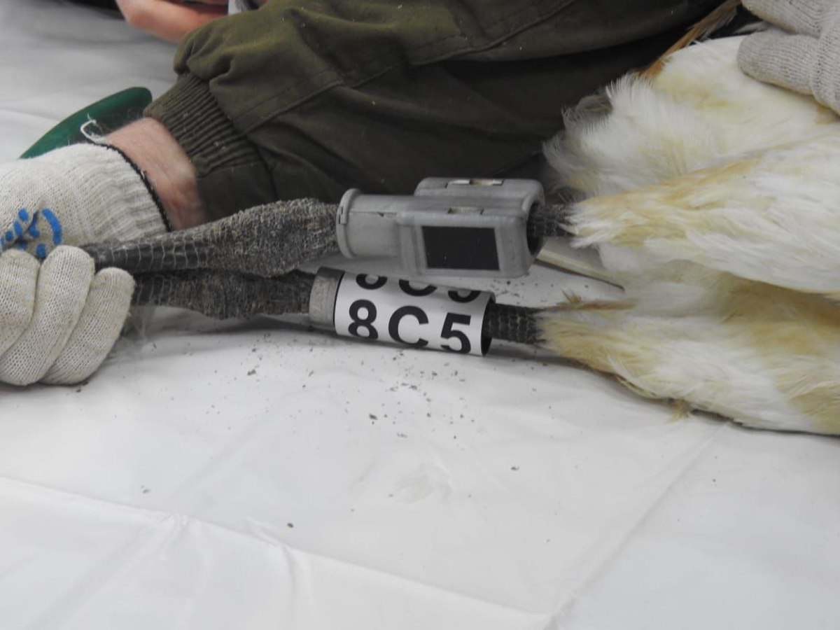 На него установили GPS-передатчик, чтобы учёные могли отслеживать адаптацию птицы в природе и её перемещения.