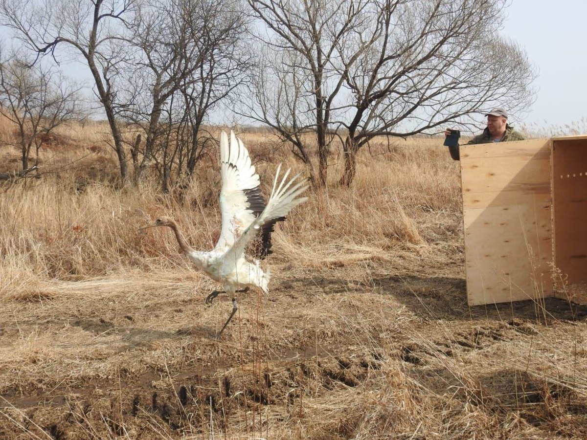 Во вторник, 25 марта, на восточном побережье озера Ханка выпустили японского журавля, которого с прошлого года выхаживали в центре реабилитации. Это территория, где постоянно фиксируется группировка его сородичей.