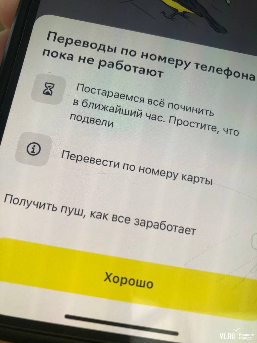 Пользователям предлагают воспользоваться сервисом позднее, сделать перевод по номеру карты или по реквизитам.