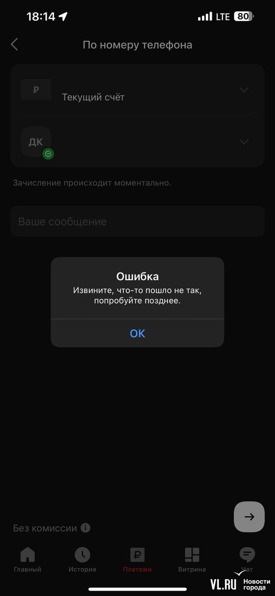 Вечером в среду, 26 марта, владивостокцы заметили, что Система быстрых платежей перестала работать. Банки сообщают, что это связано с техническими причинами, и предлагают попробовать повторить перевод позднее.