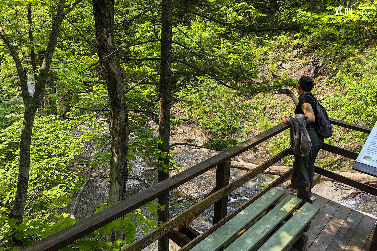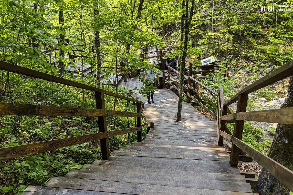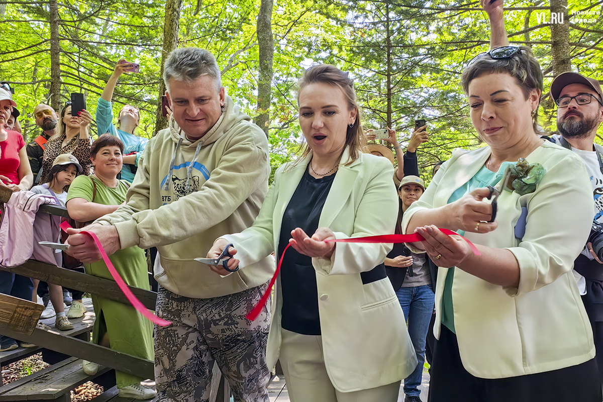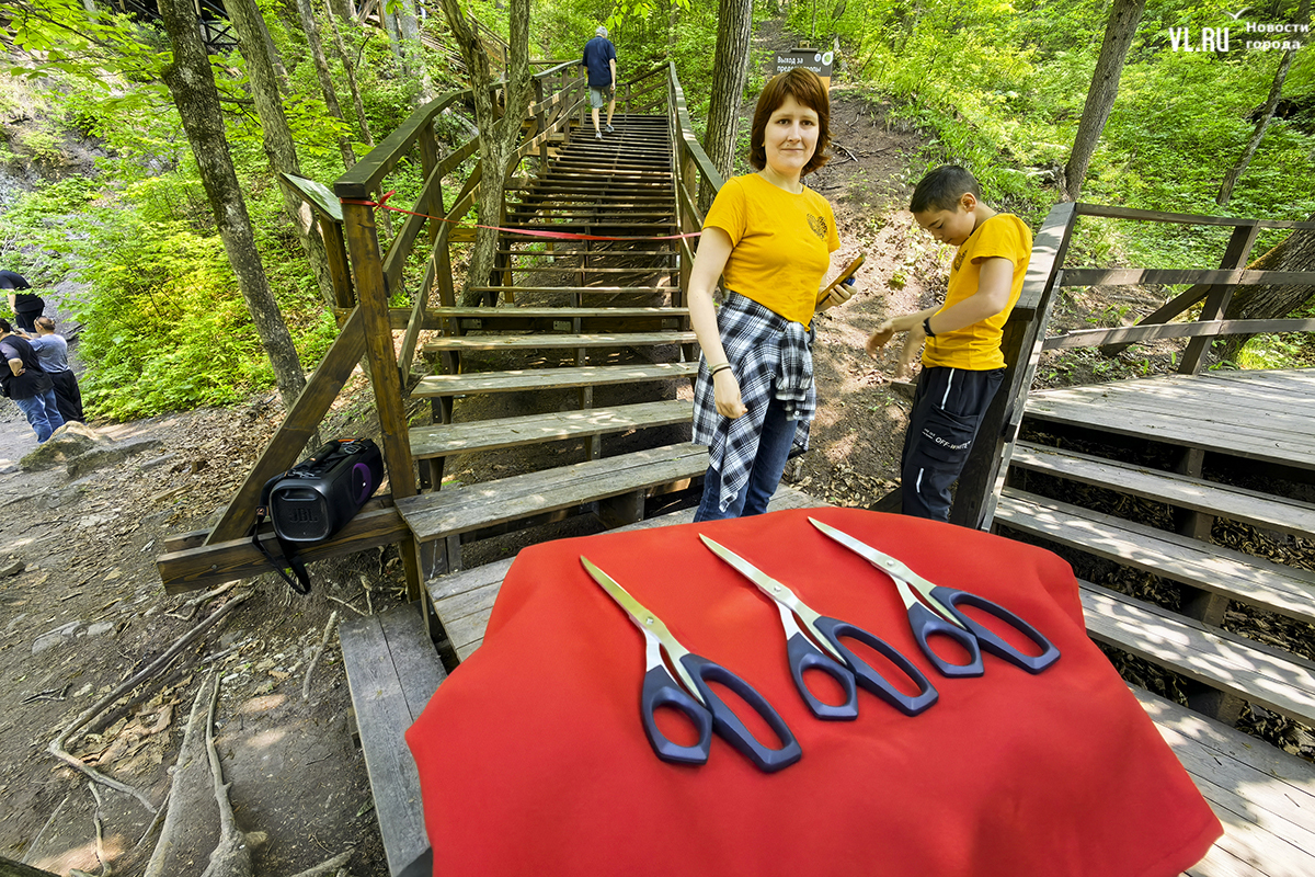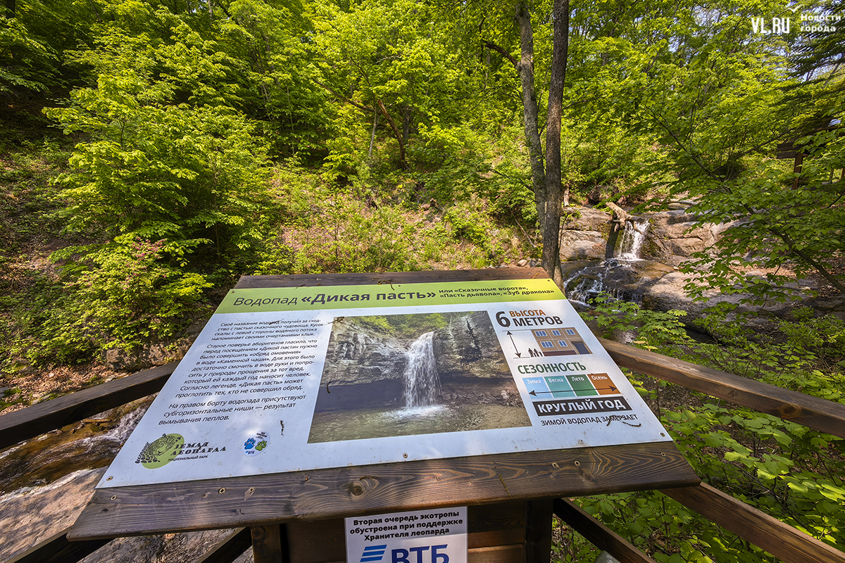«Как вы помните, до 2022 года здесь не было ничего, было довольно сложно добраться, – говорит Виктор Бардюк, директор ФГБУ «Земля леопарда». – Не все могли пройти даже за первый водопад. Сейчас уже почти все категории могут добраться до четвёртого, пока кроме маломобильных – но это в будущем. Появился туалет с горячей водой, тропа, места отдыха. Сегодня мы открываем вторую очередь, это всего 150 метров – но ещё выше. Сложная топология. Можно будет перейти за четвёртый водопад, и там ещё немножко остаётся до пятого».