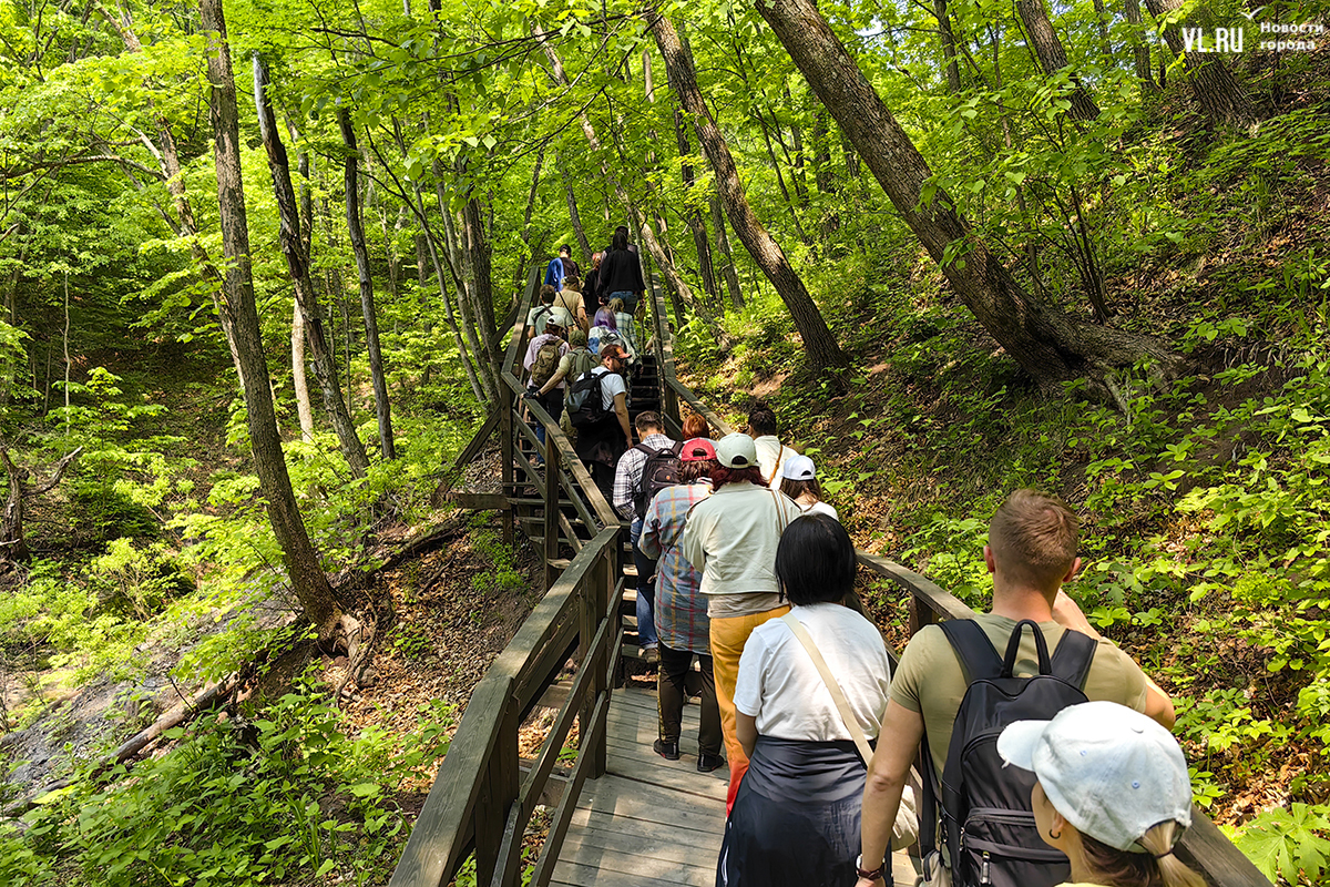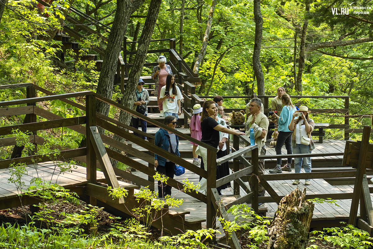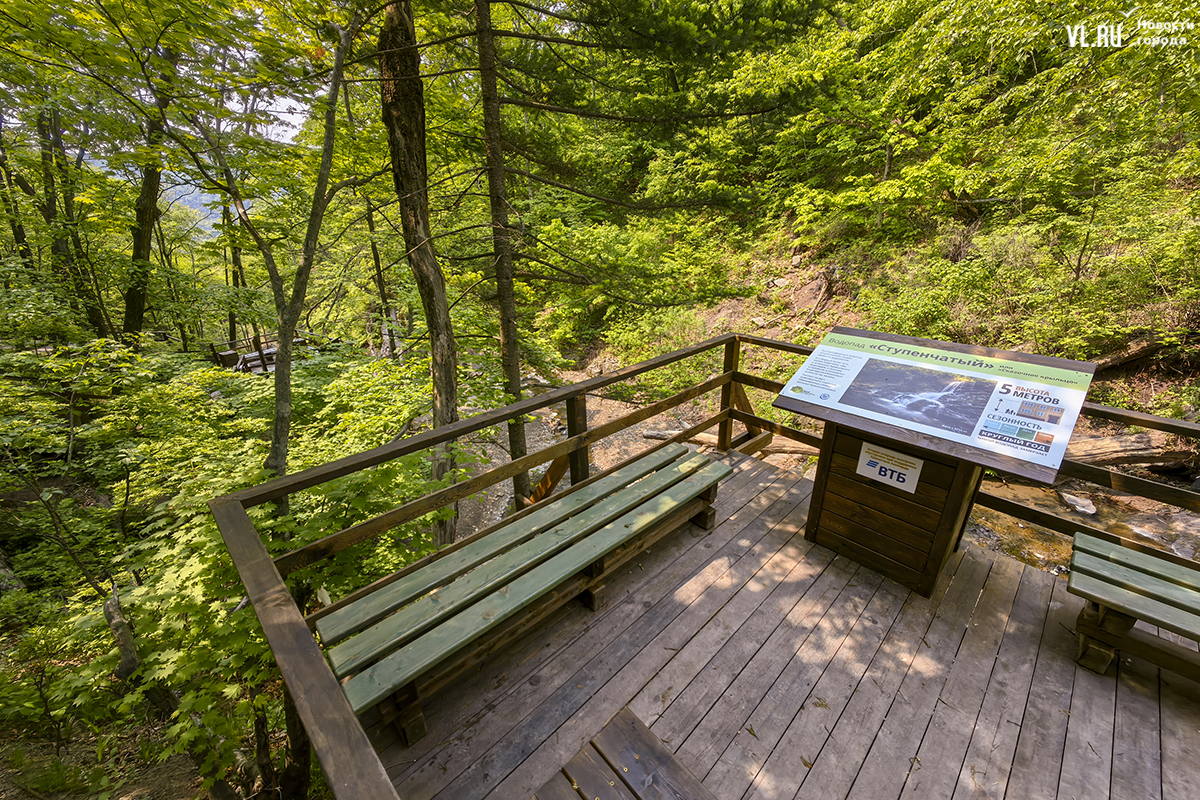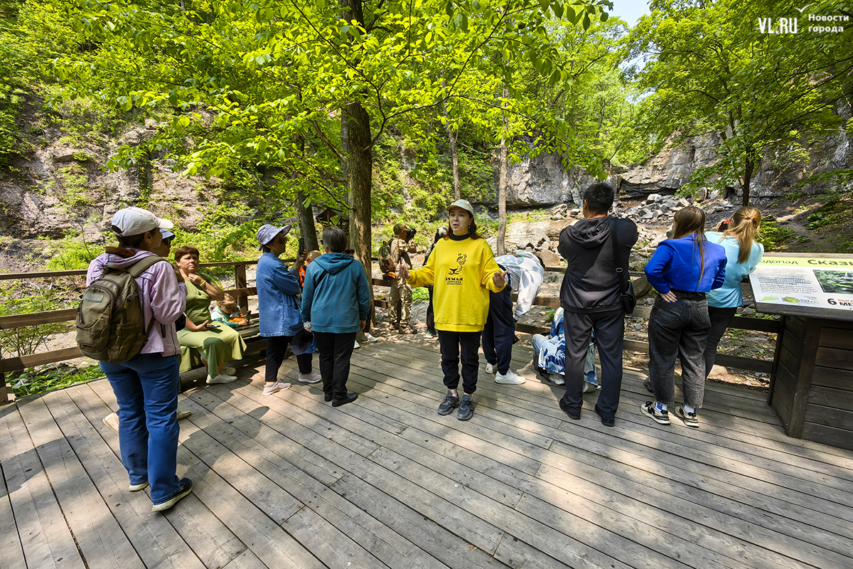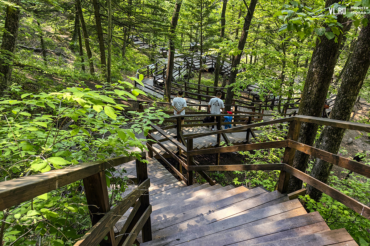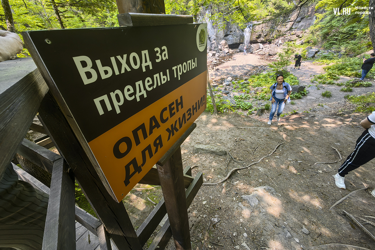 «Как вы помните, до 2022 года здесь не было ничего, было довольно сложно добраться, – говорит Виктор Бардюк, директор ФГБУ «Земля леопарда». – Не все могли пройти даже за первый водопад. Сейчас уже почти все категории могут добраться до четвёртого, пока кроме маломобильных – но это в будущем. Появился туалет с горячей водой, тропа, места отдыха. Сегодня мы открываем вторую очередь, это всего 150 метров – но ещё выше. Сложная топология. Можно будет перейти за четвёртый водопад, и там ещё немножко остаётся до пятого».