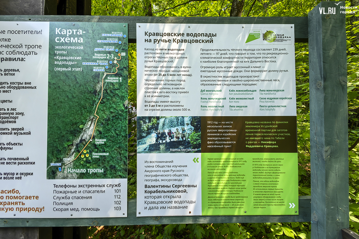 В день открытия всем гостям провели экскурсию, рассказав о прошлом каскада, – например, что корейские поселенцы считали здешние воды священными. Кравцовские водопады были местом паломничества ещё до появления деревни Кравцовка. А первые «официальные» экскурсии сюда стали водить с 70-х годов прошлого века.