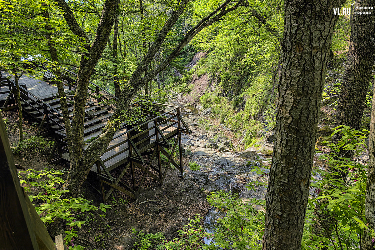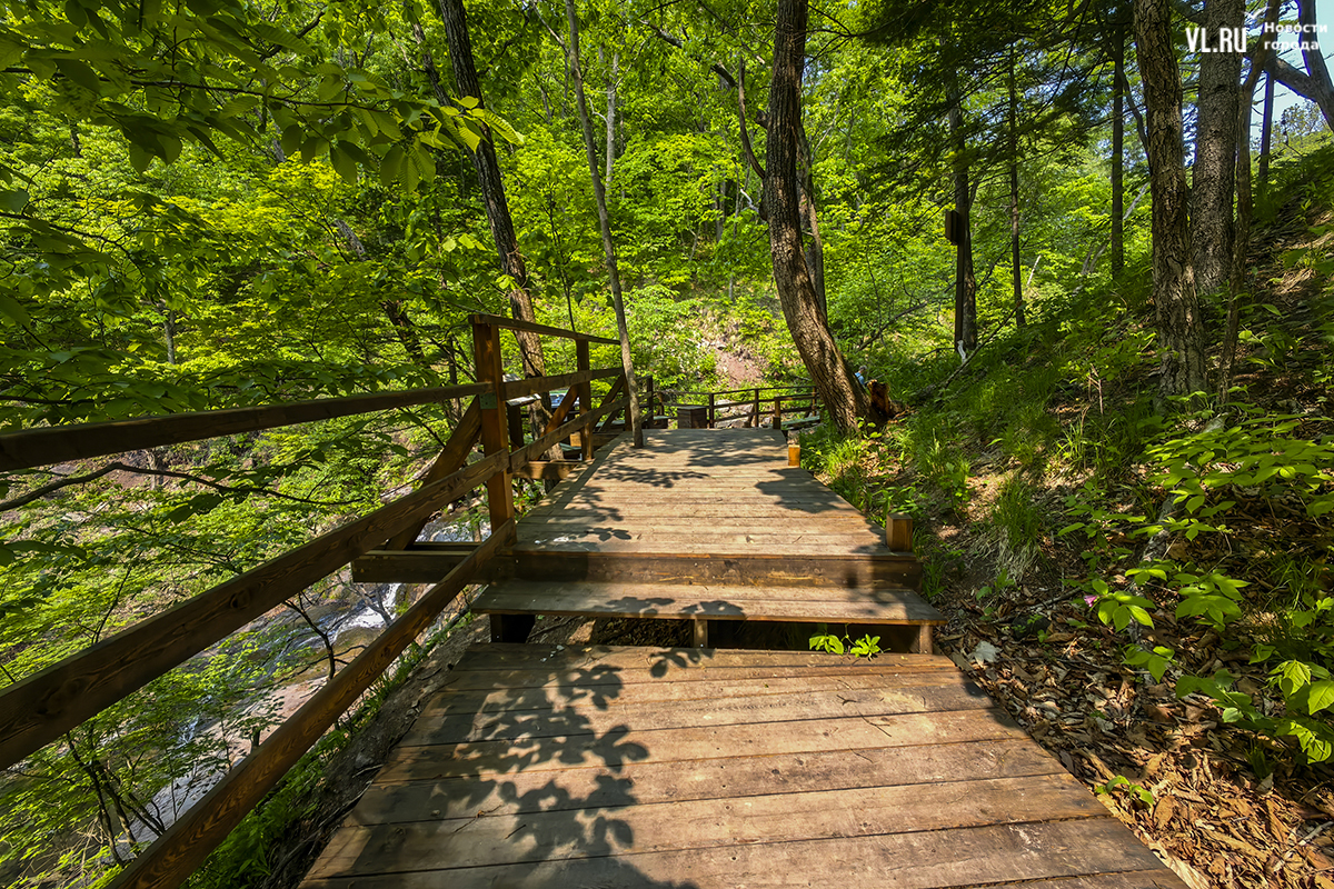 В национальном парке «Земля леопарда» 29 мая открыли продолжение экотропы вдоль Кравцовских водопадов. Её протяжённость всего 150 метров, но это была одна из самых сложных частей маршрута – почти вертикальный голый склон с сыпучим грунтом. Раньше его штурмовали в специальной обуви и с помощью свисающих с деревьев верёвок. Сегодня можно пройти хоть босиком по деревянным лестницам и отдохнуть на оборудованных видовых площадках.