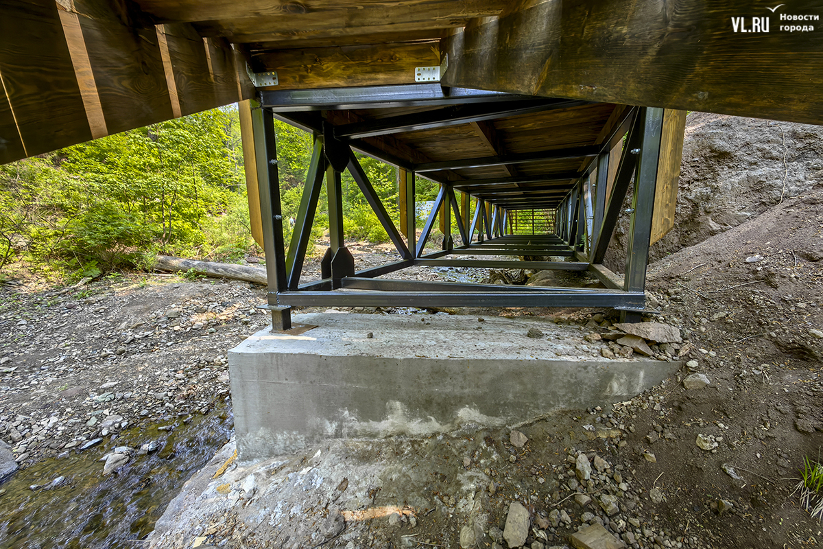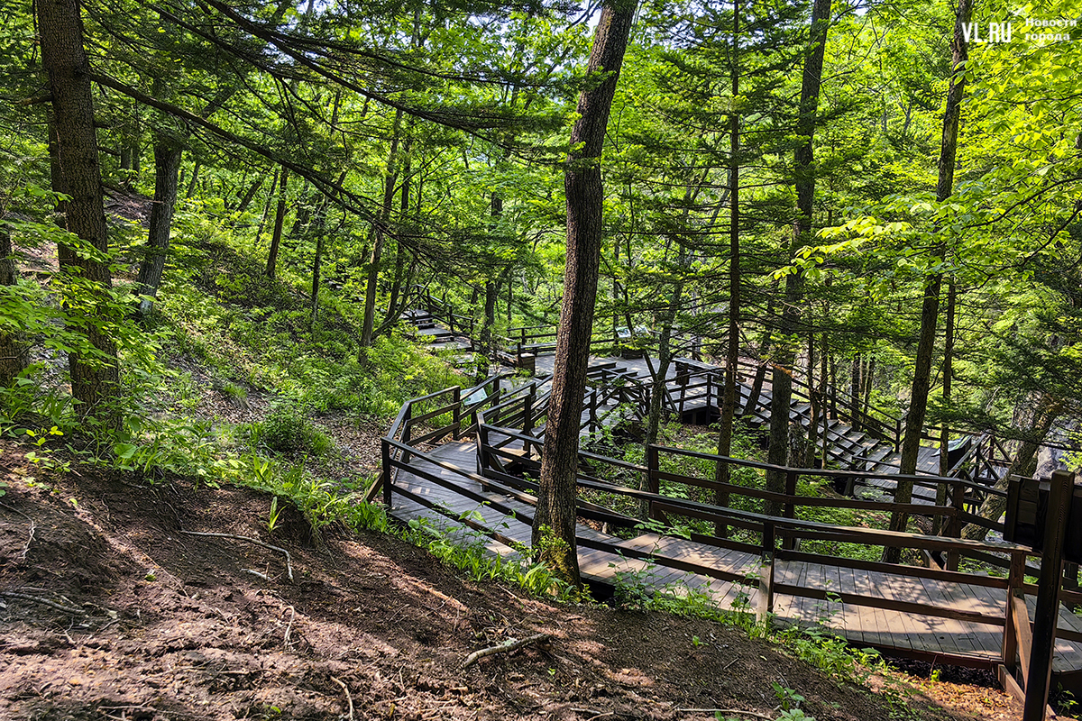 Деревянный настил крепится к мощному металлическому основанию и залитым бетонным конструкциям. Набор высоты на втором этапе тропы составляет 117 метров. Но теперь это действительно лёгкая прогулка, которая по силам даже маленьким детям и пенсионерам. В день открытия «Земля леопарда» сделала бесплатный вход для всех желающих, и их оказалось немало даже в будний день.