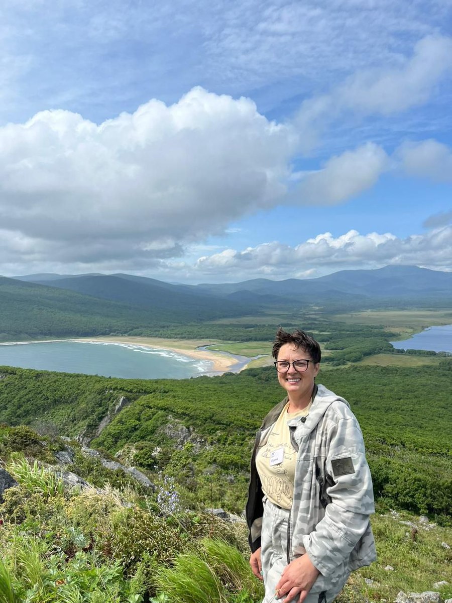 «Мой любимый маршрут – бухта Голубичная, если он есть, я выбираю всегда его. Очень красивое место. Даже если домашние дела нависли – я записываюсь и иду, – делится Ирина. – Я будто гуляю. Подъём половина пути, но достаточно комфортный. Слева – берег моря, в жаркую погоду веет морской прохладой. Красивые видовые площадки. Это и здоровый образ жизни, и столь необходимая физическая активность (маршрут протяжённостью 14 км), и общение с новыми людьми. В каждой группе есть человек, который тебя удивляет. От каждой группы поступит вопрос, который вдохновит изучить что-то новое или, возможно, под другим углом зрения. В этом году нам посчастливилось увидеть не просто тигра, а троих наших тигрят, группа была очень счастлива! Впечатлений было масса. В основном на маршруте если и встречаем животных, то чаще оленей, горала видели, охоту двух косаток – смотрели с бинокля. Долго разглядывали, как по тропе ползёт что-то мохнатое – это была паучиха-волк, в тот момент, когда на ней сидели все её паучата. С каждой новой экскурсией я открываю свою Родину снова и снова и для туристов, и для себя».