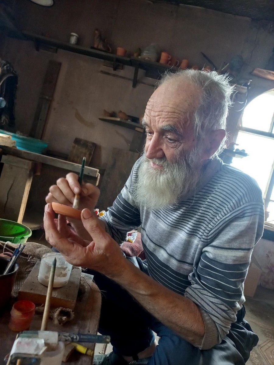 Вот, например, мастер по керамике, 78-летний Игорь Баутин. Когда-то даже вёл кружок для детей на базе заповедника, но потом здоровье подкачало. Сейчас со здоровьем, слава богу, стало получше, и Смирновы, видя его «страдания по керамике», подарили пенсионеру домашнюю муфельную печь для обжига керамических изделий.
