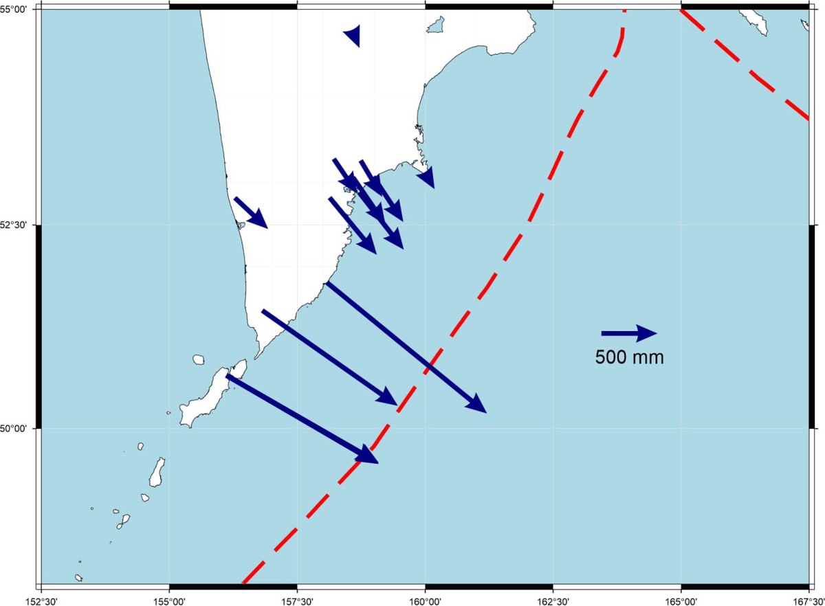 «Провели предварительный расчёт по результатам геодинамических наблюдений. Оказалось, что все мы неплохо так поехали на юго-восток. Максимальные косейсмические смещения после землетрясения 30 июля наблюдались в южной части полуострова. Там они составили почти 2 метра, что сопоставимо с горизонтальными смещениями после землетрясения 2011 г. в Тохоку, Япония. Петропавловский куст станций (и сам Петропавловск-Камчатский, соответственно) сместился несколько скромнее», – говорится в сообщении ФИЦ ЕГС РАН.
