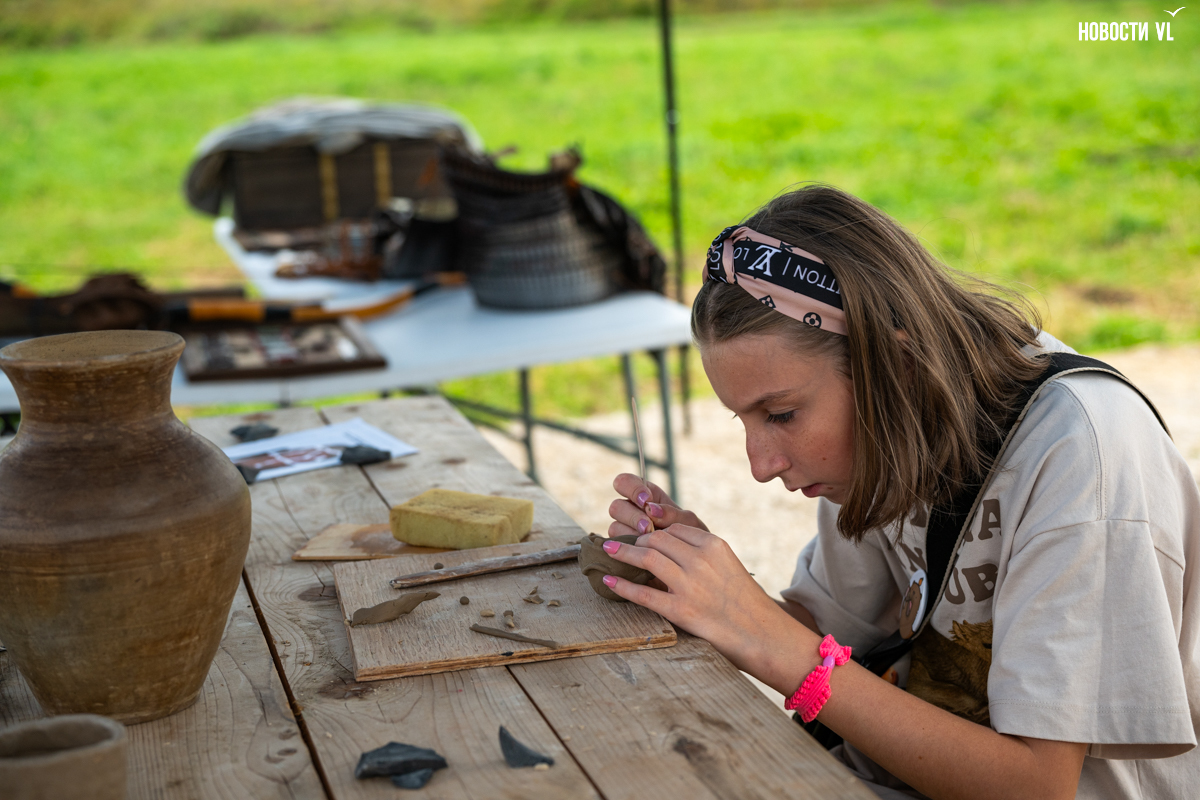 «Изначально мы хотели совместить их со всеми мероприятиями по популяризации науки. А совместились они ровно на неделю. Во-первых, раскопки и мероприятия проводят разные структуры. Научная часть – за университетом, организация археологического парка – за Приморским культурно-историческим центром (ПКИЦ). Это региональный оператор парка «Россия – Моя история». На раскопки был небольшой грант для ДВФУ. Их проводили, скажем так, в этом году немного независимо. Но во взаимосвязи с остальной деятельностью».