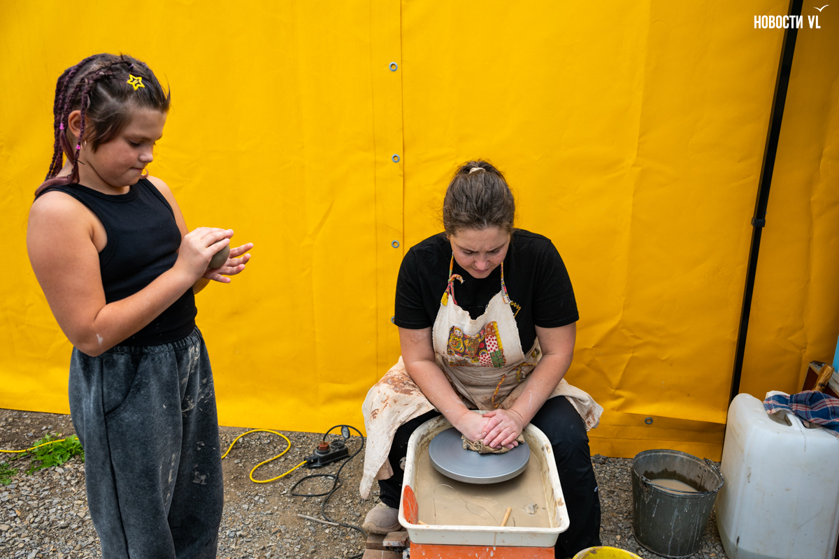 Бесплатные экскурсии – часть просветительской программы. Ещё есть мастер-классы, самые разные. Гончар Ирина приезжает из Артёма, и люди вместе с ней лепят керамическую посуду – такую, что была у здешних жителей. Форму восстанавливают по керамическим осколкам.