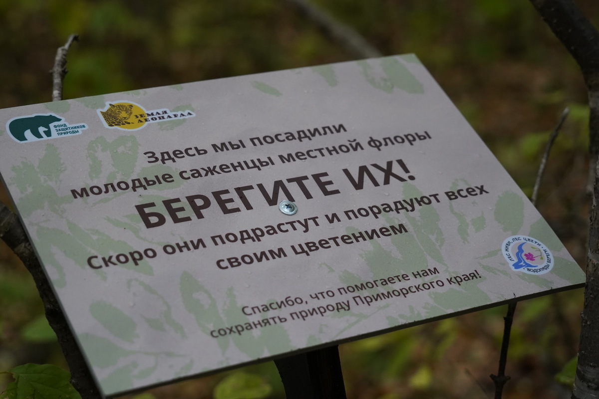 Работы прошли под координацией отдела науки «Земли леопарда». Все растения – представители местной флоры, подобранные по результатам научных исследований состояния почвы, влажности и освещенности. В числе высаженных видов – рододендроны Шлиппенбаха и остроконечный, спирея березолистная и средняя, абрикос маньчжурский, сирень амурская, жимолость Маака, чубушник тонколистный, вейгела ранняя, вишня Максимовича, зорька сверкающая и красоднев Миддендорфа. Эти растения играют почвоукрепляющую роль, помогают бороться с эрозией, а также станут ярким украшением экотропы при цветении весной.