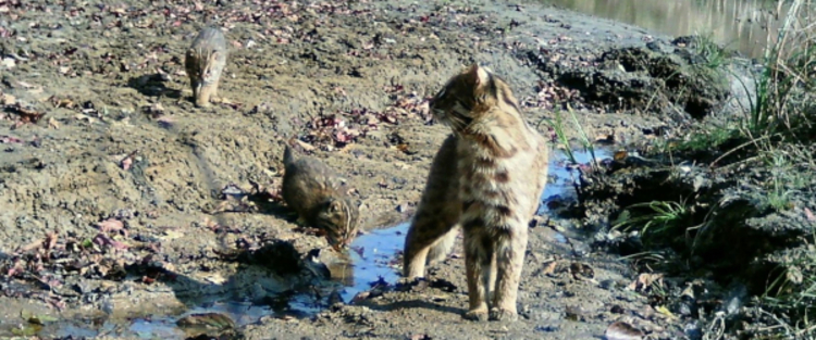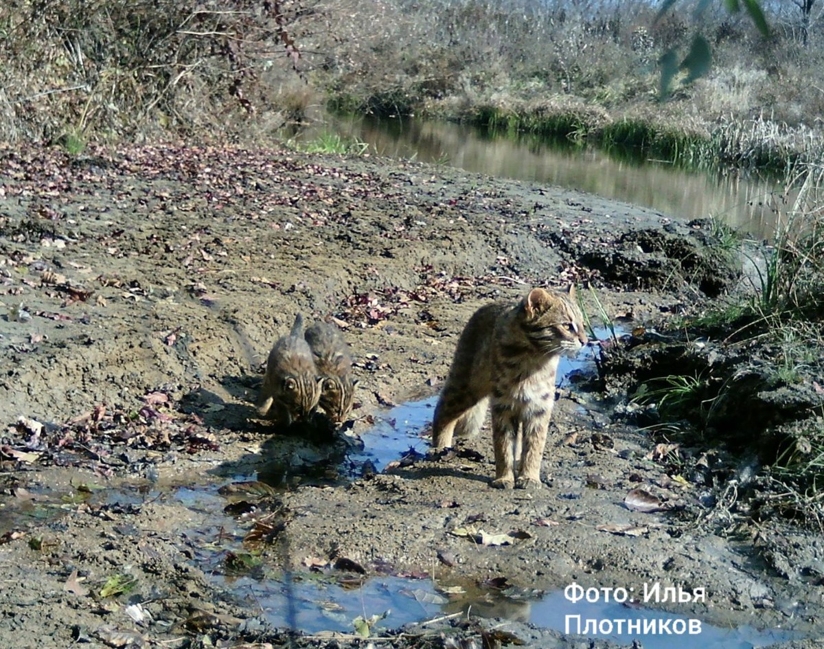 Редкие снимки позднего осеннего выводка дальневосточного лесного кота получили учёные национального парка «Земля леопарда». На кадрах семейство ненадолго останавливается возле водопоя, отдыхает и изучает обстановку перед тем, как продолжить свой путь.