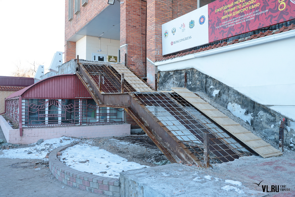 По плану ремонта центральной входной группы предстоит установка новых дверей и витражей, нового подвесного потолка перед входом в спорткомплекс и замена напольного покрытия на антискользящий керамогранит. Уже сейчас идут активные ремонтные работы на двух лестницах, которые будут идентичны центральной, отремонтированной в 2020 году.