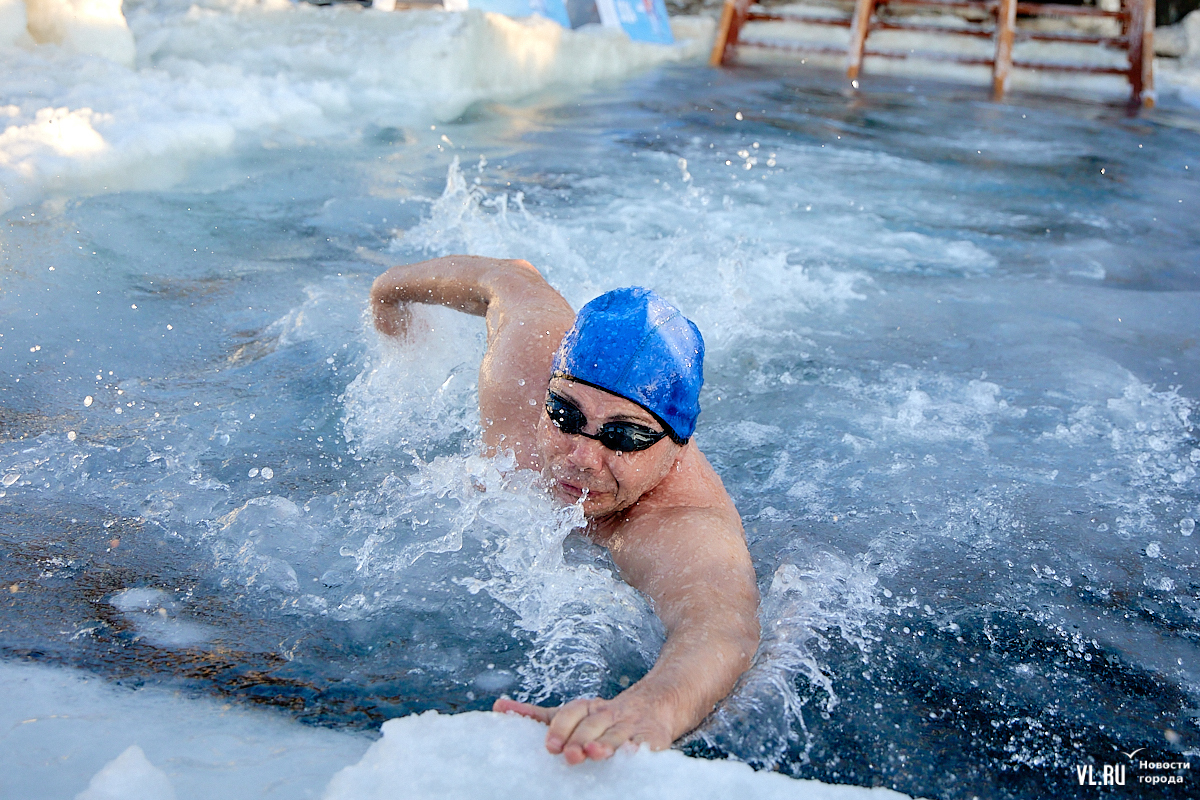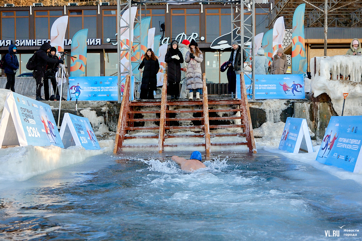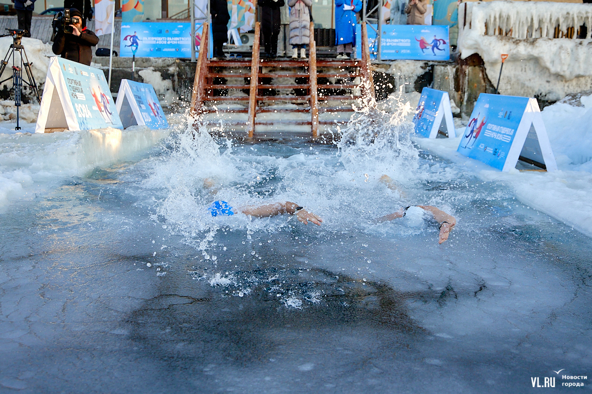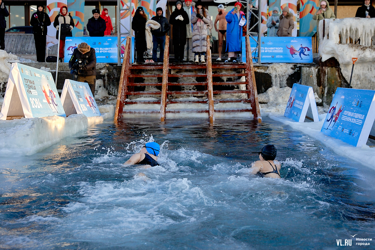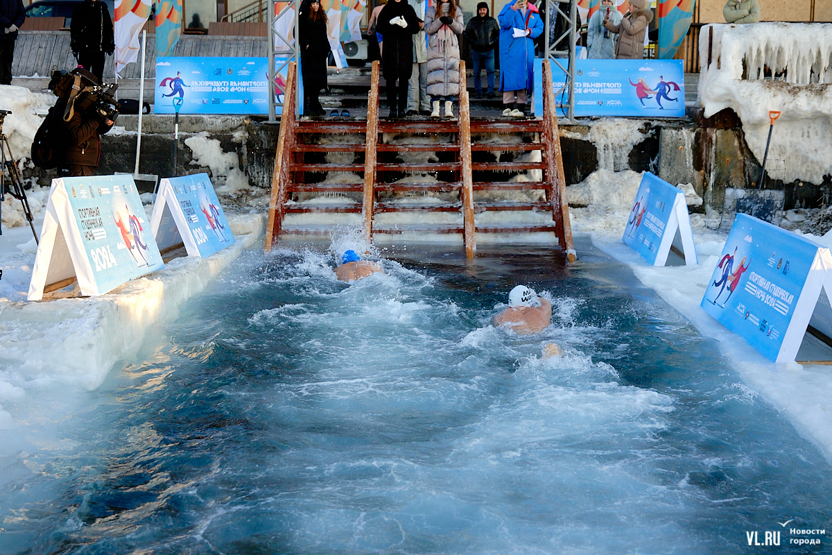 Соревнования должны были пройти в новом бассейне под открытым небом на пляже «Юбилейный», однако неожиданно для всех мероприятие перенесли в спортивный клуб «Косатка ДВ» – сказали, что бассейн замёрз. Плавать участникам пришлось в проруби.
