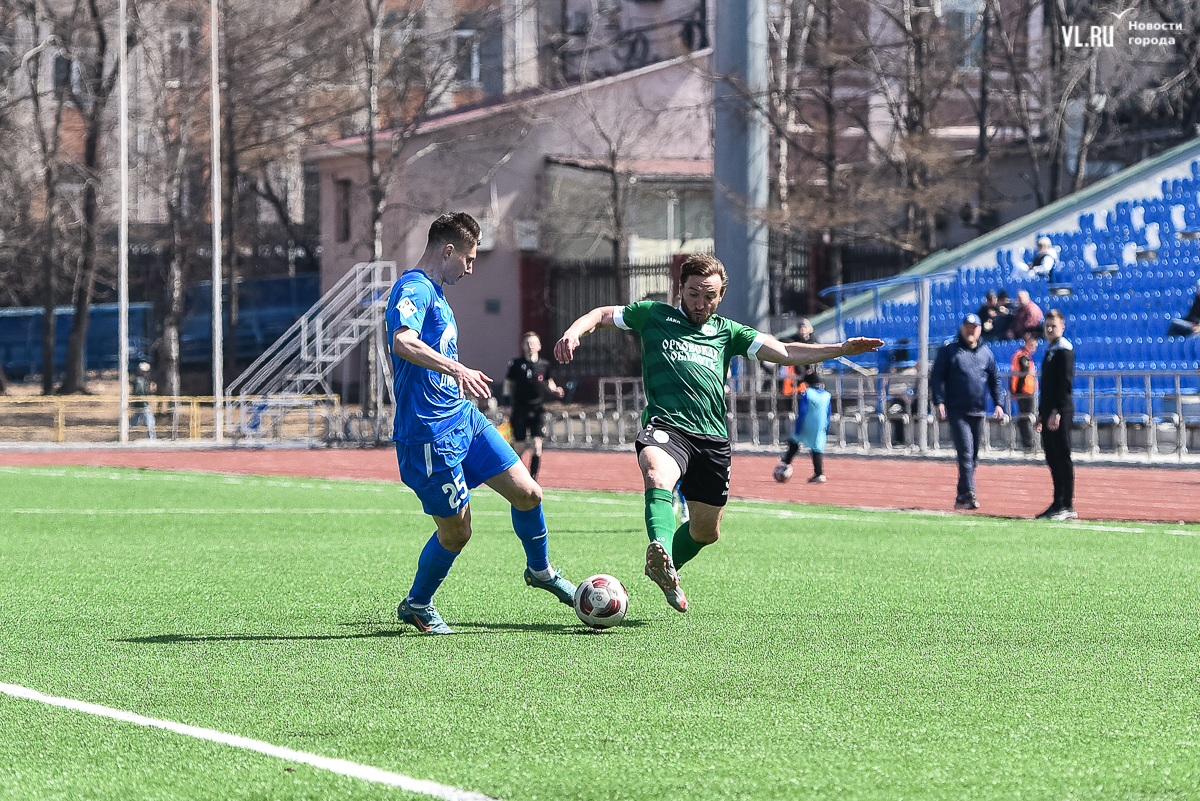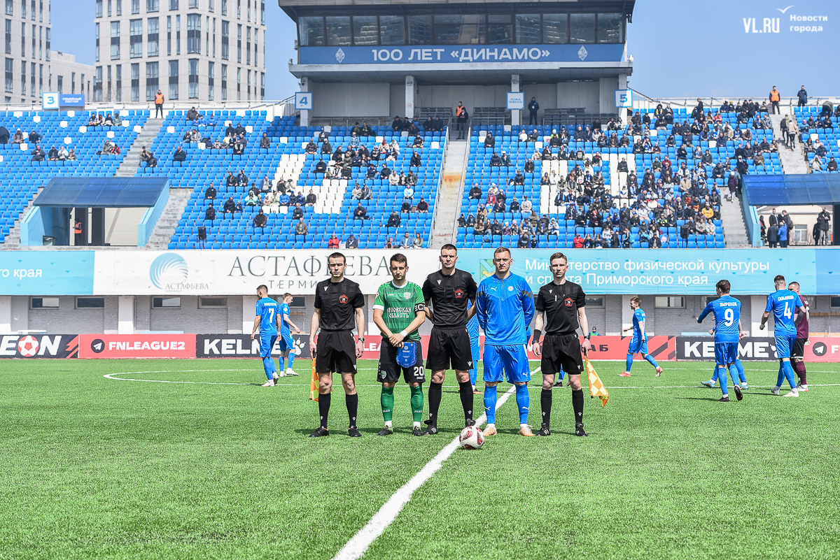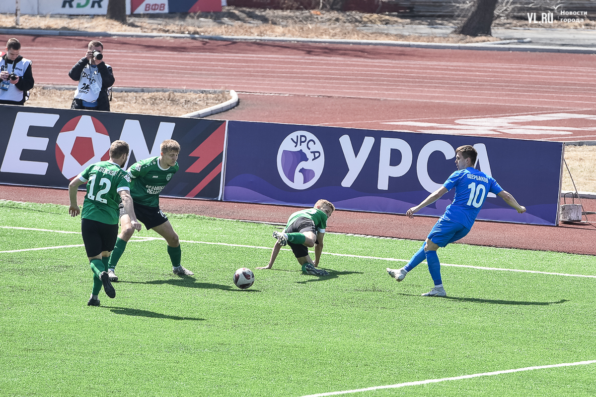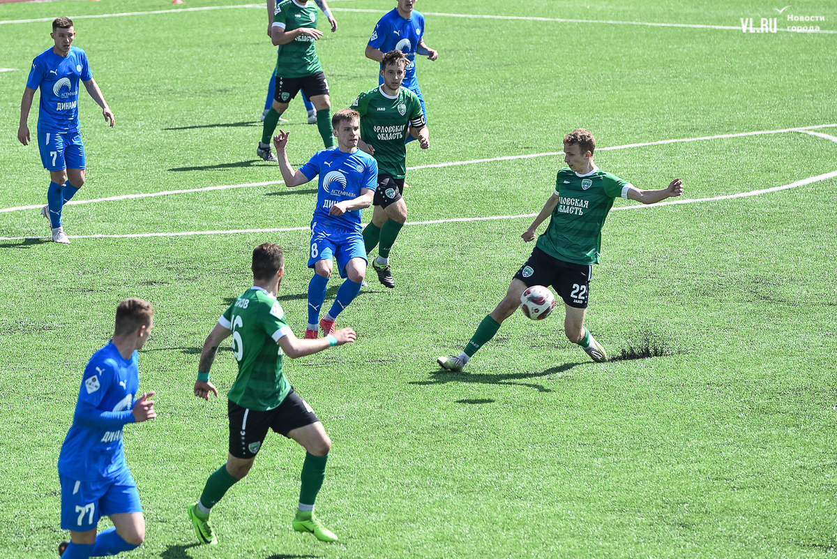 Со стартовым свистком дальневосточники решительно пошли вперёд, однако длительное время не удавалось открыть счёт – ворота словно заколдовали фанаты из Орла, добравшиеся во Владивосток в составе десяти человек. Только в дебюте встречи приморцы упустили несколько голевых моментов: лучший бомбардир прошлого сезона Егор Дорохов простил «Орёл», выстрелив в сантиметрах от стойки, а следом Никита Зырянов в упор расстреливал чужие владения, но от неминуемого гола в последний момент спас защитник. В итоге подопечные Михаила Сальникова не реализовали массу моментов и ушли на перерыв с «нулём» в графе «забитые голы».