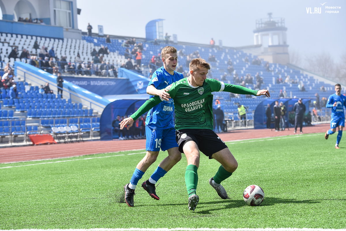 В воскресенье, 7 апреля, матчем «Динамо-Владивосток» – «Орёл» на стадионе «Динамо» открылся футбольный сезон в группе 3 LEON-Первенства Второй лиги «Б». Поединок 1-го тура завершился победой нашей команды со счётом 1:0. На 76-й минуте победный гол забил Вячеслав Дёмин.