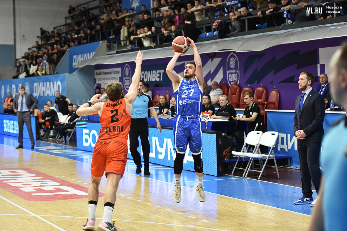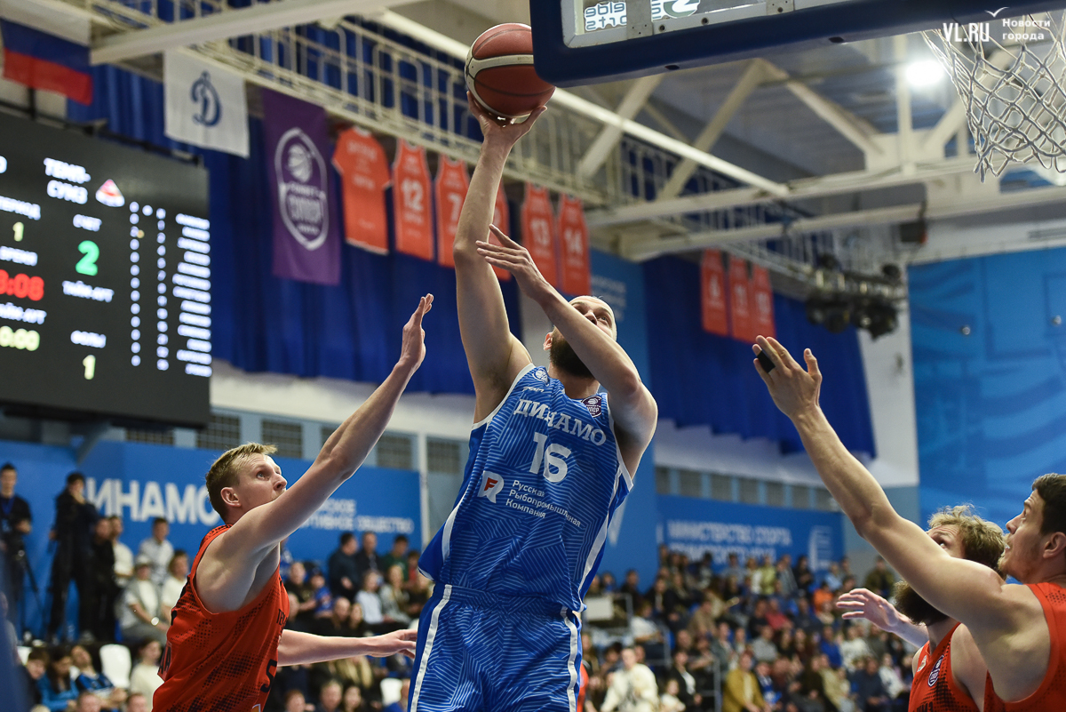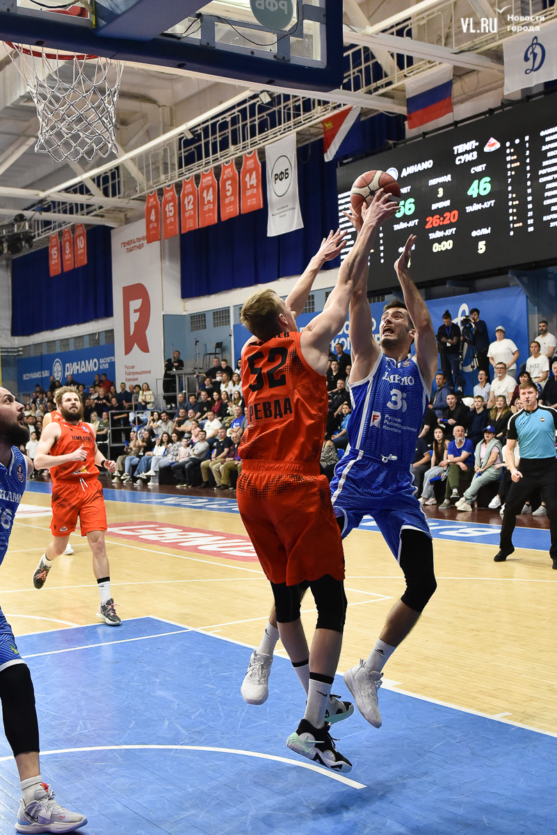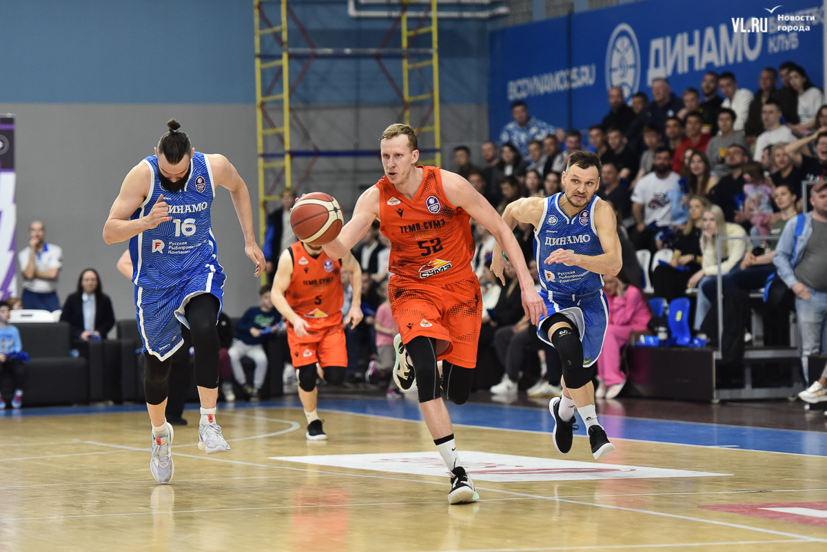 И, несмотря на прыть ревдинцев после большого перерыва, которые усилиями Заряжко и Рогозенко снова восстановили статус-кво на табло «Олимпийца», в дальнейшем «динамовцы» сыграли надёжно и в защите, и результативно в нападении, имея к началу решающей 10-минутки отрыв в «+12». На этом дружина Эдуарда Сандлера не успокоилась: после дальних попаданий Аксёнова и Корчагина преимущество достигло 16 очков. «Темп-СУМЗ», конечно, огрызнулся, но лишь на небольшом отрезке, сократив разрыв до «-10». Однако последнее слово осталось за хозяевами площадки – «Динамо» восстановило контроль и обошлось без нервной концовки. Итоговый счёт – 78:64, приморцы забрали первый матч и повели 1:0 в серии до трёх побед.
