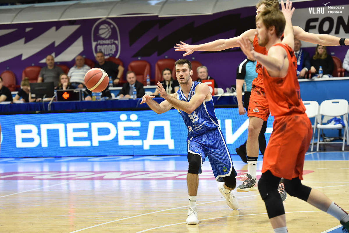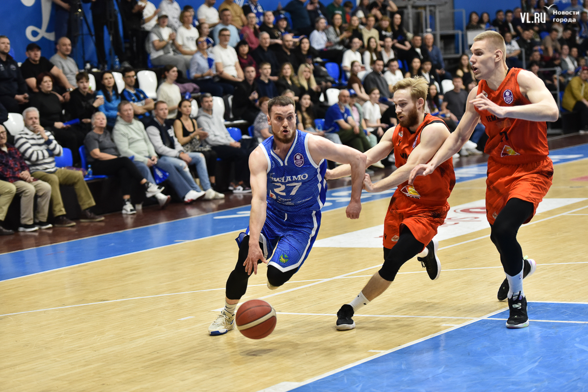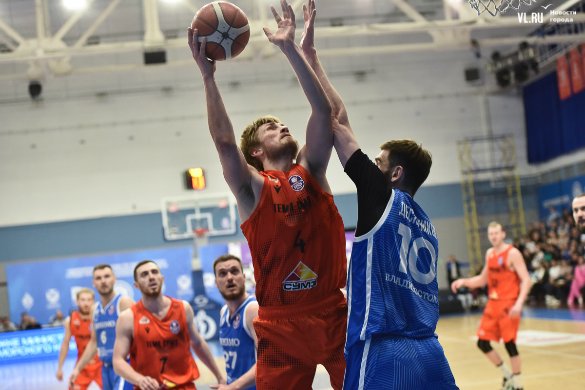 Подопечные Эдуарда Сандлера уверенно победили уральский клуб «Темп-СУМЗ» из Ревды в первом матче 1/2 финала плей-офф Суперлиги во Владивостоке со счётом 78:64. Самым результативным игроком встречи стал защитник Даниил Аксёнов, а его напарник по команде Андрей Десятников оформил пятый в сезоне дабл-дабл. 19 апреля команды снова сразятся в приморской столице.