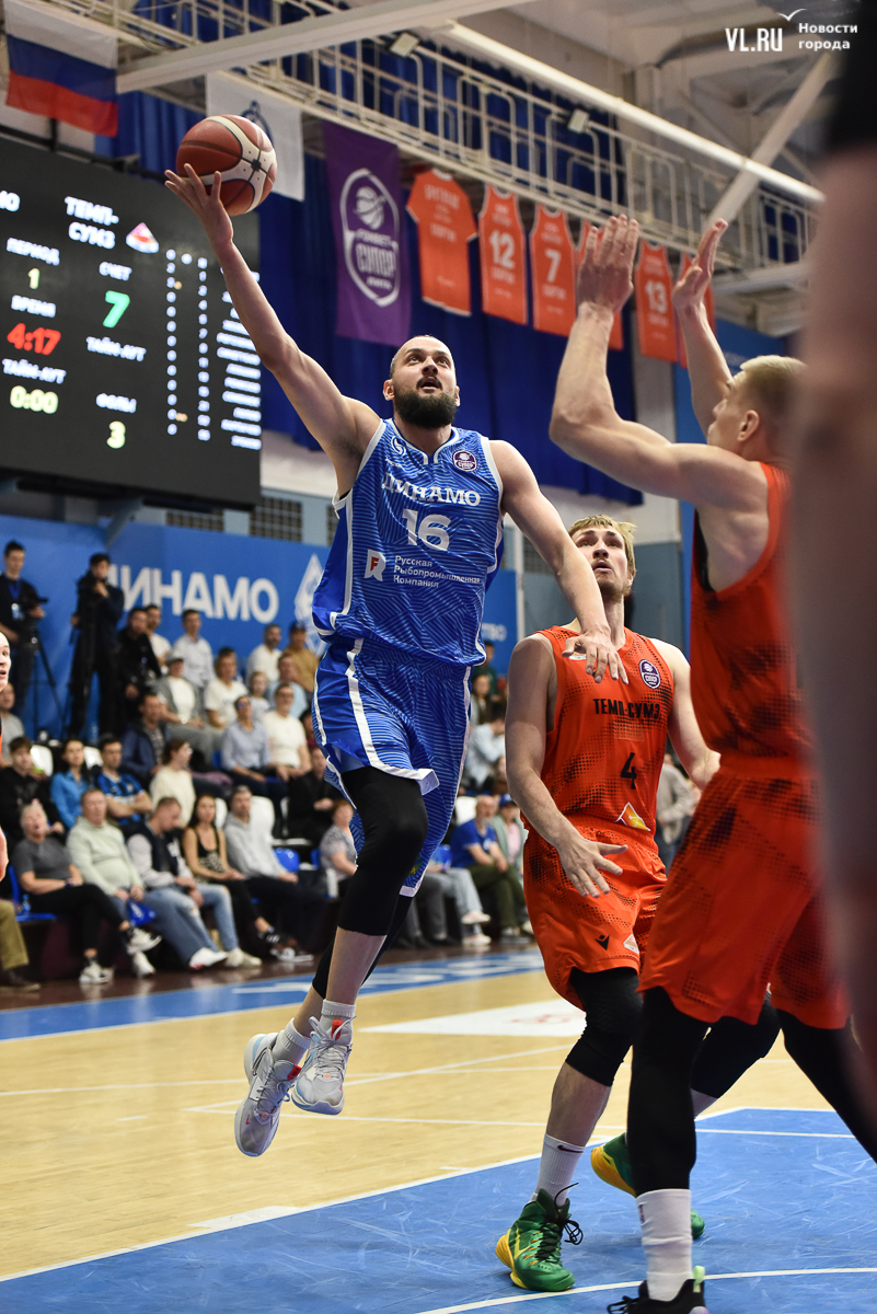 Правда, лидерство уральцев длилось недолго. Уже во второй четверти в быстром отрыве «трюльник» забросил Корчагин, затем фол Хозяшева реализовал Богданович, тем самым вернул лидерство «Динамо». И с этого момента по сути игра пошла по сценарию команды из Владивостока. Главный тренер «Темп-СУМЗ» истратил два тайм-аута, чтобы взбодрить своих подопечных, но против высоких Карпеко и Десятникова противодействия не нашёл – оба смело продавливали оборону и регулярно набирали очки, особенно Десятников, который без устали вколачивал броски сверху, – 41:36.