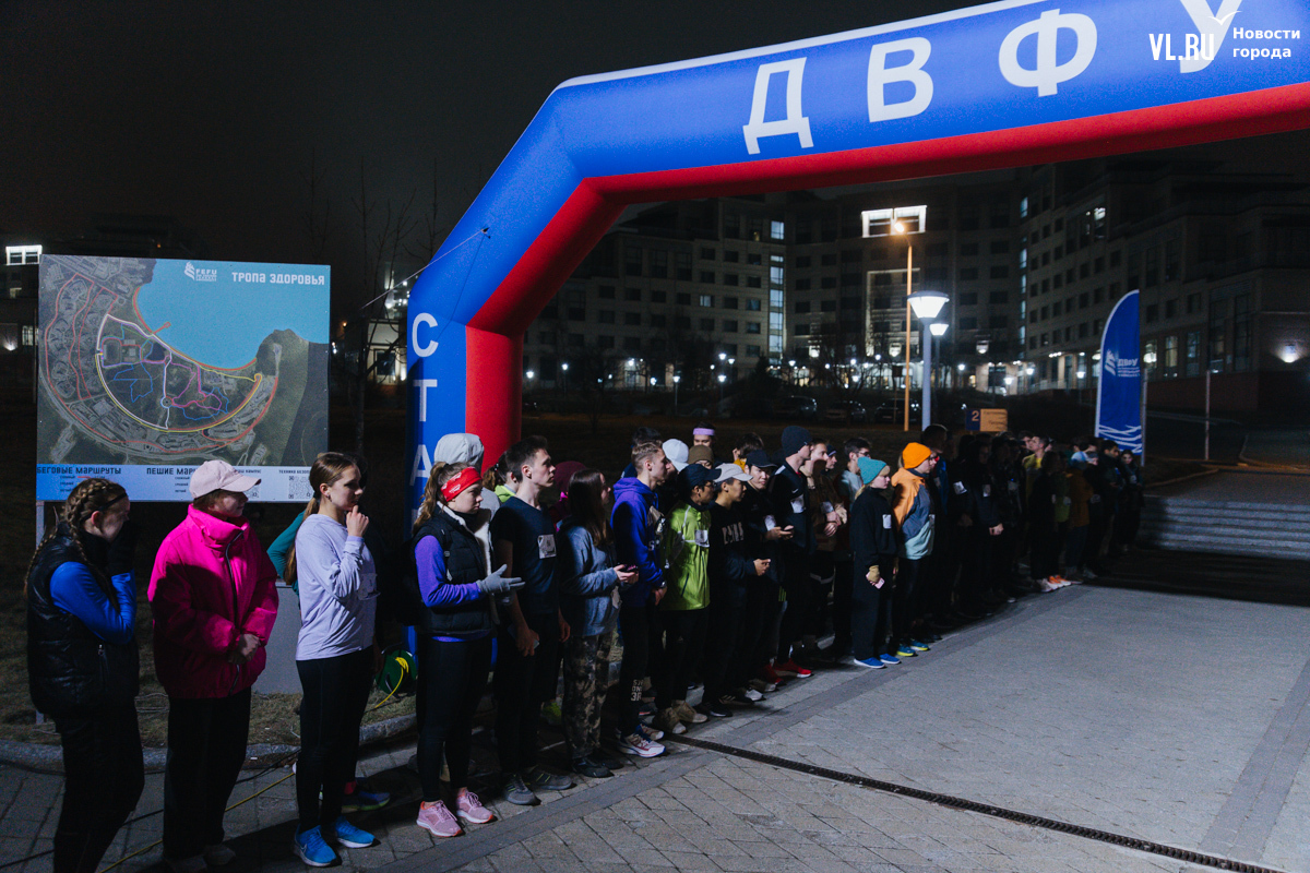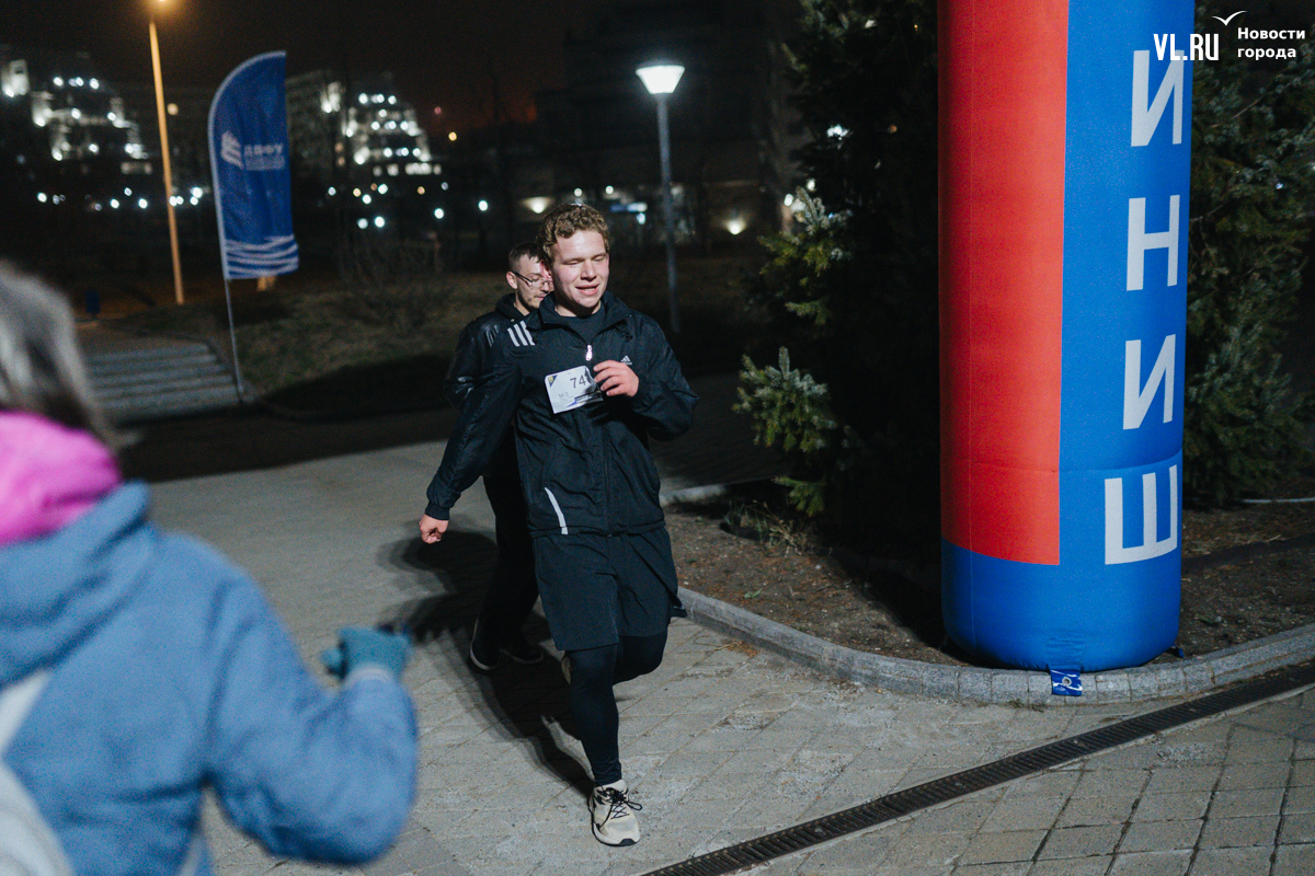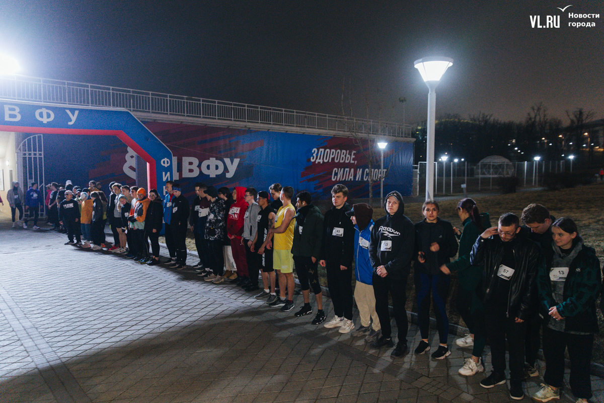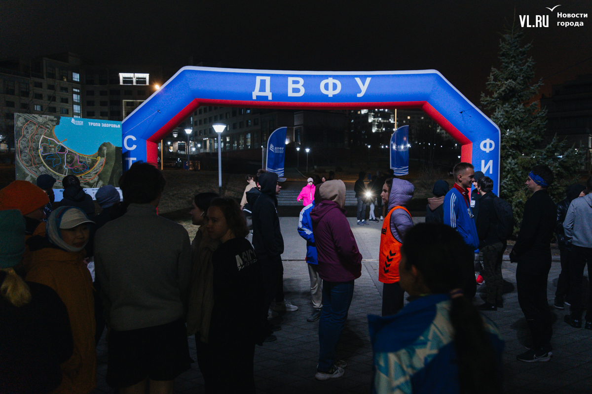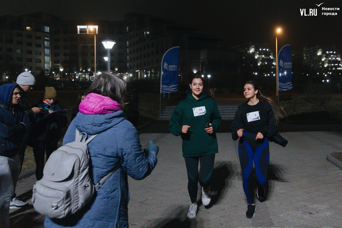 Любителей бега из Дальневосточного федерального университета решили удивить необычным форматом – студенты и сотрудники вышли на дистанции не днём, а практически ночью. Такой кампус-кросс провели на территории вуза в конце пятницы, 19 апреля. Решили испытать себя 59 участников – хотя для некоторых этот забег ничем не отличался от привычной тренировки.