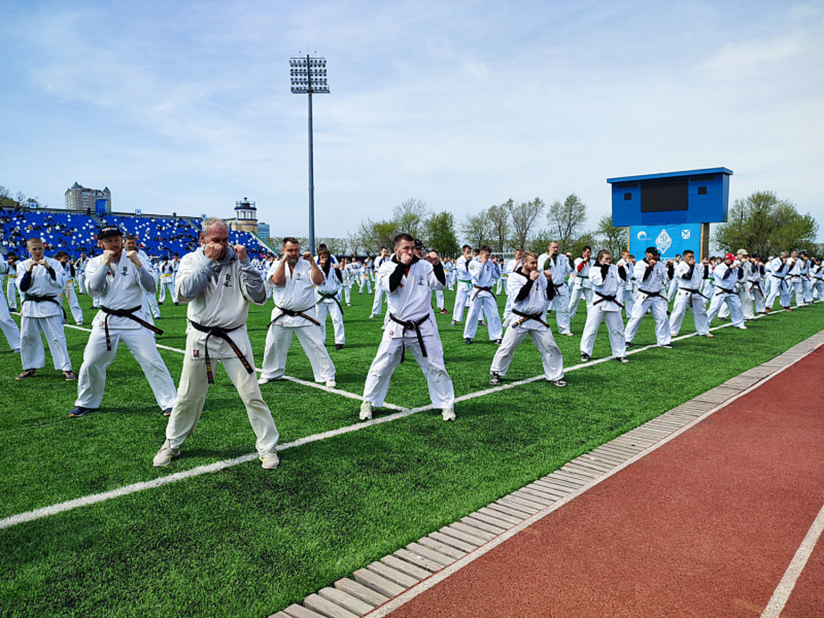 Спортсмены федерации кудо Приморского края провели на стадионе «Динамо» рекордную одновременную тренировку, посвящённую 79-й годовщине Победы в Великой Отечественной войне. Она стала также частью подготовки ко всероссийским соревнованиям, которые пройдут во Владивостоке 19 мая.