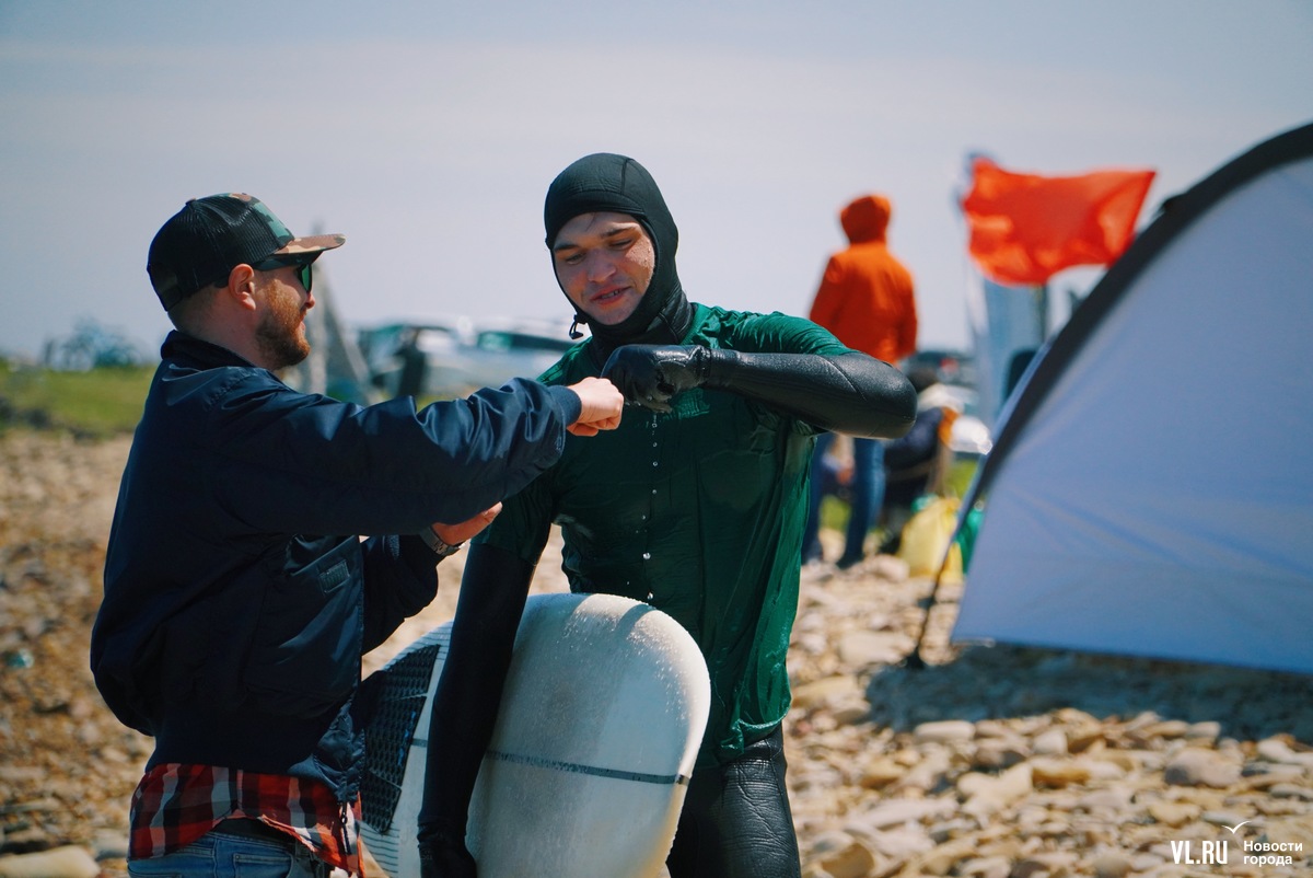 На чемпионат, который провели на мысе Ахлёстышева на Русском, приехали 11 спортсменов из Находки, Владивостока, Партизанска. Председатель правления федерации сёрфинга края и один из участников соревнований Даниил Филинов рассказывает, что условия были шикарными – а это очень важно: «С погодой нам повезло – солнце и большие волны, около двух метров. По итогам мы отобрали людей в сборную Приморья. Это делается так – участниками сборной становятся сёрферы, занявшие первое и второе места, а третий входит в резерв».