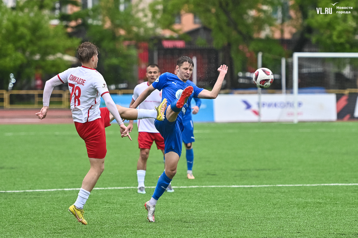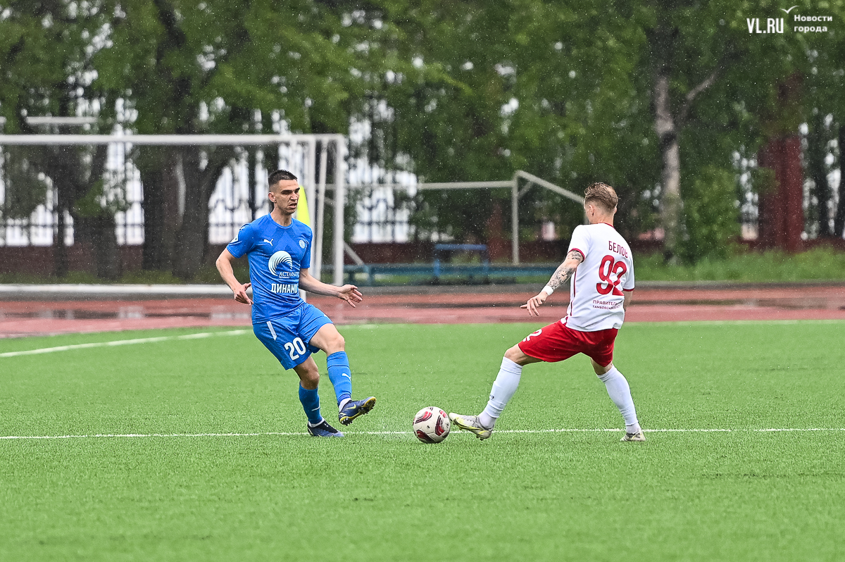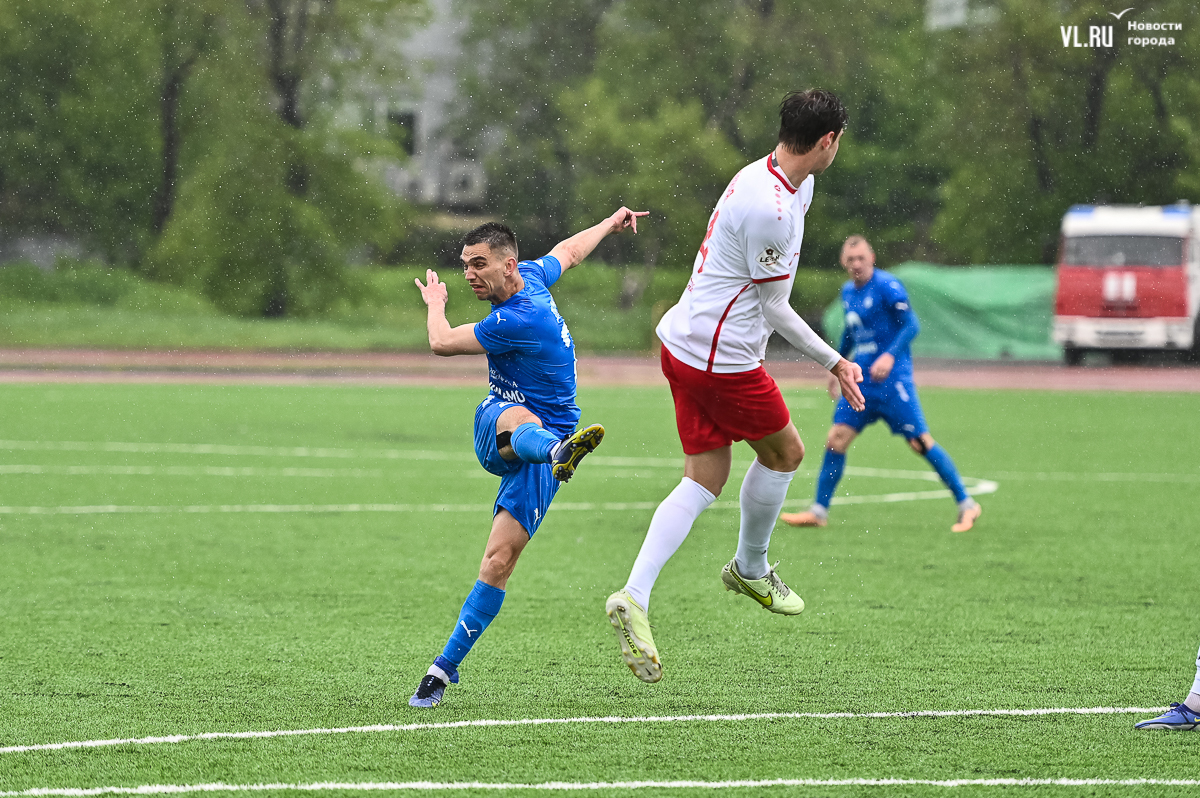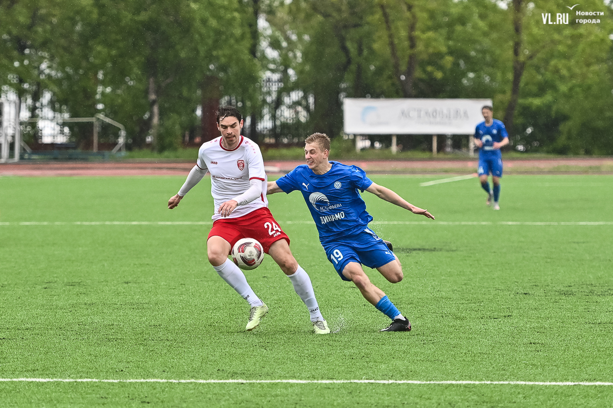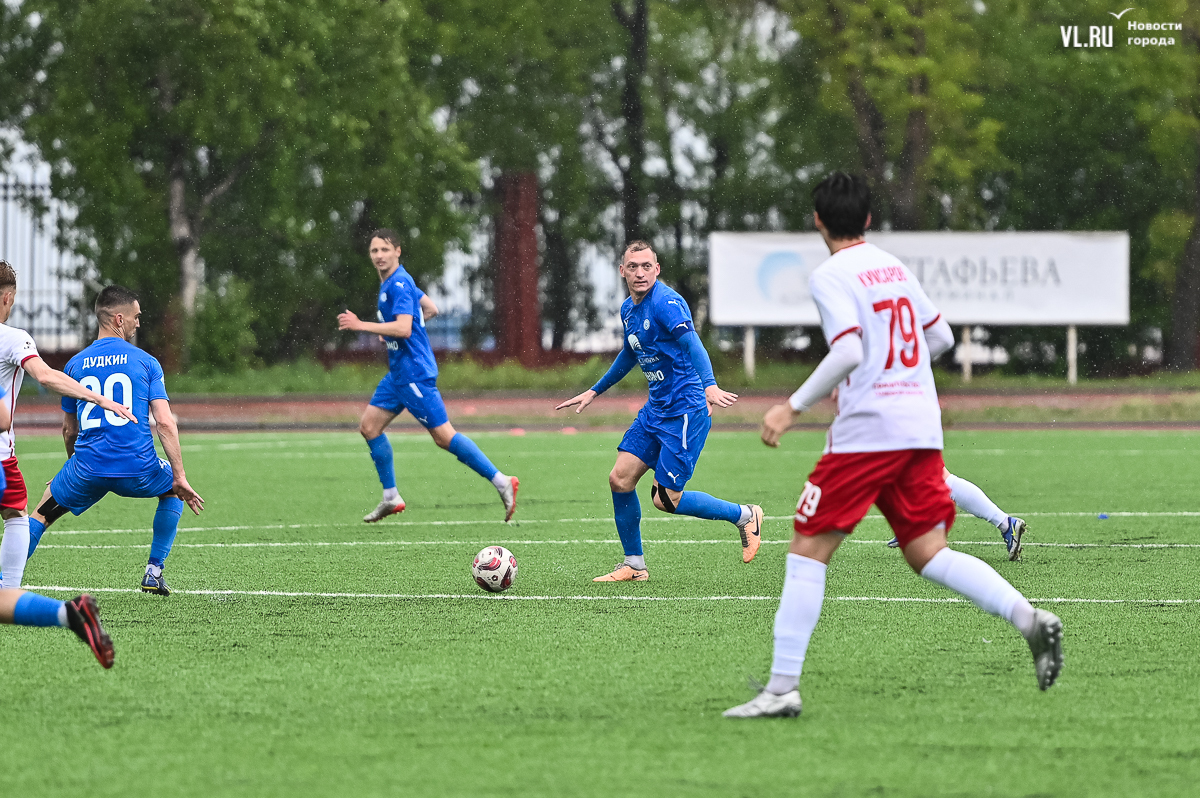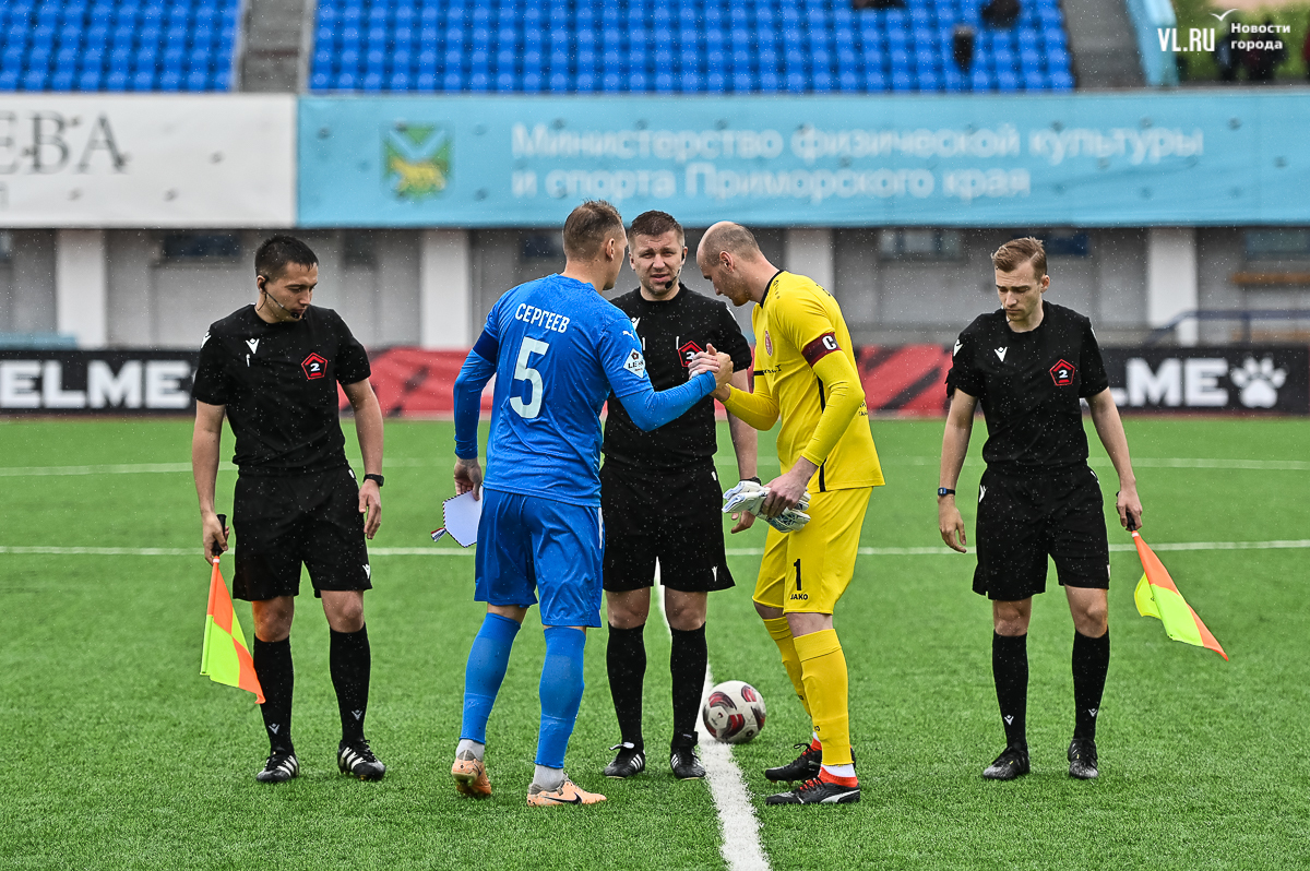 Коррективы в игру внёс обрушившийся на приморскую столицу ливень, однако, несмотря на это, команды сразу же задали игре высокий темп с обилием подкатов, единоборств и острых моментов. «Красно-белые» были чуть активнее в дебюте встречи и уже на 11-й минуте проверили на прочность Евгения Арчибасова. За пределами штрафной зоны лучший бомбардир Евгеньев исполнил мощный удар, но наш вратарь вытащил мяч из-под перекладины.