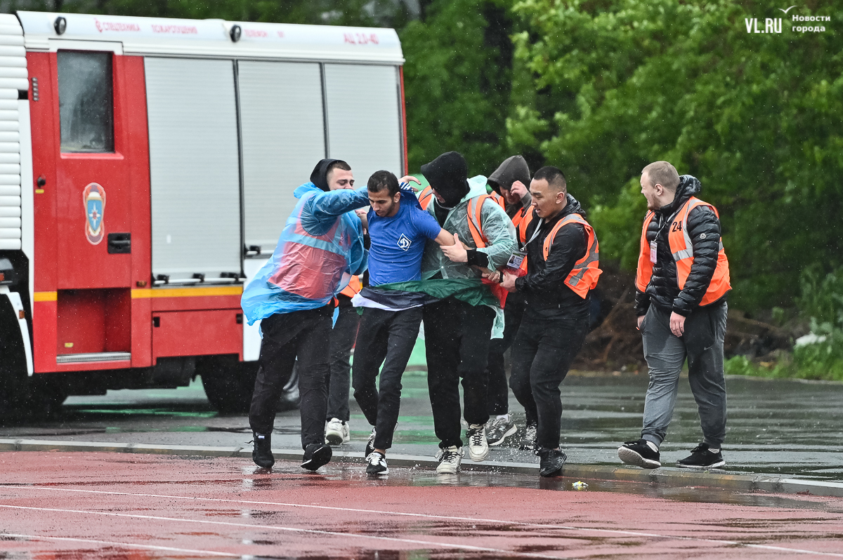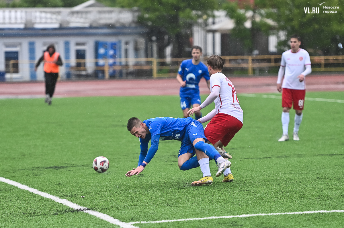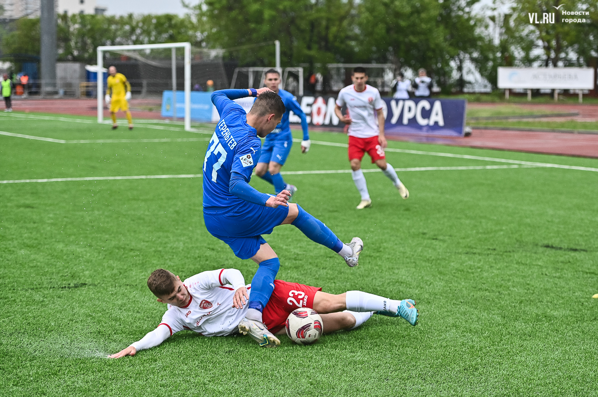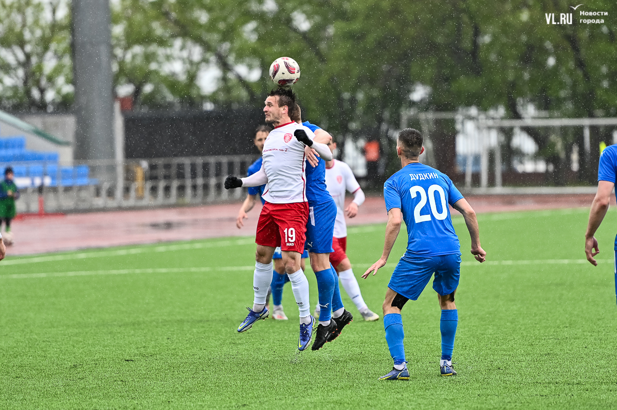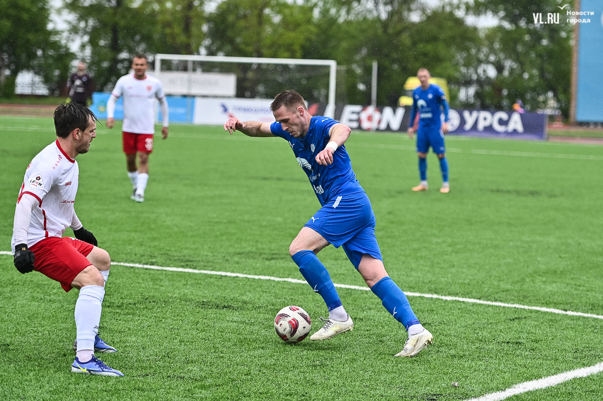 Коррективы в игру внёс обрушившийся на приморскую столицу ливень, однако, несмотря на это, команды сразу же задали игре высокий темп с обилием подкатов, единоборств и острых моментов. «Красно-белые» были чуть активнее в дебюте встречи и уже на 11-й минуте проверили на прочность Евгения Арчибасова. За пределами штрафной зоны лучший бомбардир Евгеньев исполнил мощный удар, но наш вратарь вытащил мяч из-под перекладины.