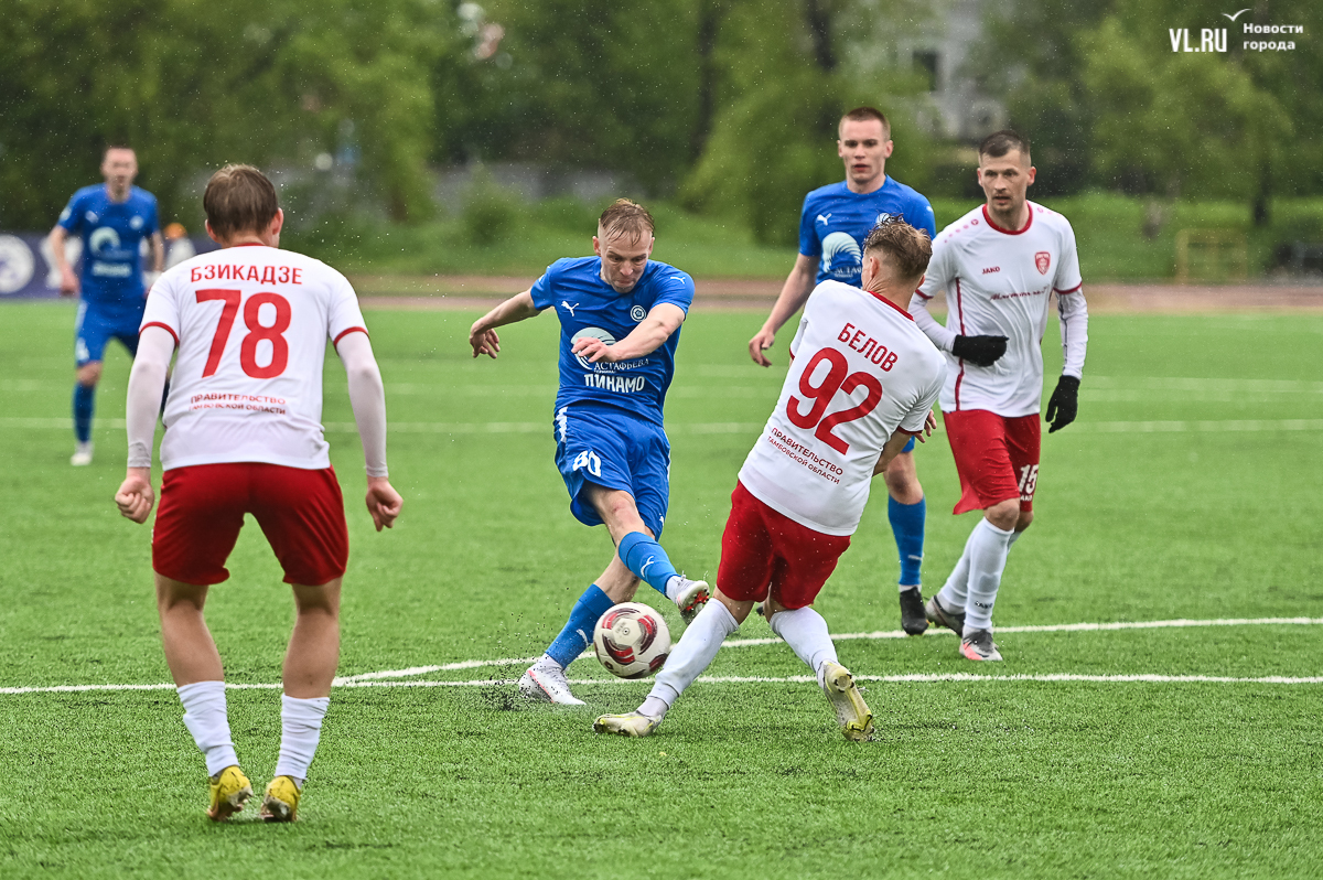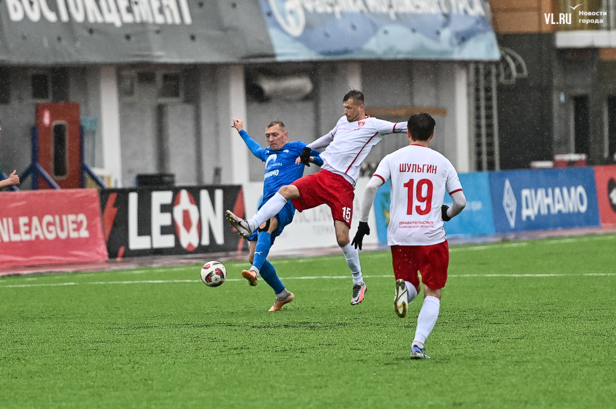 ФК «Динамо-Владивосток» нанёс поражение тамбовскому «Спартаку» в домашней встрече восьмого тура LEON первенства Второй лиги «Б». Матч на стадионе «Динамо» окончился со счётом 1:0. Победный гол-красавец забил нападающий Никита Кузин во втором тайме.
