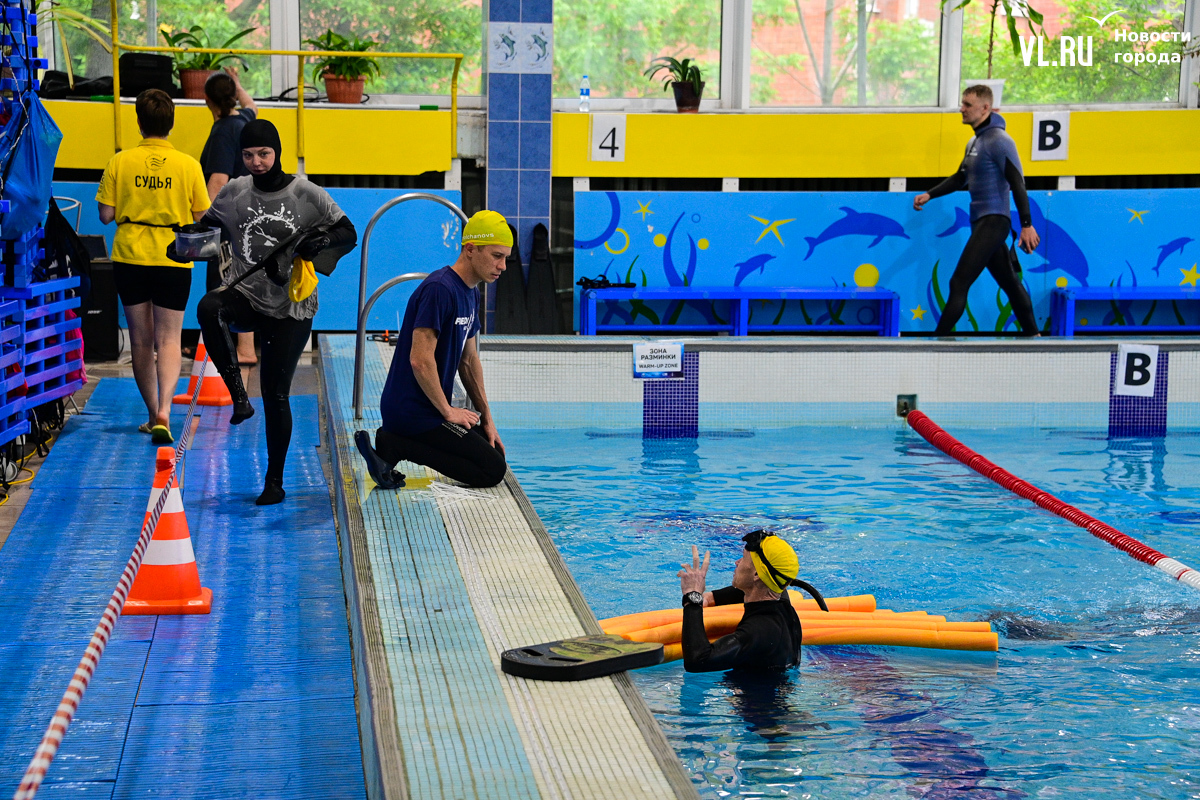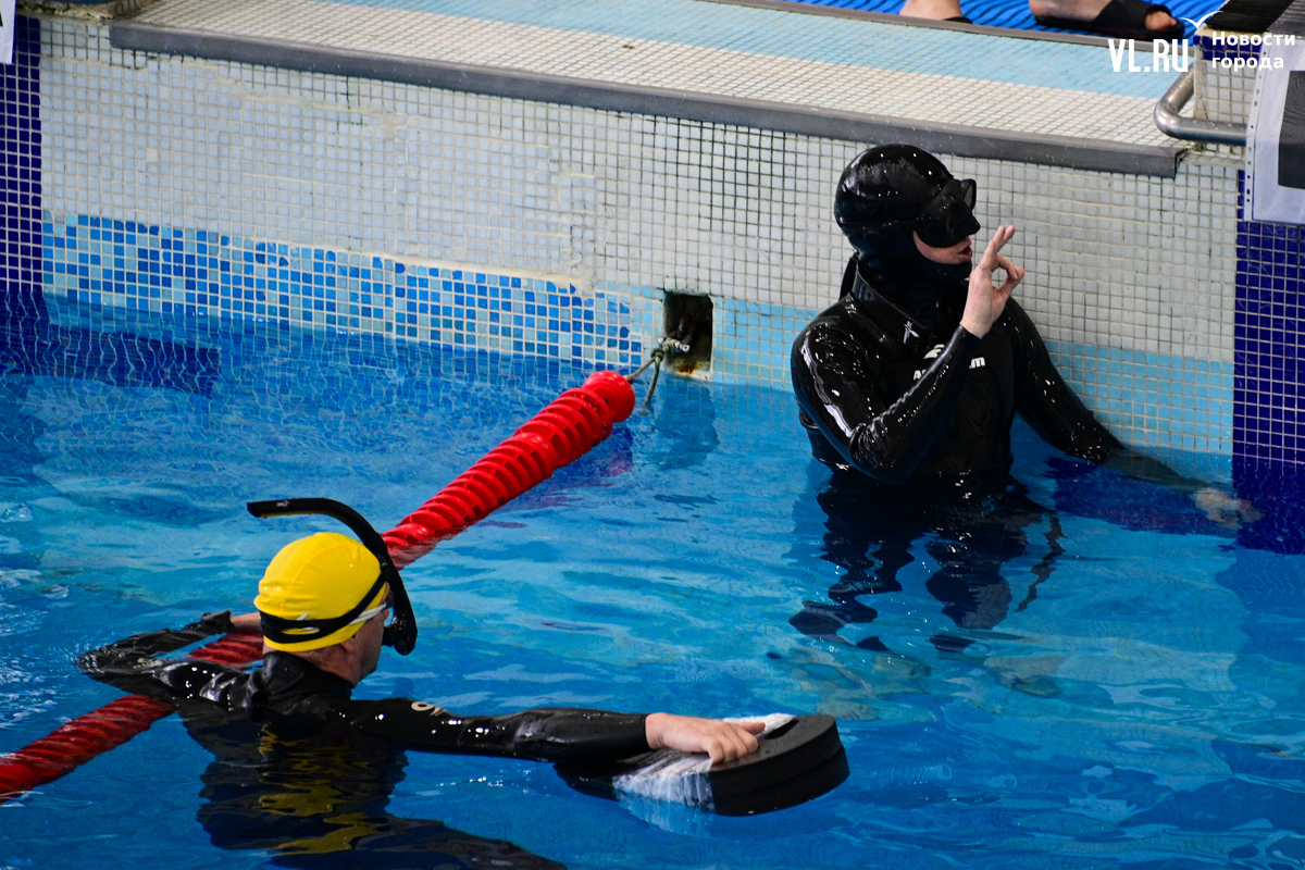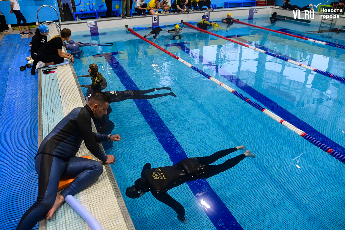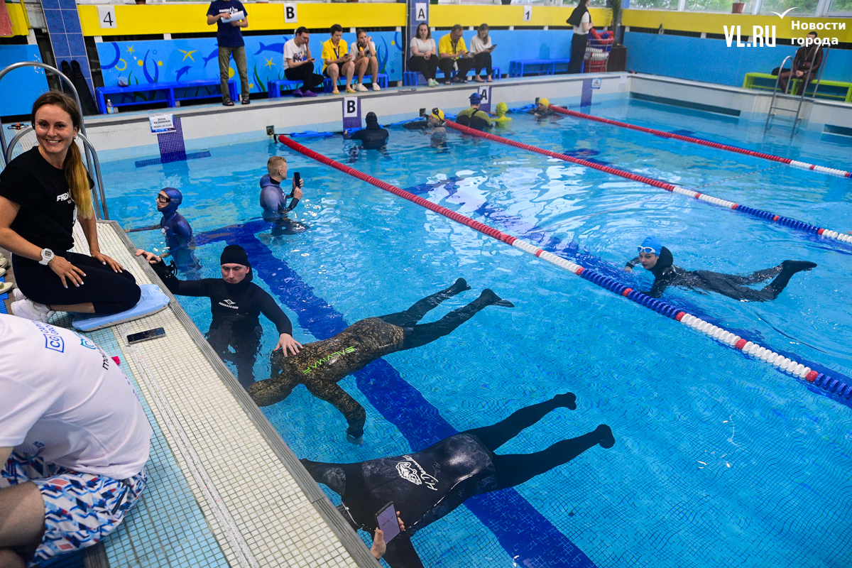 Соревнования по фридайвингу в шестой раз проходят во Владивостоке в эти выходные. В бассейне спорткомплекса «Юность» собрались 23 атлета из Приморья и Хабаровского края. В субботу определили лучших в динамике без ласт и статической задержке дыхания, где победители провели больше шести минут под водой. А сегодня спортсмены ныряют в моноласте и классических ластах.