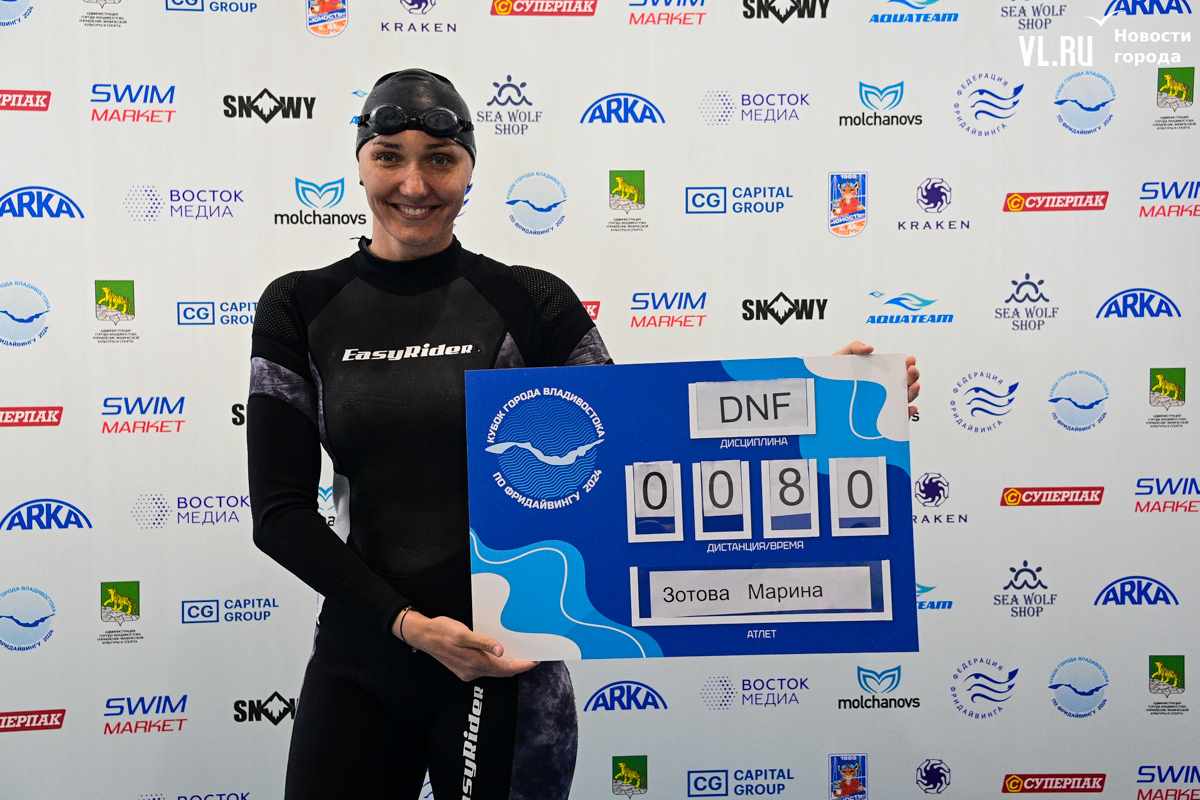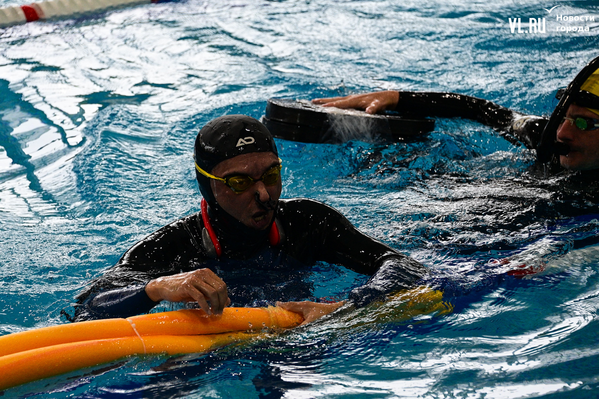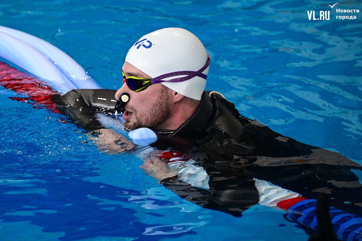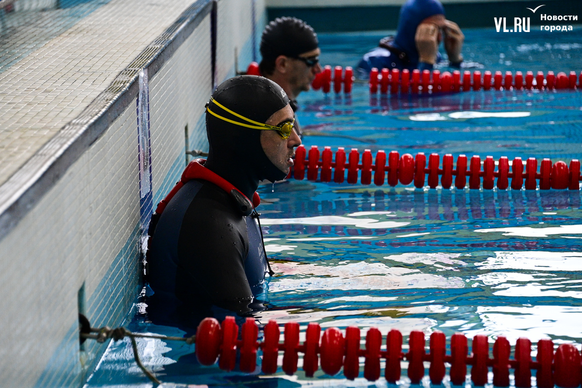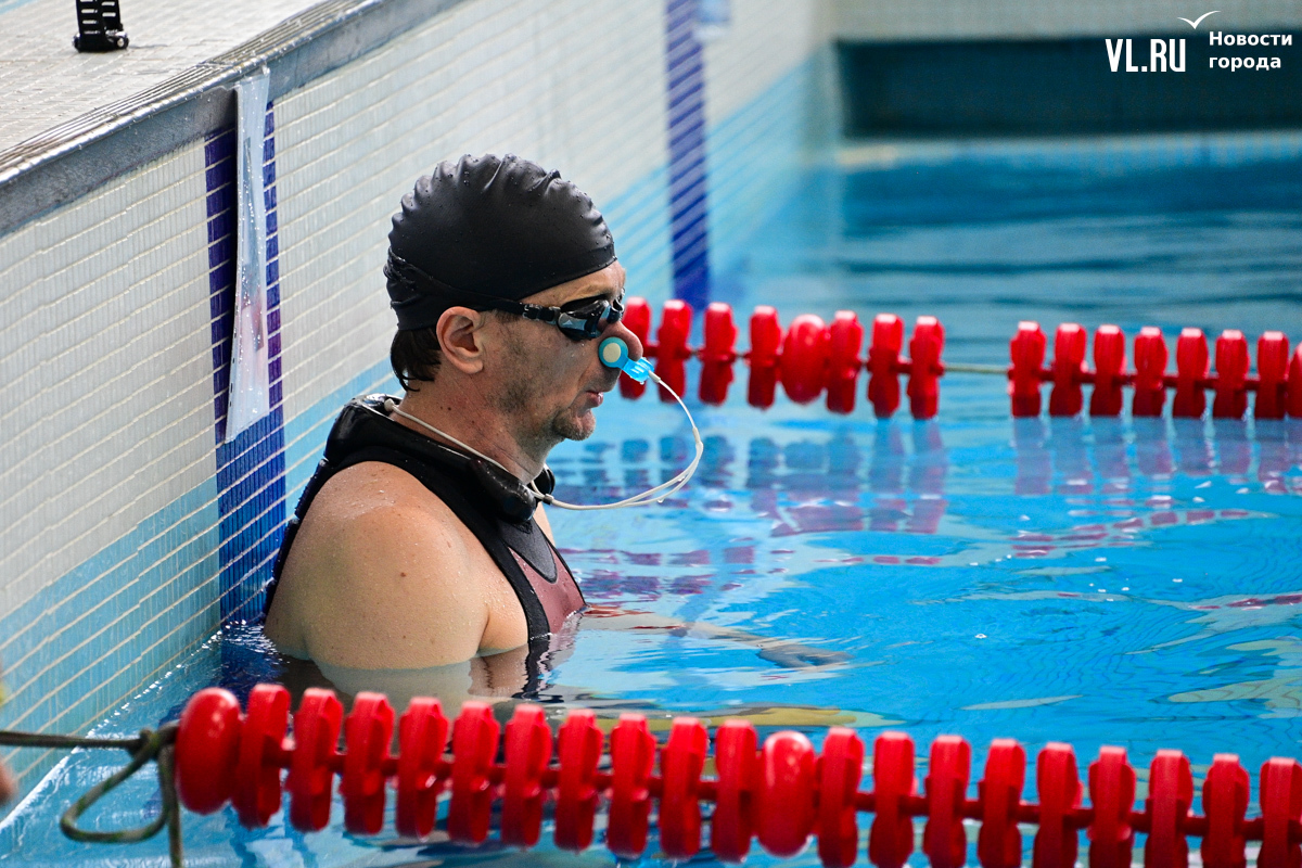 Спортсмен из Владивостока Максим Селецкий занимается спортивным фридайвингом четыре года. Рассказывает, что его лучший результат, – 155 метров в динамике без ласт. Но в целом доволен и результатом сегодняшнего заплыва – 143 метра (это четвёртый результат в дисциплине), потому что перед этим болел, не занимался и сегодня вышел из воды на грани блэкаута (когда из-за нехватки кислорода спортсмен на короткое время теряет сознание, а его результаты не засчитываются).