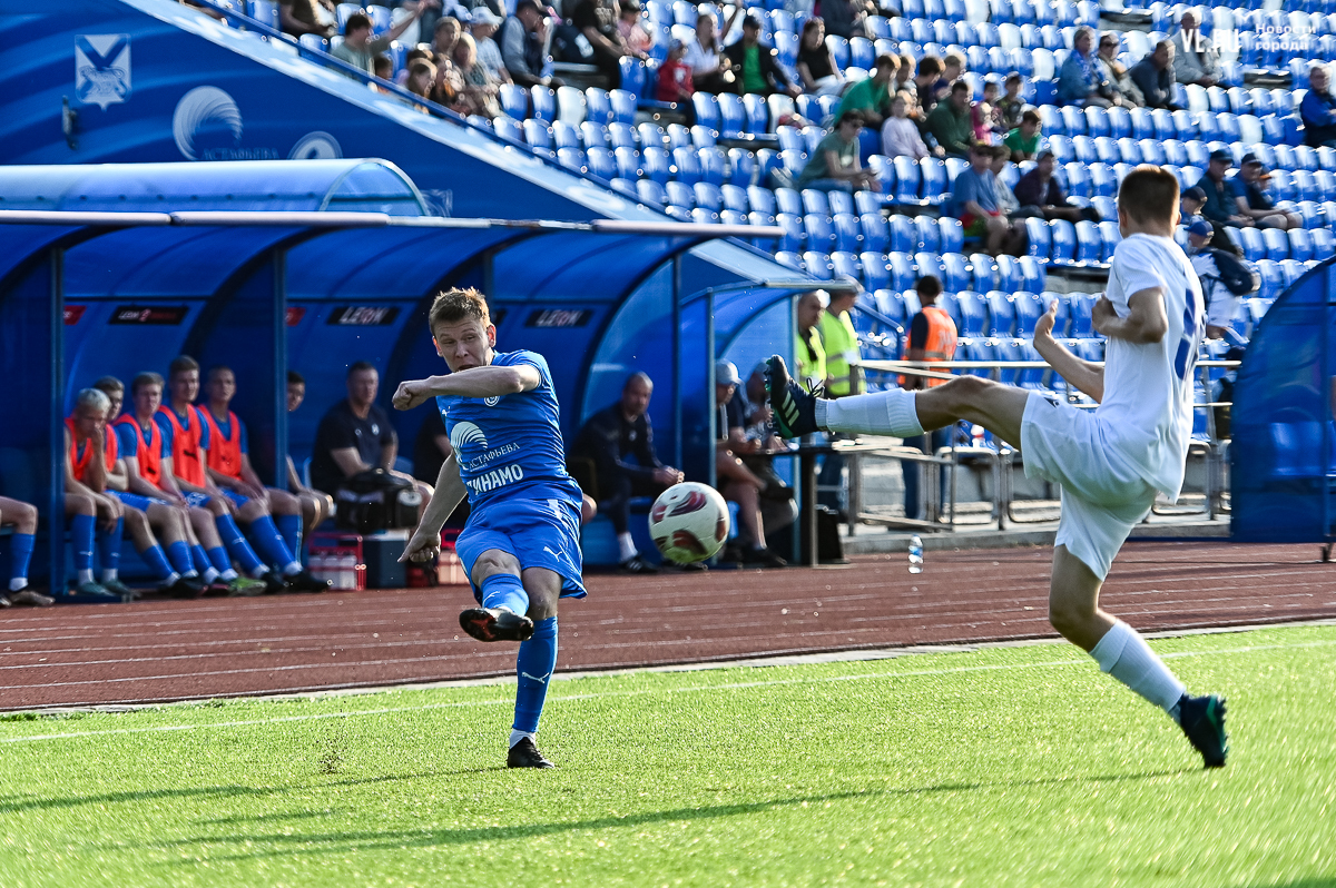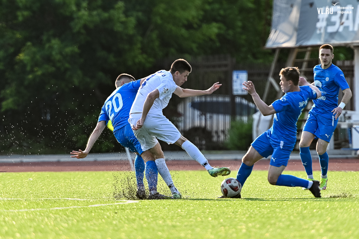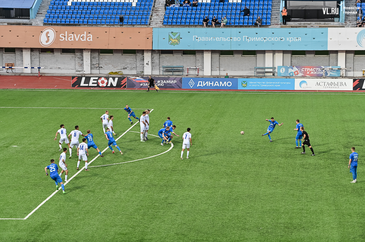 Приморский коллектив на родном стадионе «Динамо» праздновал «сухую» победу со счётом 3:0 над подмосковным клубом «Коломна», тем самым продлил серию с набранными очками до девяти матчей кряду. Голами в первом тайме отметились Алексей Баев и Игорь Шестаков, а финальную точку в противостоянии на 85-й минуте установил Егор Дорохов. После 11 игр чемпионата приморцы возглавляют группу 3 Второй лиги «Б».