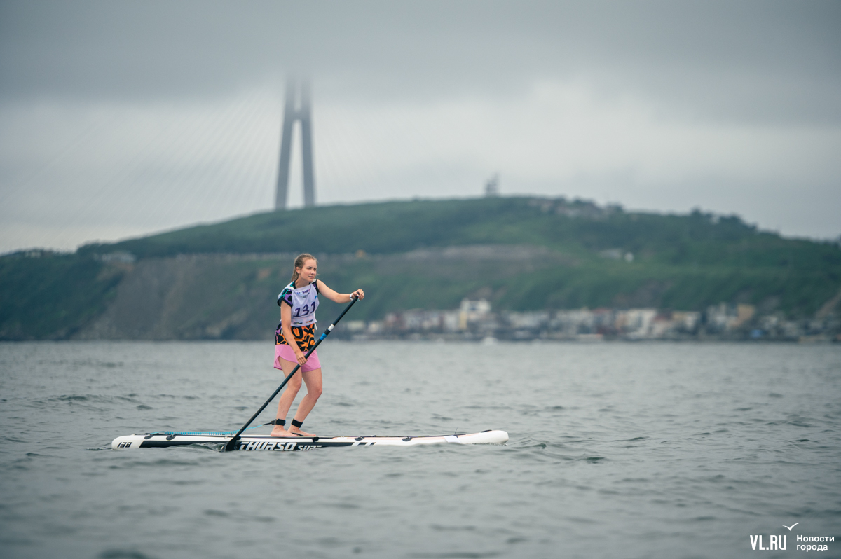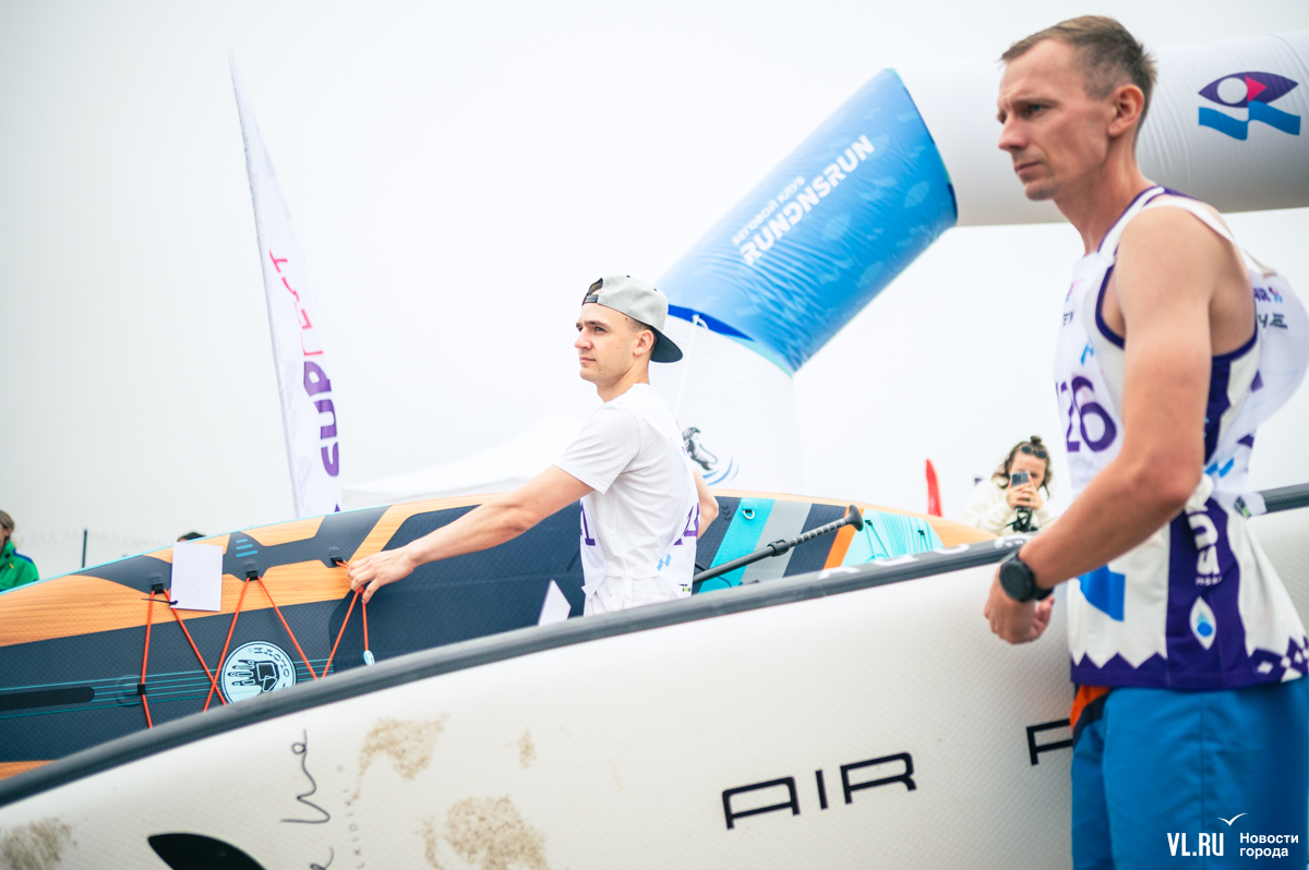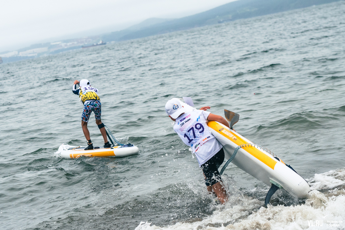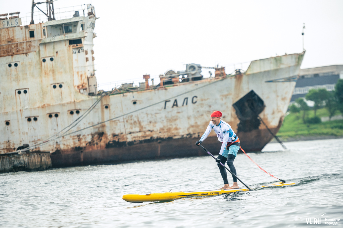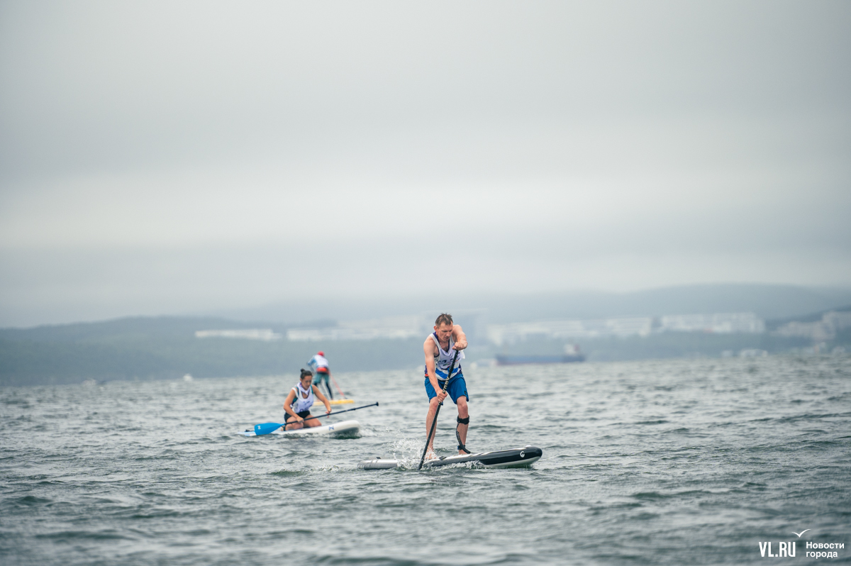 Следующие старты получились драматичнее – из-за досадной случайности двукратный чемпион Приморья Максим Марков пришёл третьим. Напомним, накануне он вёл здесь мастер-класс для детей. Ну, а сегодня у Максима получилась уникальная гонка – из-за неправильно собранного оборудования большую часть дистанции он прошёл практически без фина. Это плавник, от которого сильно зависит стабильность доски, удержание её на курсе. В какой-то момент фин отстегнулся и никак не помогал. При этом Максим всё-таки умудрился прийти третьим.