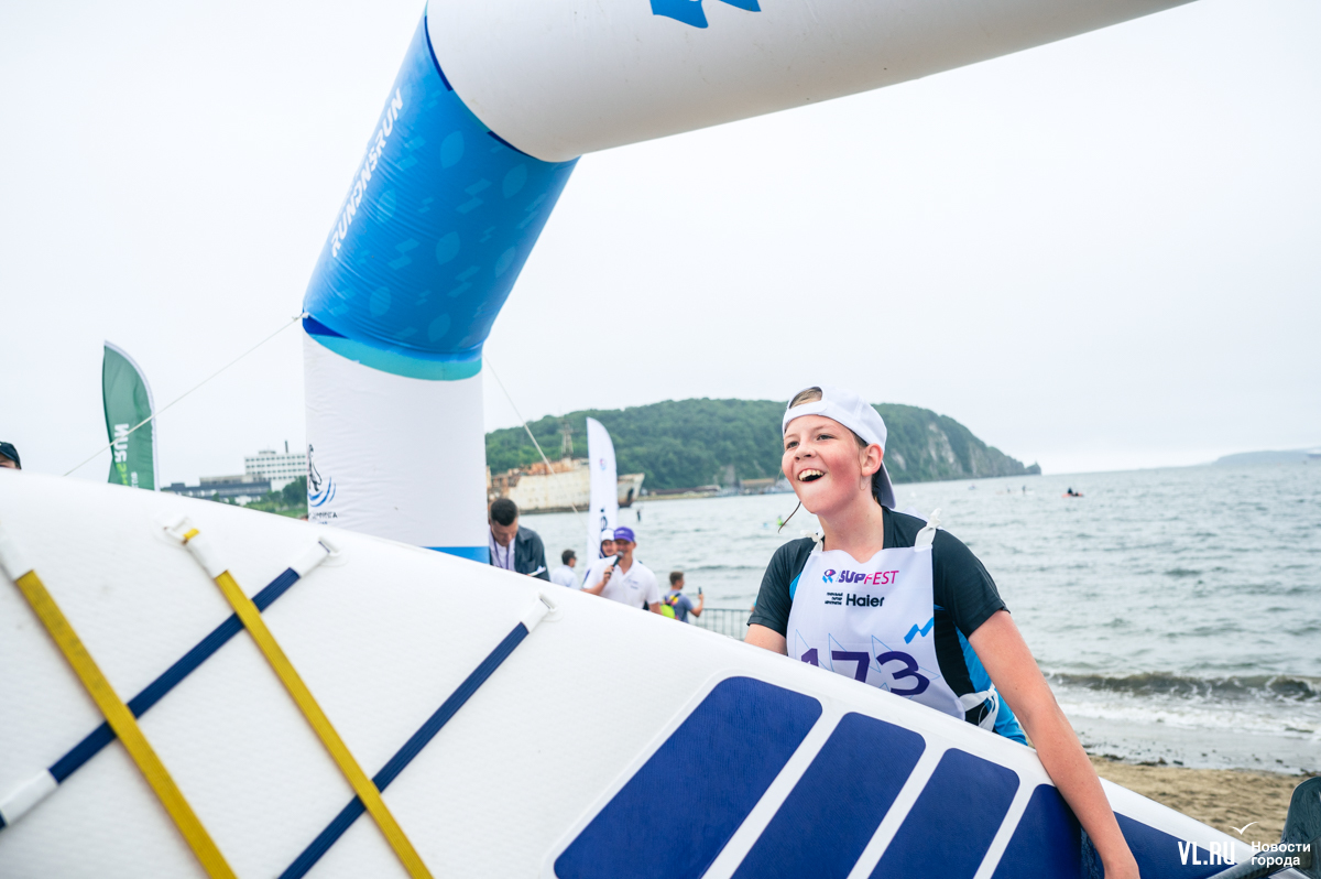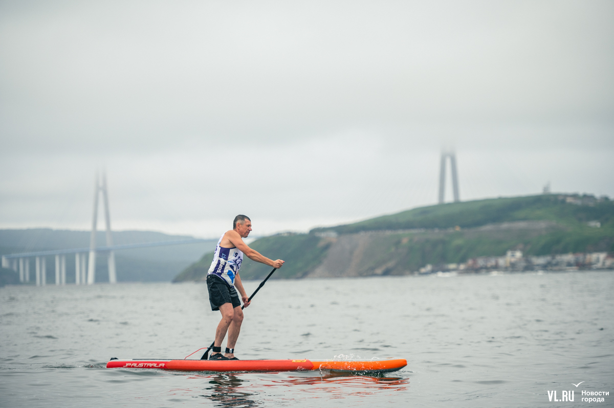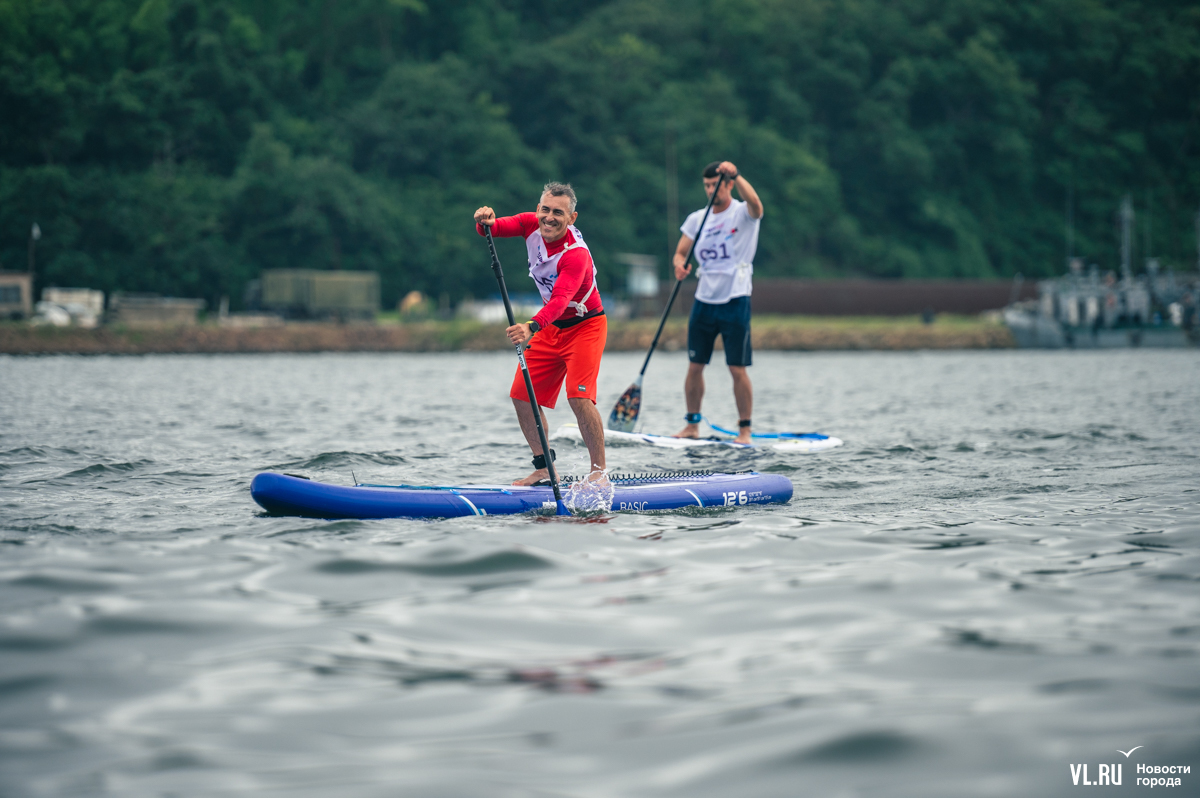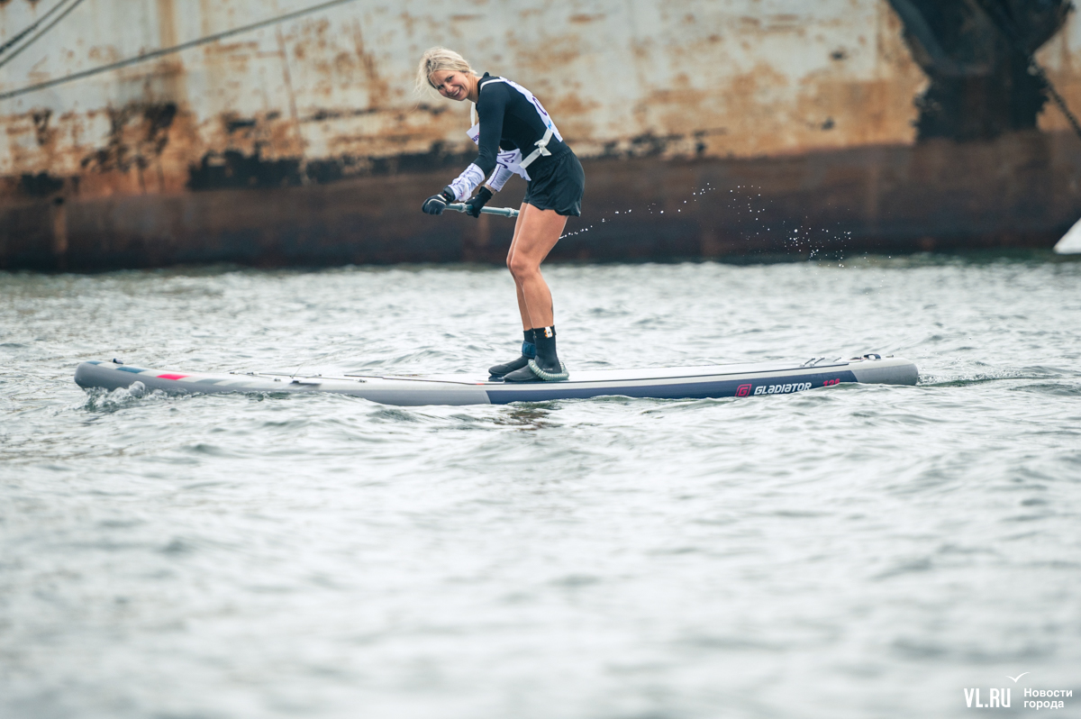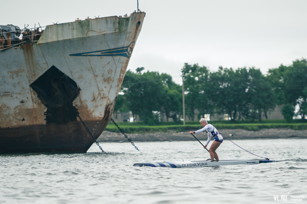 Следующие старты получились драматичнее – из-за досадной случайности двукратный чемпион Приморья Максим Марков пришёл третьим. Напомним, накануне он вёл здесь мастер-класс для детей. Ну, а сегодня у Максима получилась уникальная гонка – из-за неправильно собранного оборудования большую часть дистанции он прошёл практически без фина. Это плавник, от которого сильно зависит стабильность доски, удержание её на курсе. В какой-то момент фин отстегнулся и никак не помогал. При этом Максим всё-таки умудрился прийти третьим.