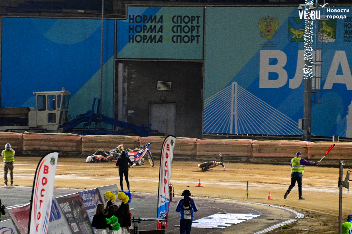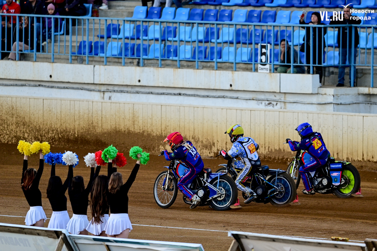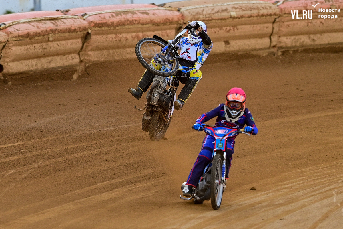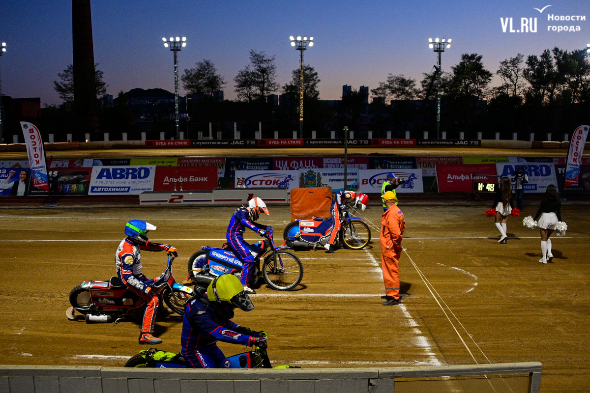 На стадионе «Авангард» во Владивостоке прошли соревнования по спидвею на Кубок России среди пар. Четыре команды юниоров и четыре – взрослого состава из Владивостока, Тольятти, Балаково и Октябрьского отыграли 20 заездов. По итогу среди юниоров владивостокский «Восток» стал третьим, а среди взрослого состава – первым. При этом заезды в среду вечером не обошлись без большого количества падений и, к сожалению, травм.
