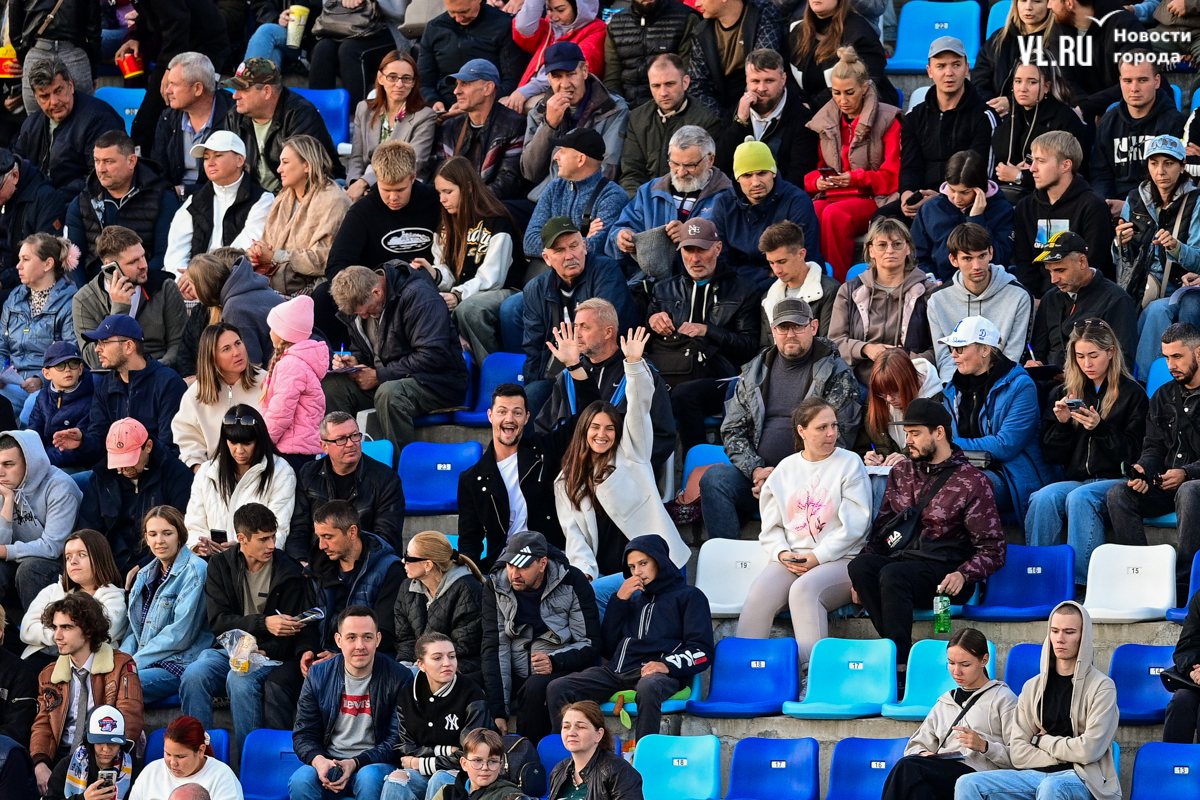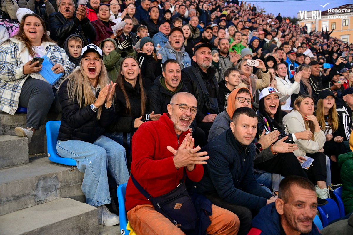 Заметны были на трибунах и две необычные куртки – голубые и с надписью «С «Турбиной» по стране». Сергей и Ольга уже 8 лет ездят за любимой командой по городам, приезжают болеть за неё во Владивосток и Уссурийск.