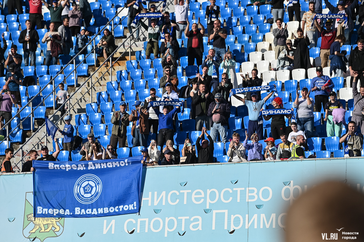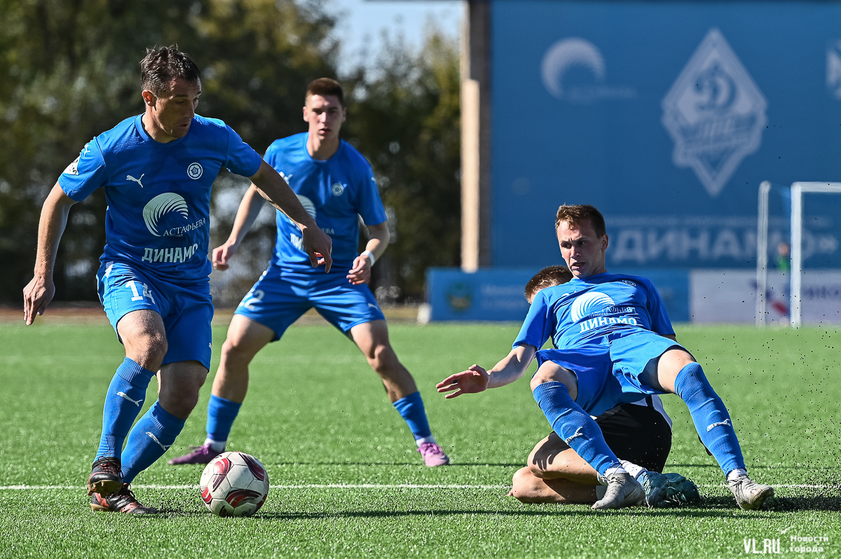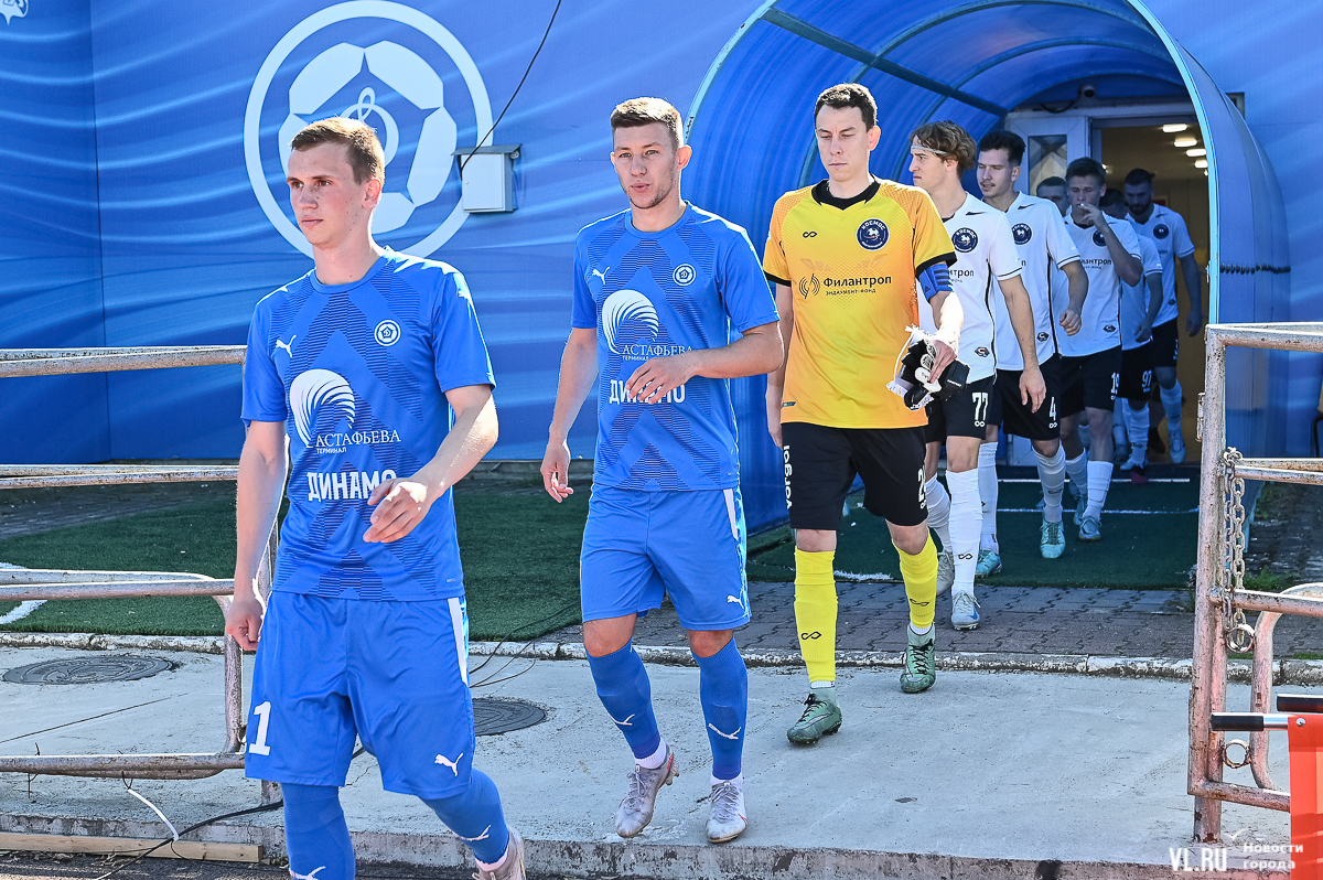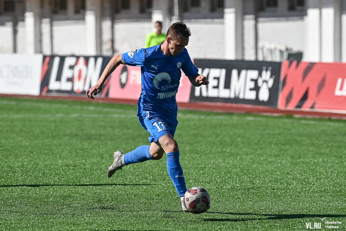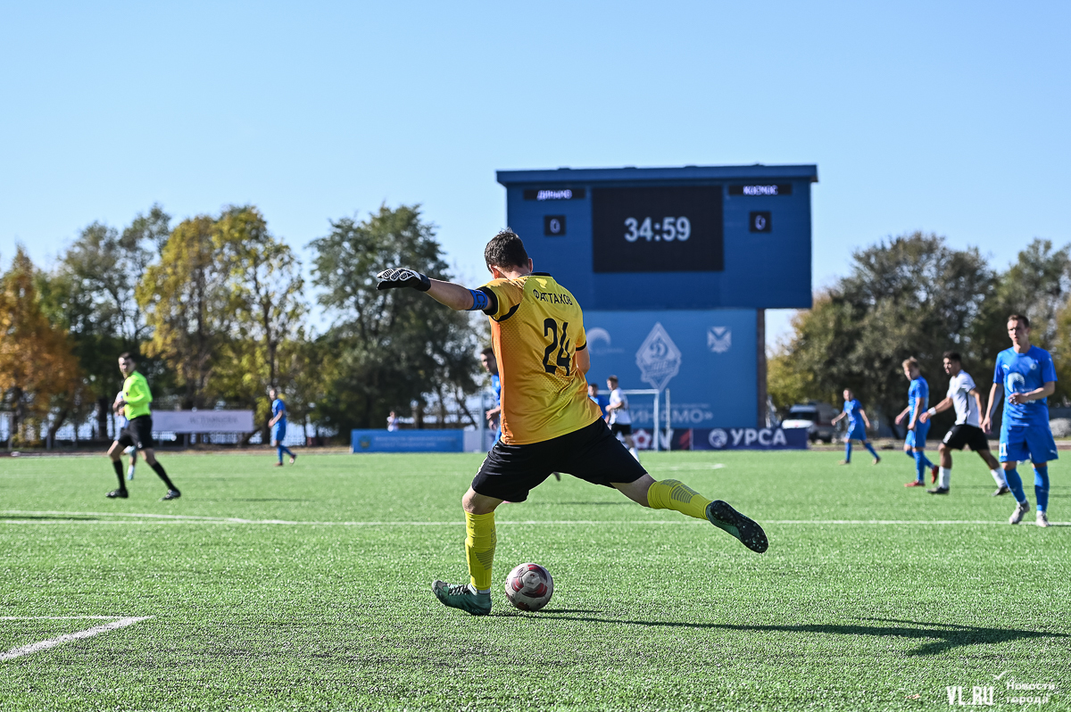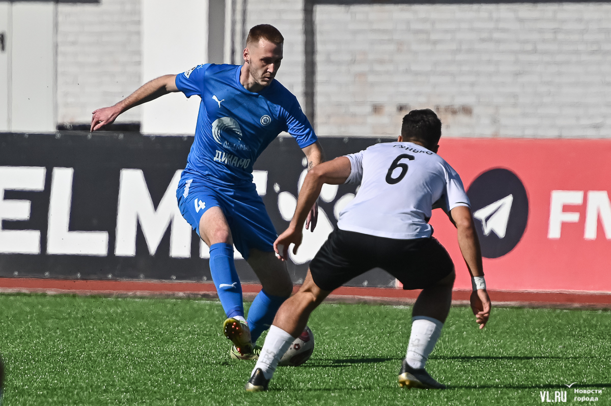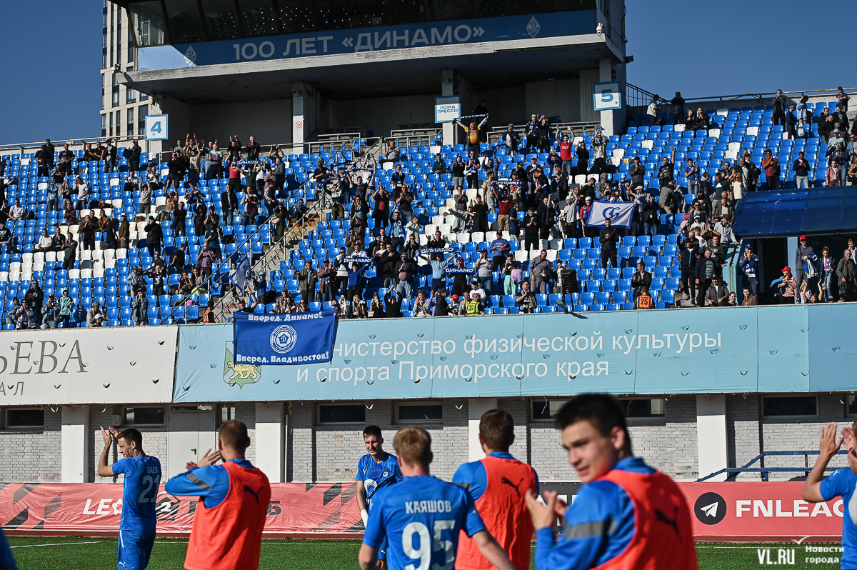 Футбольный клуб «Динамо-Владивосток» на домашнем стадионе в центральном матче 27-го тура Второй лиги «Б» в меньшинстве обыграл со счётом 2:1 вторую команду чемпионата, подмосковный «Космос», и уже в следующем поединке может досрочно оформить чемпионство в группе 3. Победный гол на 90-й минуте забил защитник Виктор Курышев.