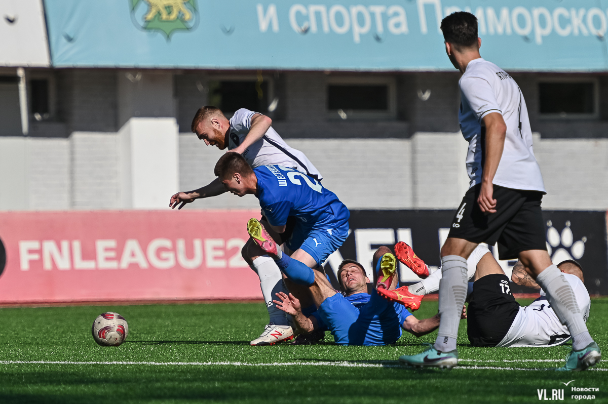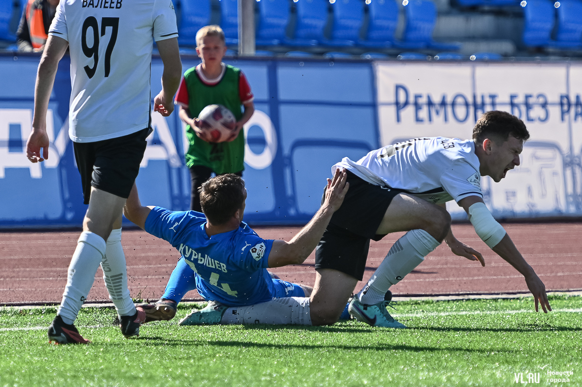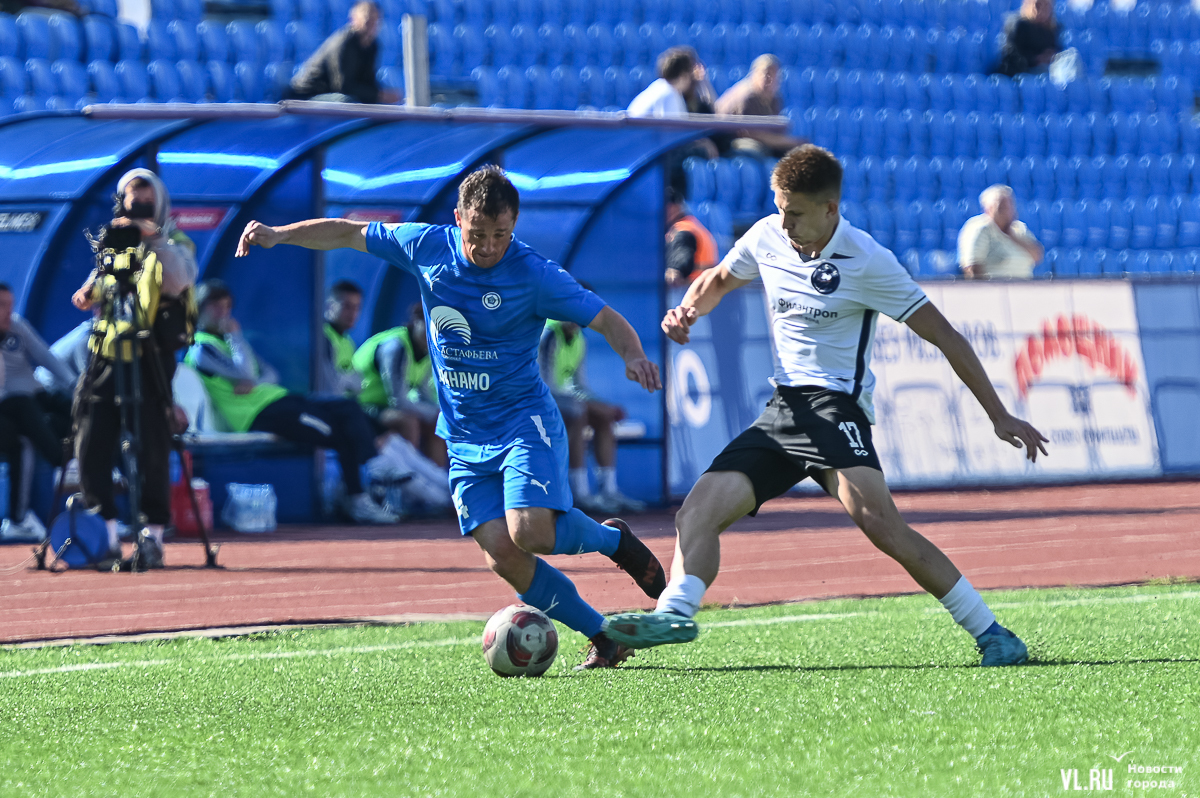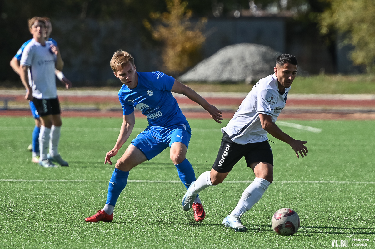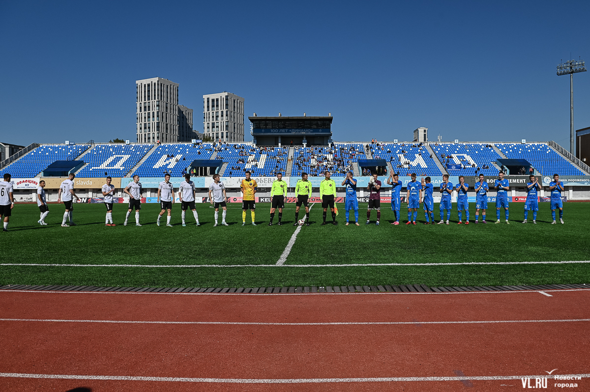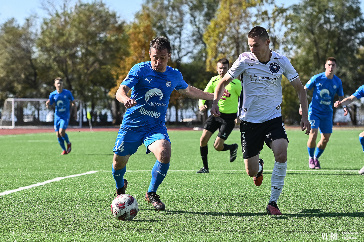 Футбольный клуб «Динамо-Владивосток» на домашнем стадионе в центральном матче 27-го тура Второй лиги «Б» в меньшинстве обыграл со счётом 2:1 вторую команду чемпионата, подмосковный «Космос», и уже в следующем поединке может досрочно оформить чемпионство в группе 3. Победный гол на 90-й минуте забил защитник Виктор Курышев.