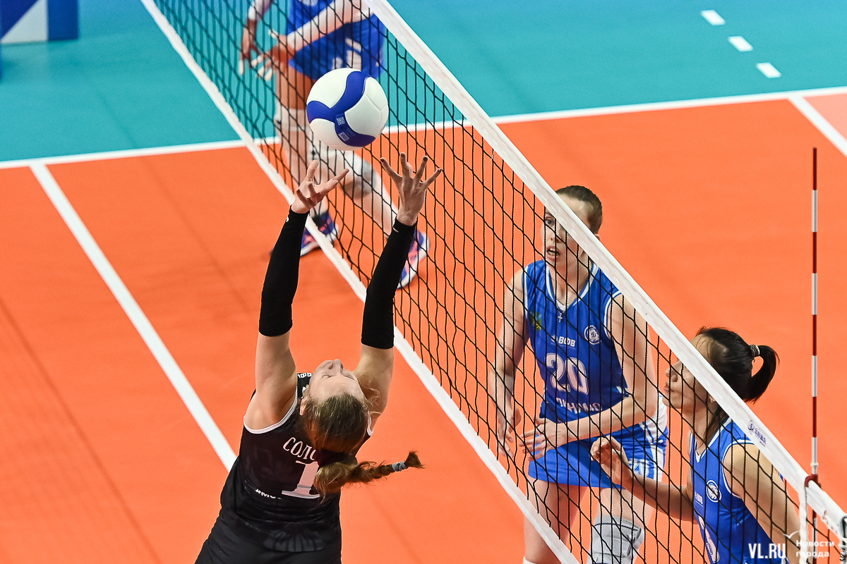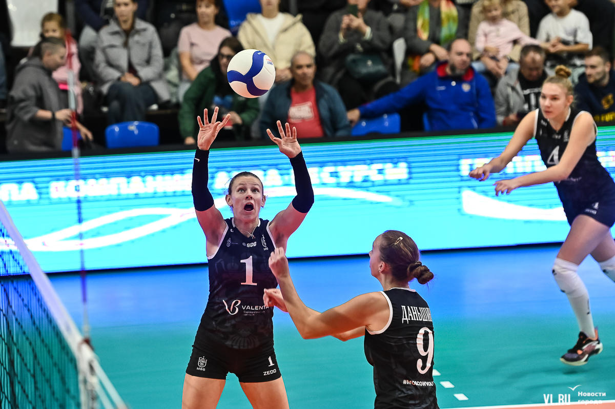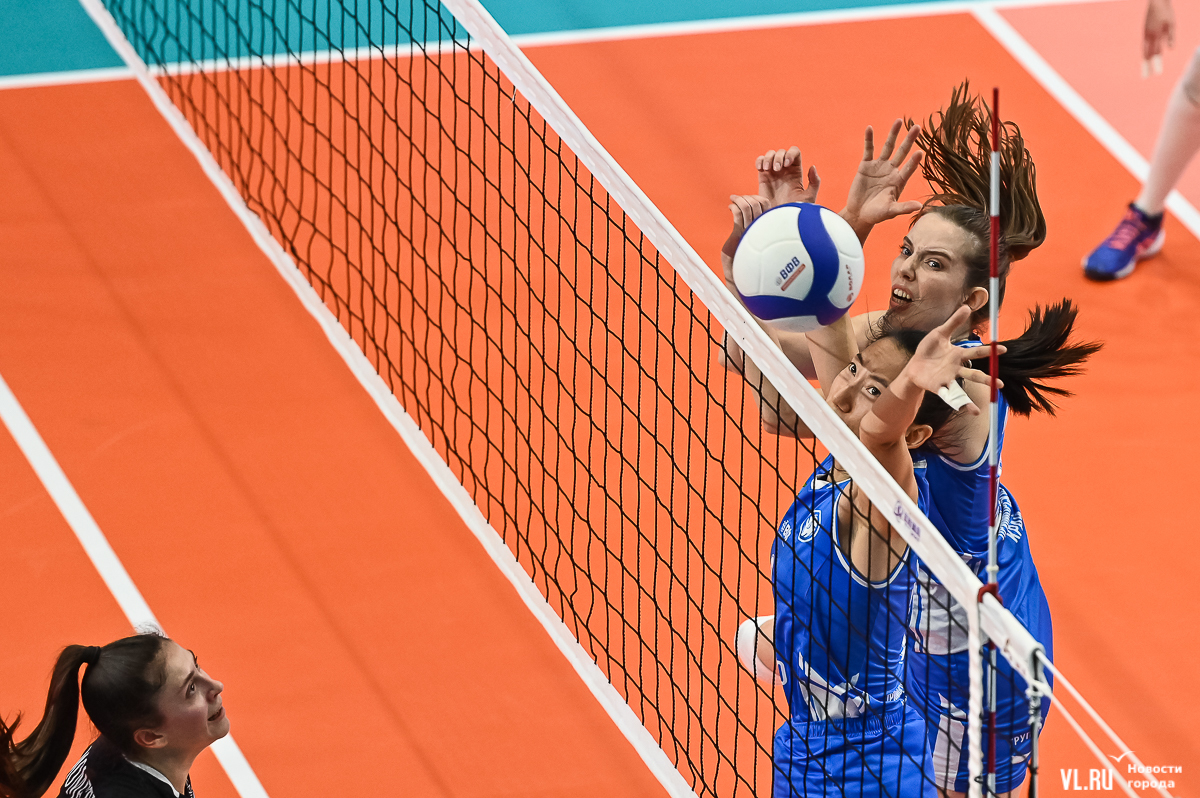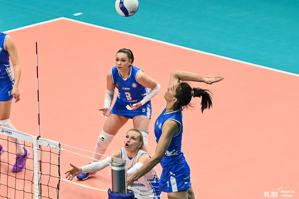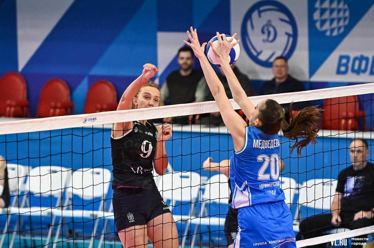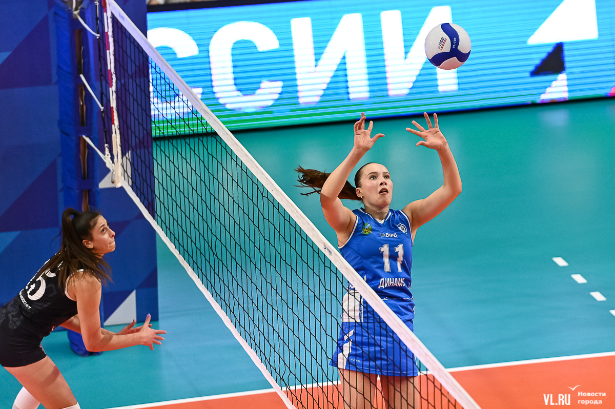 Зал «Олимпийца» в дни игр женской команды «Динамо» превратился в яркую волейбольную площадку. Стартовый состав «Динамо» на первый матч третьего тура во Владивостоке выглядел следующим образом: в диагонали – Чикириз, связующая – Погорельченко, блокирующие – Откидычева и Медведева, в доигровке – Велисевич и Жэнь, либеро – Февралёва и Сулимова.