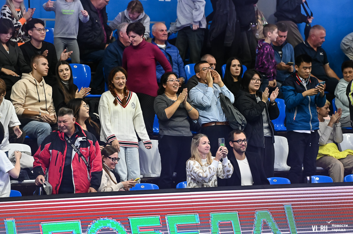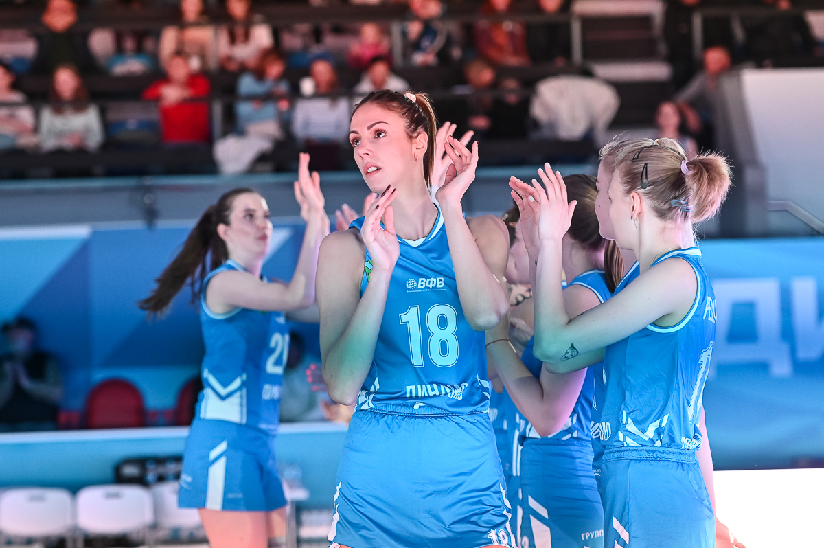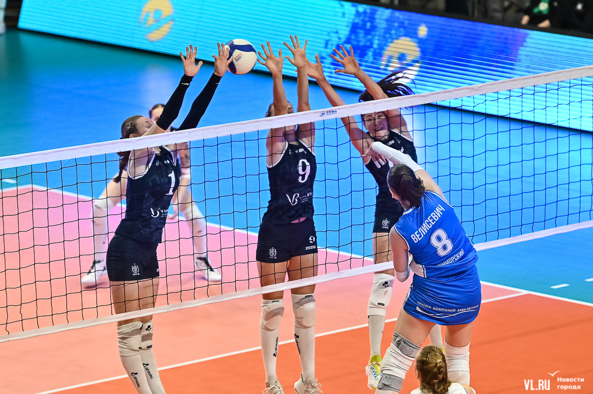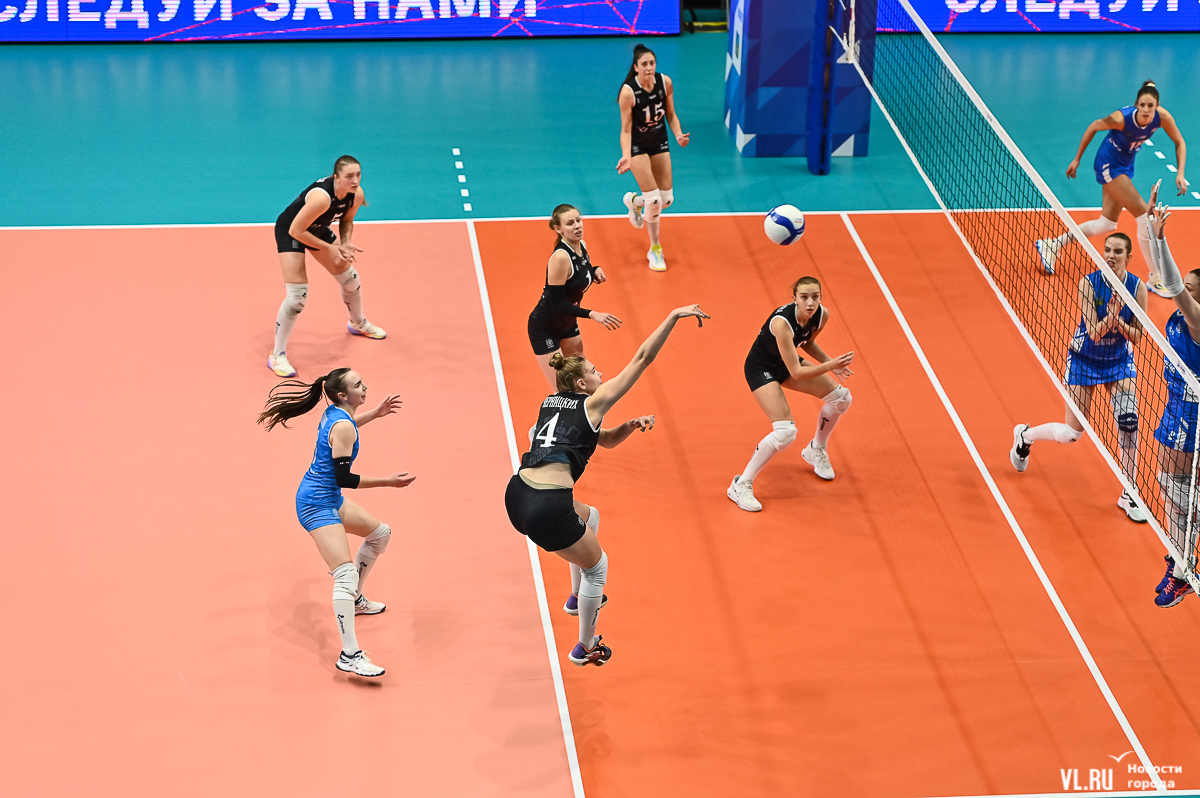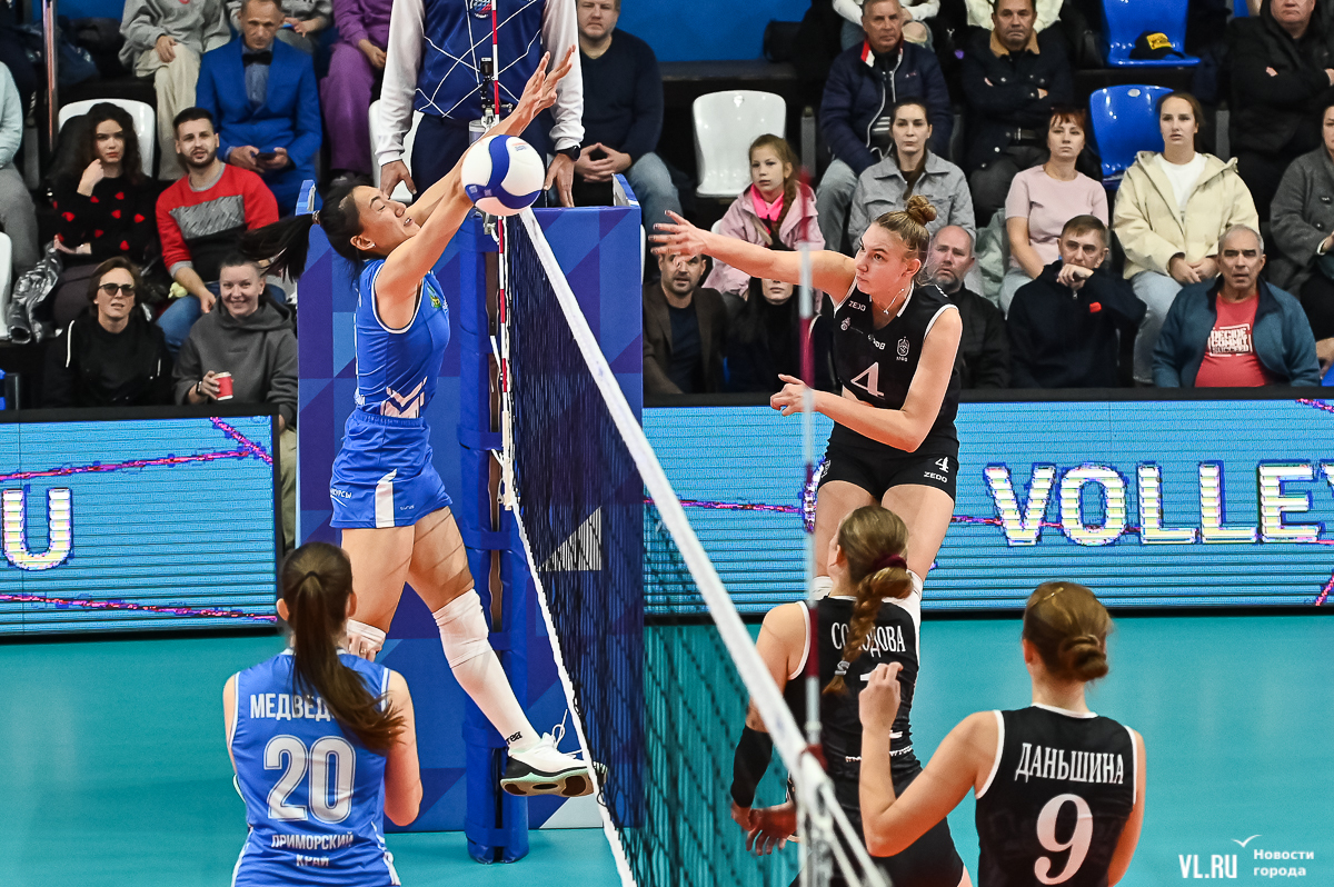 Зал «Олимпийца» в дни игр женской команды «Динамо» превратился в яркую волейбольную площадку. Стартовый состав «Динамо» на первый матч третьего тура во Владивостоке выглядел следующим образом: в диагонали – Чикириз, связующая – Погорельченко, блокирующие – Откидычева и Медведева, в доигровке – Велисевич и Жэнь, либеро – Февралёва и Сулимова.