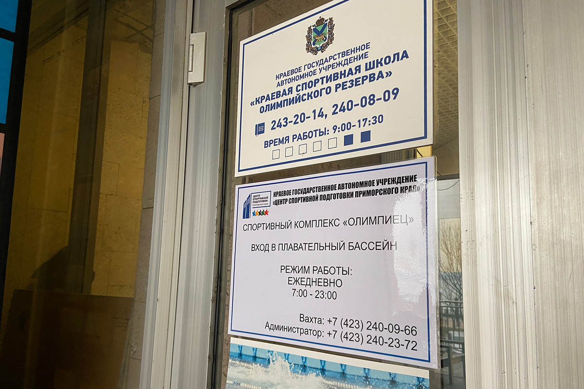 Из-за ремонта холла вход в плавательный бассейн пока осуществляется через правое крыльцо со стороны моря, через кафе. Это первое крыльцо по ходу движения от Океанариума. Там же работает абонементный отдел. Все желающие могут приобрести абонементы на разовое или многоразовое посещение в учебно-спортивном центре «Олимпиец». Подробную информацию можно получить у администратора по телефону: 8 (423) 240-09-66.