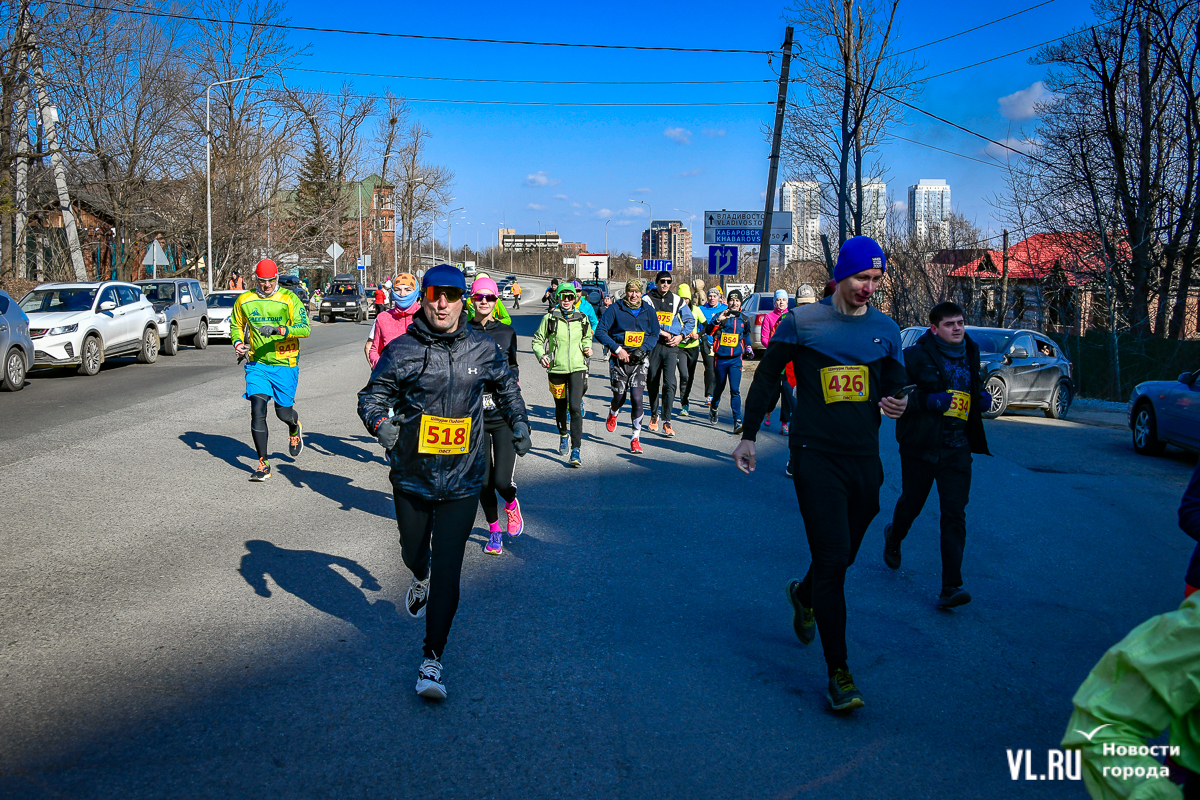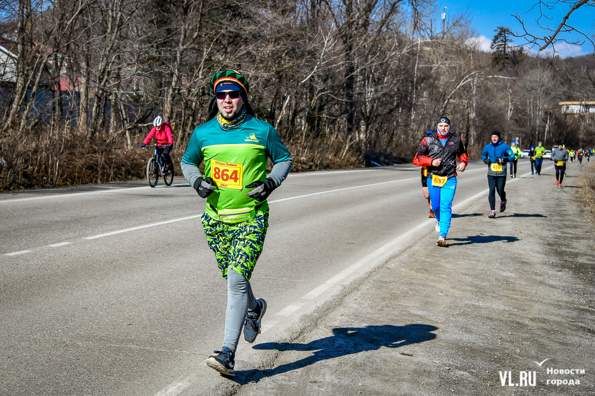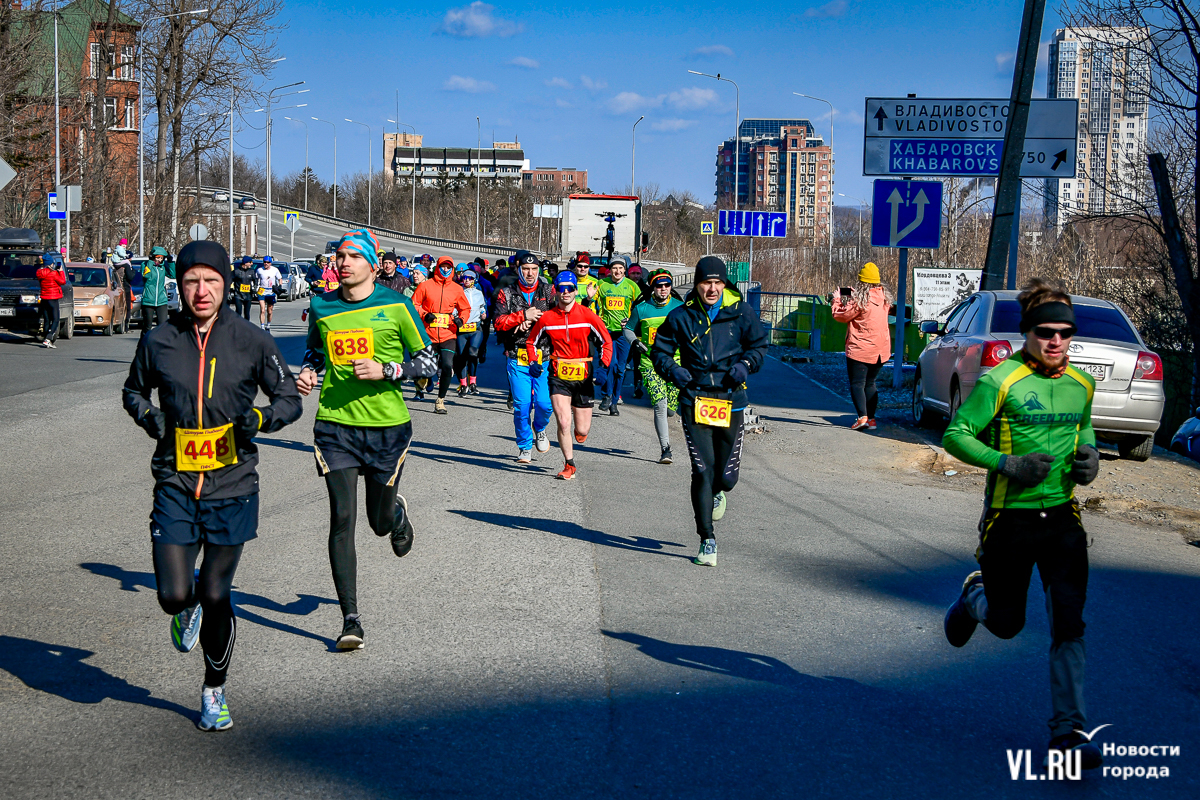 В воскресенье, 30 марта, ежегодный «Контрольный бег» собрал порядка 100 спортсменов всех возрастов в ярком обмундировании на Океанской. Дистанций в этот раз было три – 3 км для юных бегунов, традиционные 10 км – для завсегдатаев и новичков и праздничные 30 км в честь тридцатилетия турклуба Green Tour. Проезд по улице Шевченко для автомобилей при этом не перекрывали – разноцветный отряд бегунов аккуратно растянулся по обочине. Кто-то бежал ради награды в виде мандарина на финише, кто-то решил впервые покорить 10 км, а спортсмены, которые финишировали аж на Фадеева, говорили, что просто проверяют свои силы.