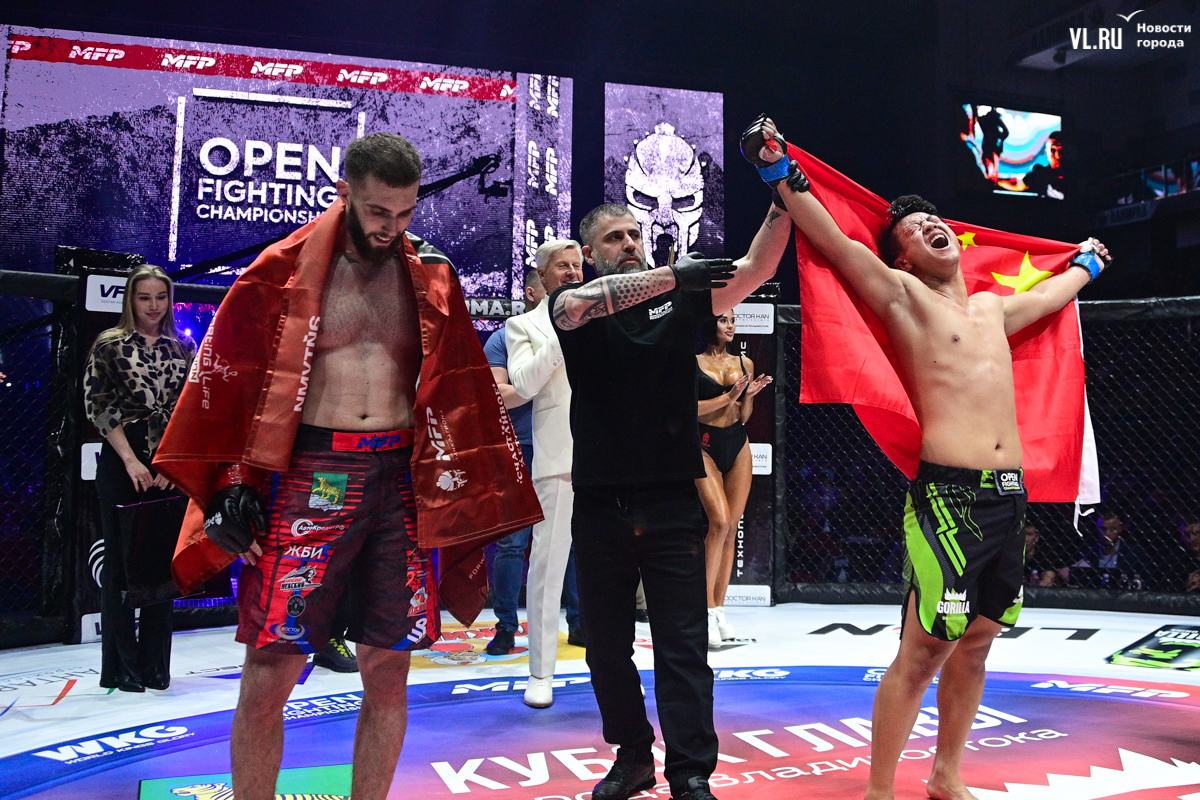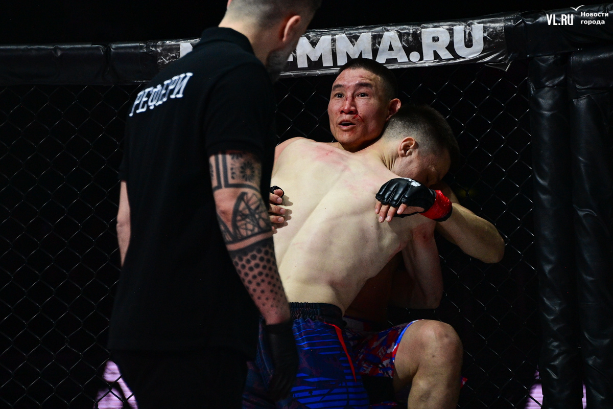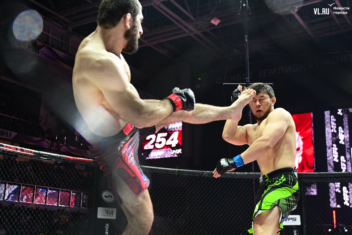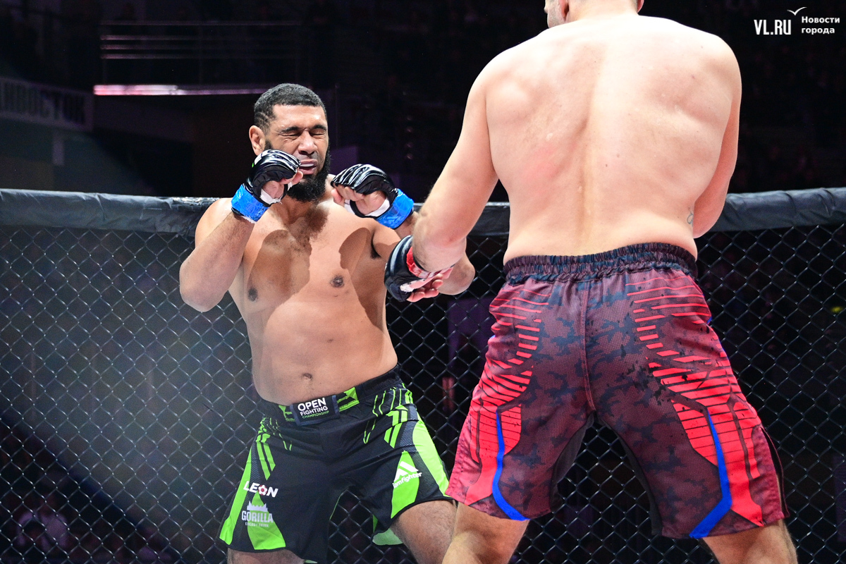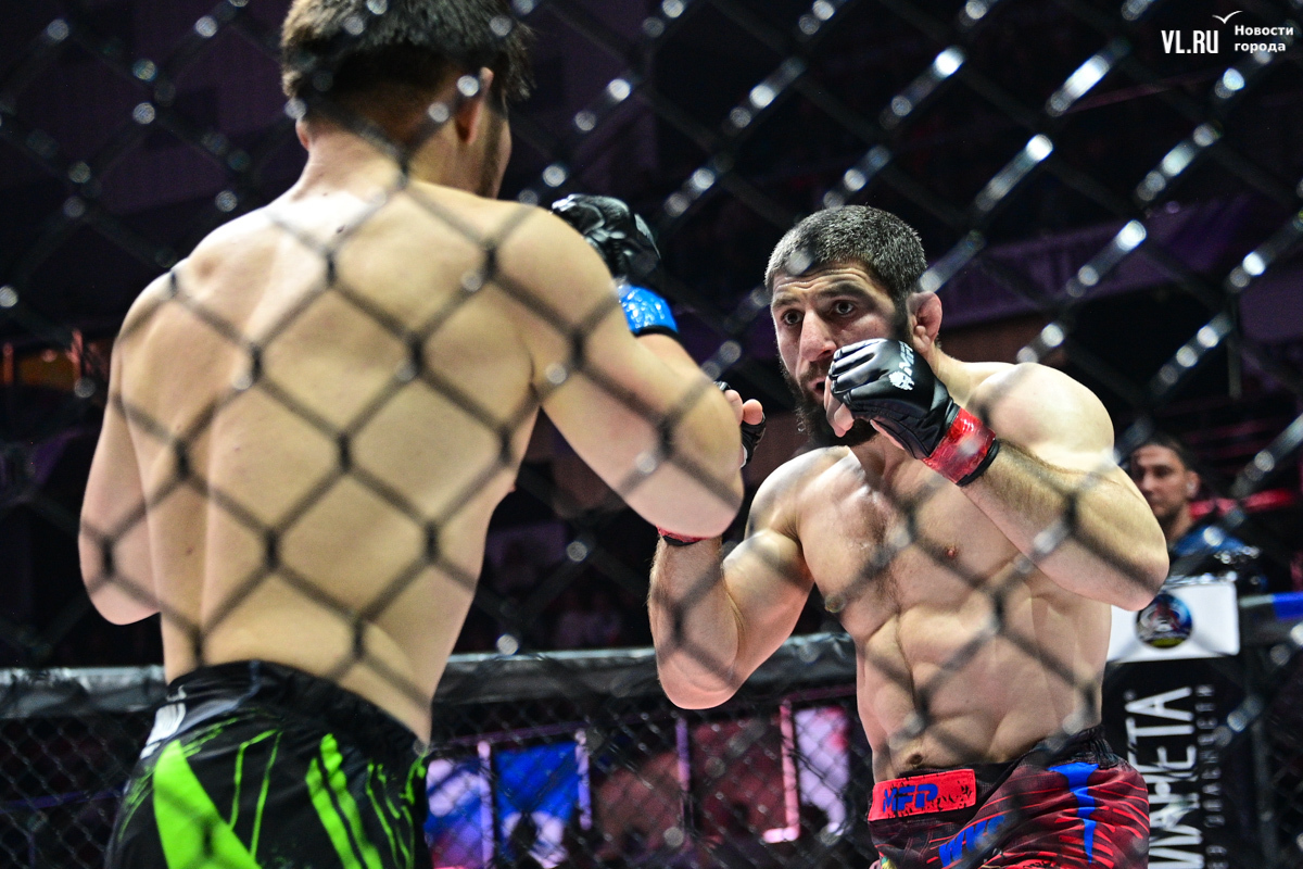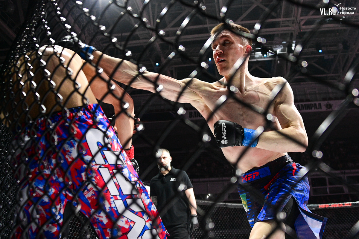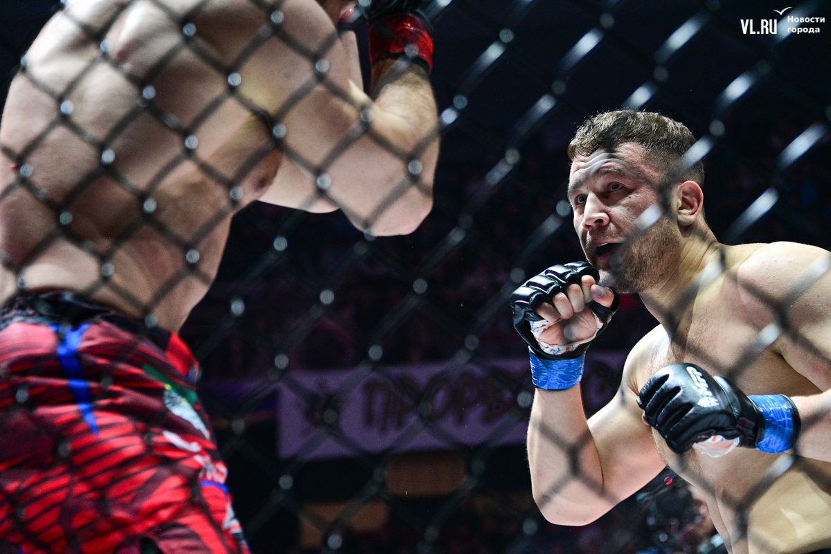 Первыми на ринг вышли спортсмены Сергей Проскуряков из Благовещенска и Андрей Амельченко из Спасска-Дальнего. Их бой был недолгим. После нескольких попыток атаковать друг друга спортсмен из Приамурья взял своего оппонента на удушающий и выиграл бой. Остановили таймер на 45-й секунде поединка.