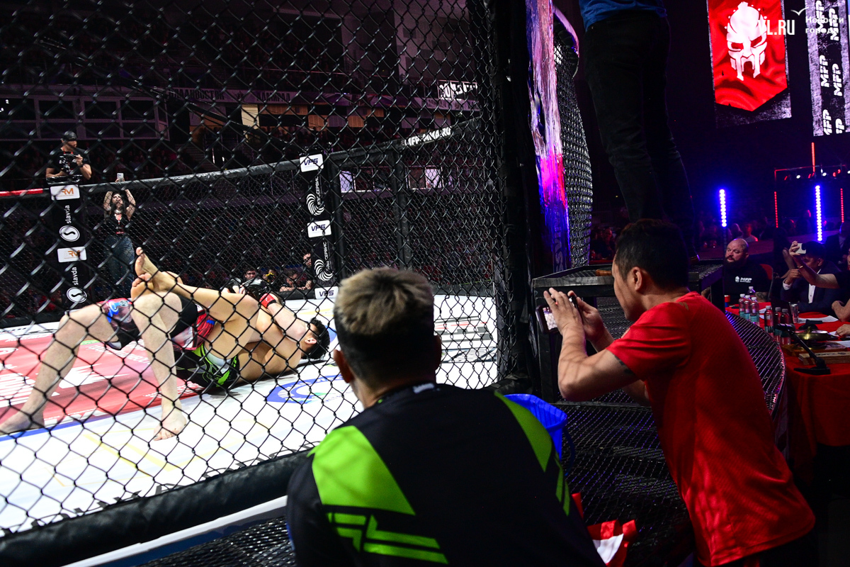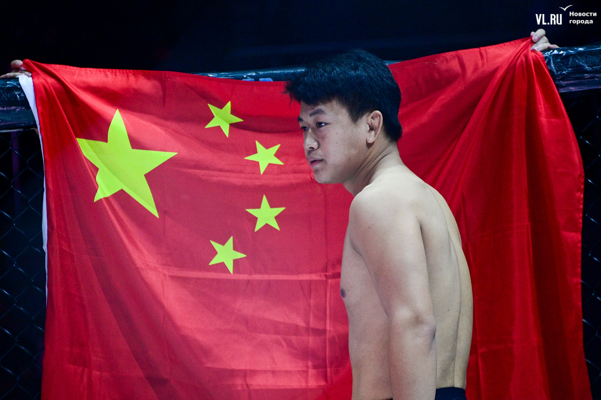 — Надо рисковать и вставать, — прокричал тренер бойцу, после чего Абакаров вырвался из рук китайца и начал брать на удушающий.